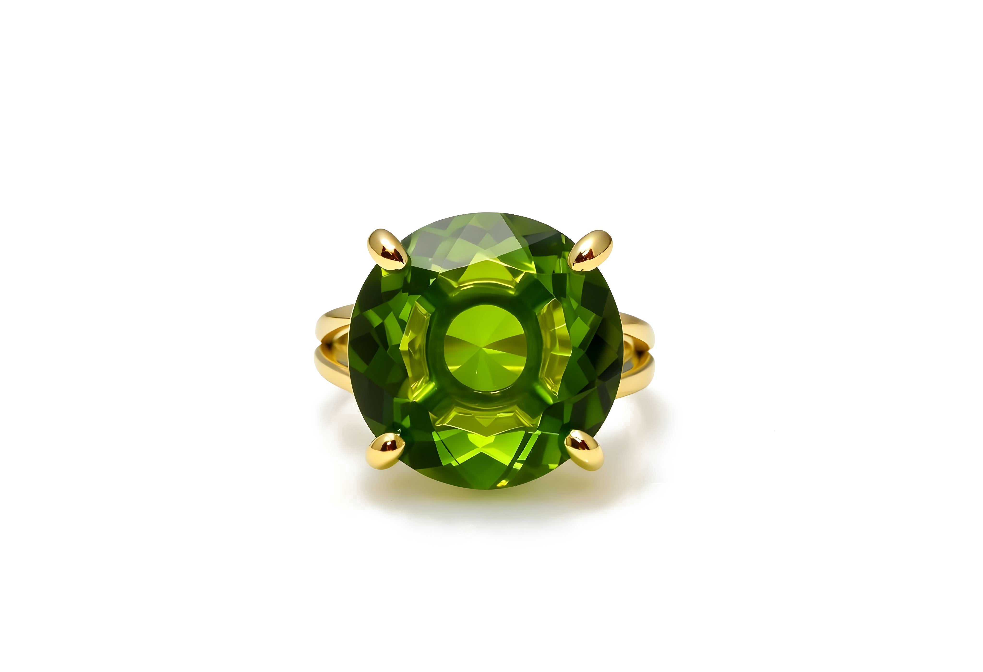 This radiant gold peridot ring features a brilliant green gemstone that symbolizes harmony and renewal. Handcrafted in 14k gold filled metal, the ring captures August’s birthstone in a vibrant, modern setting. Its lustrous polish and timeless color make it an ideal choice for meaningful gifts, from birthdays to everyday elegance.