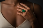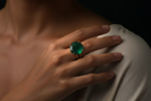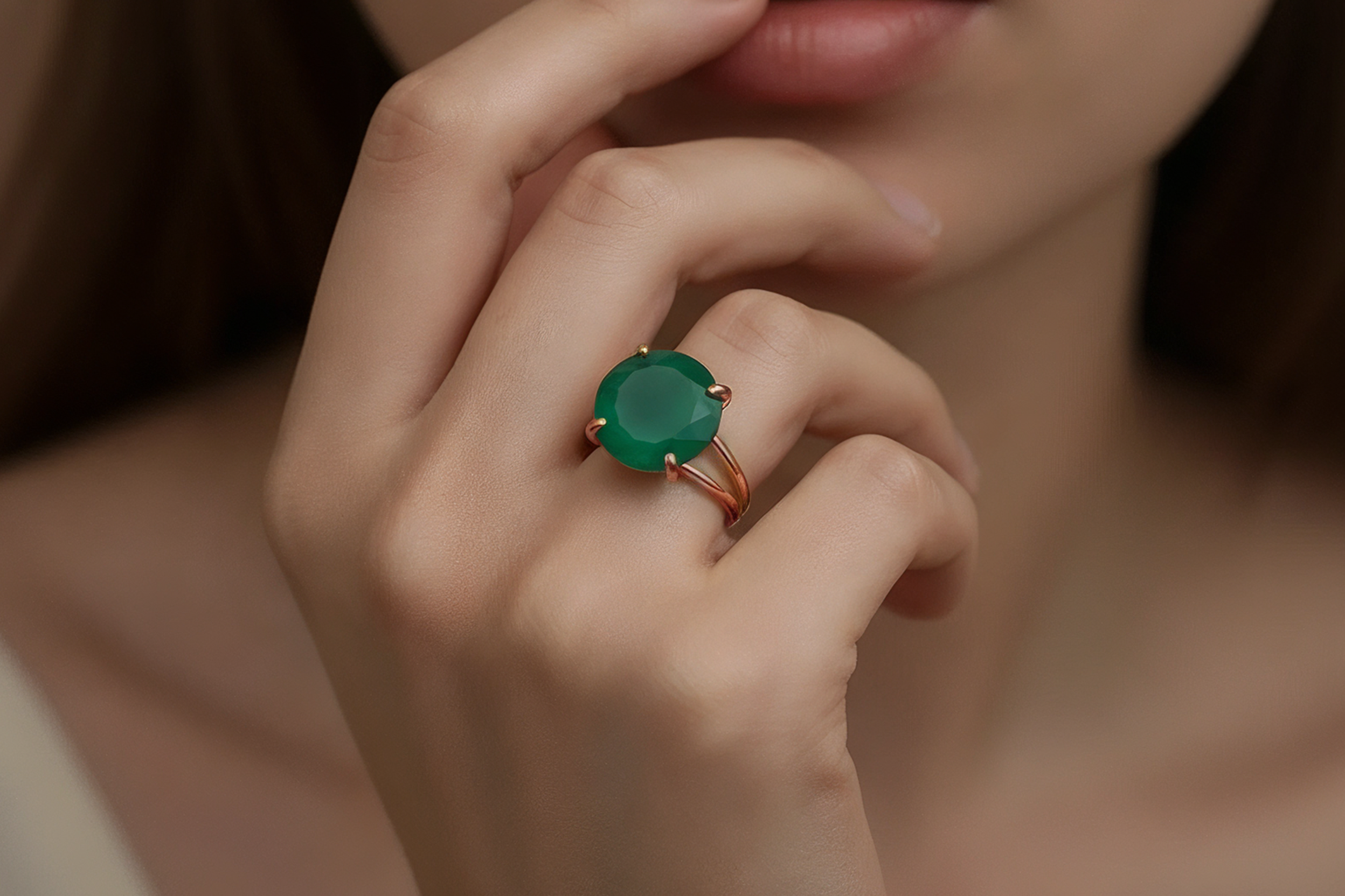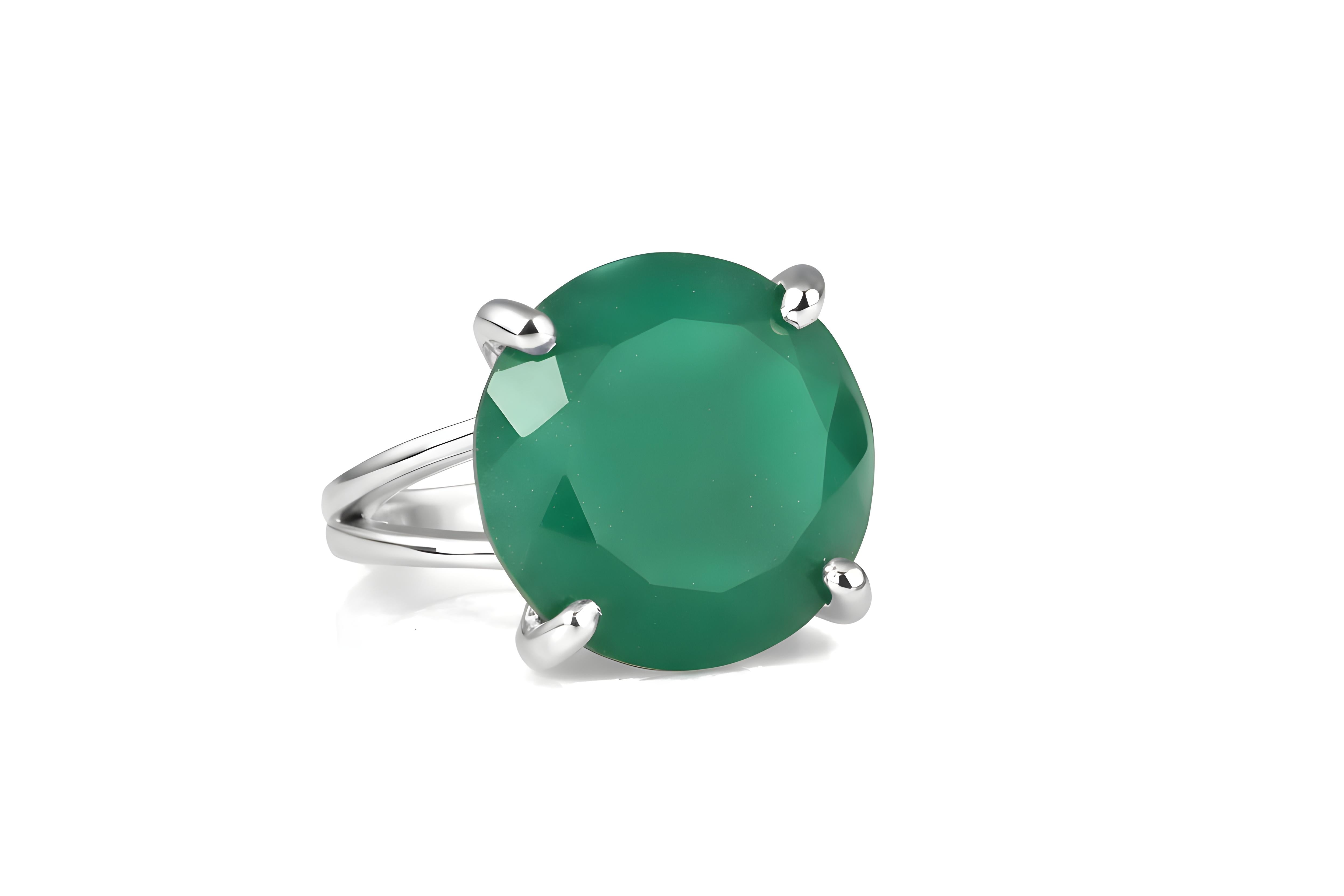 Handcrafted in 925 sterling silver, this statement ring features a rich green onyx gemstone cut in a 16 mm round shape. The polished silver enhances the gemstone’s deep glow, creating a striking yet refined look perfect for both daily wear and evening style. Each piece is made to order with options to customize metal and size, ensuring a perfect fit and personal touch.