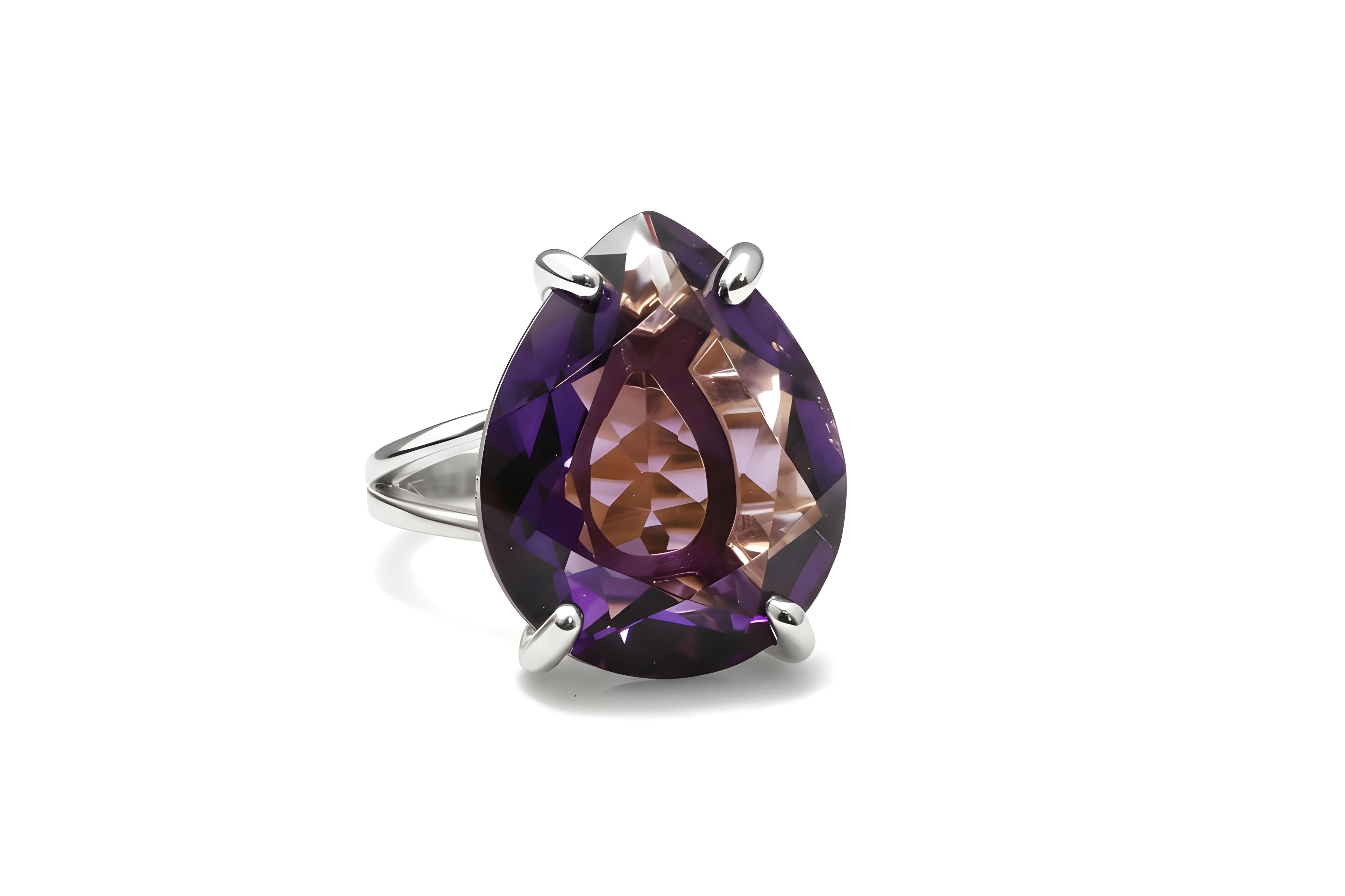 This handmade sterling silver ring showcases a radiant pear-cut amethyst gemstone, capturing the stone’s deep violet hue with stunning brilliance. Perfect as a February birthstone or cocktail ring, it’s a versatile piece for both casual and formal wear. Each ring is crafted with precision and can be engraved for a personal touch — a thoughtful gift for anniversaries, weddings, or birthdays.