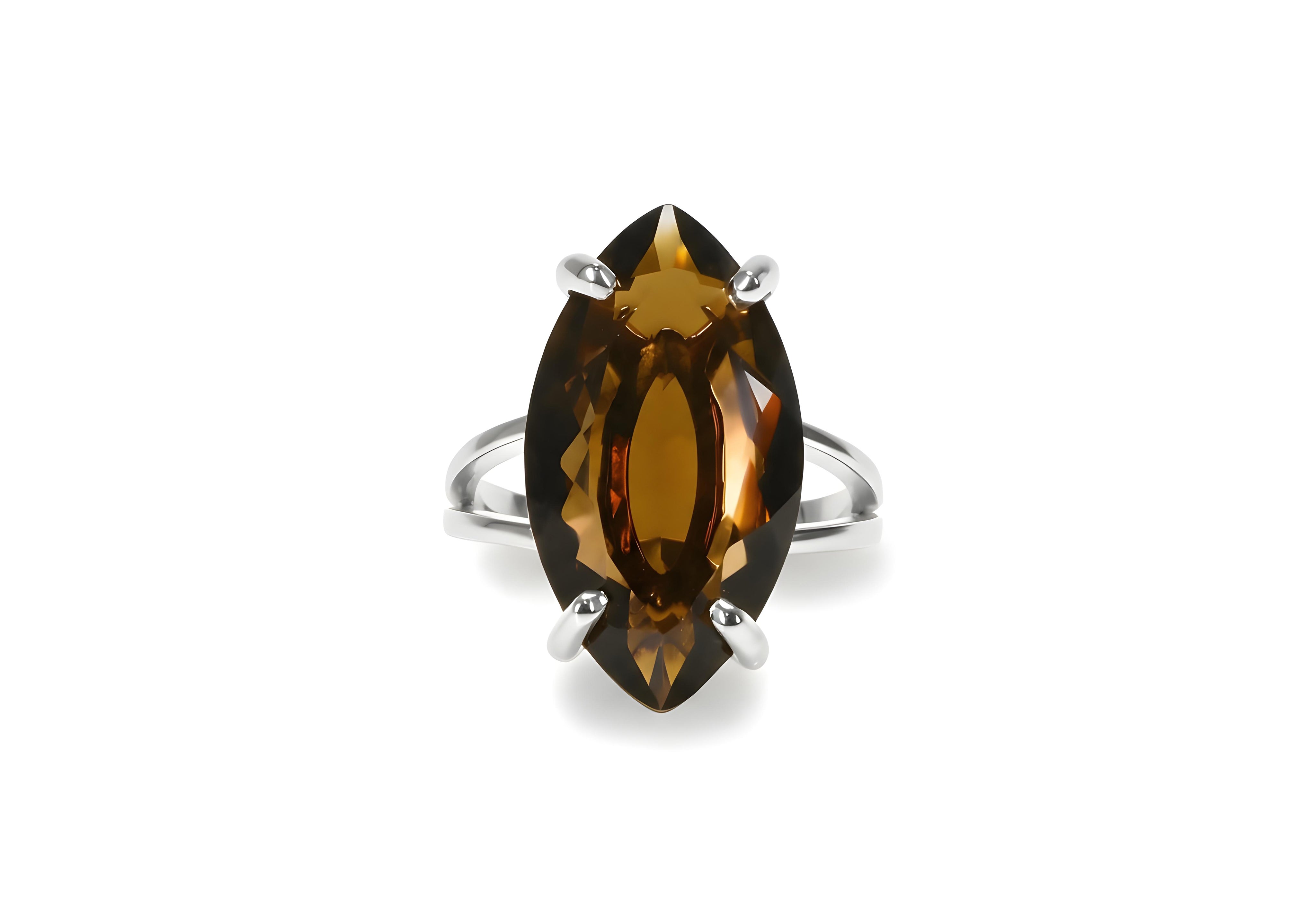 This sterling silver smoky quartz ring features a faceted long-cut gemstone secured with prongs for durability and shine. The warm brown tones of smoky quartz add sophistication and elegance, making it both meaningful and stylish. Crafted as a statement cocktail ring, it blends bold design with timeless appeal. Handcrafted with care, this gemstone ring is perfect for women who love standout silver jewelry or want a unique gift option.