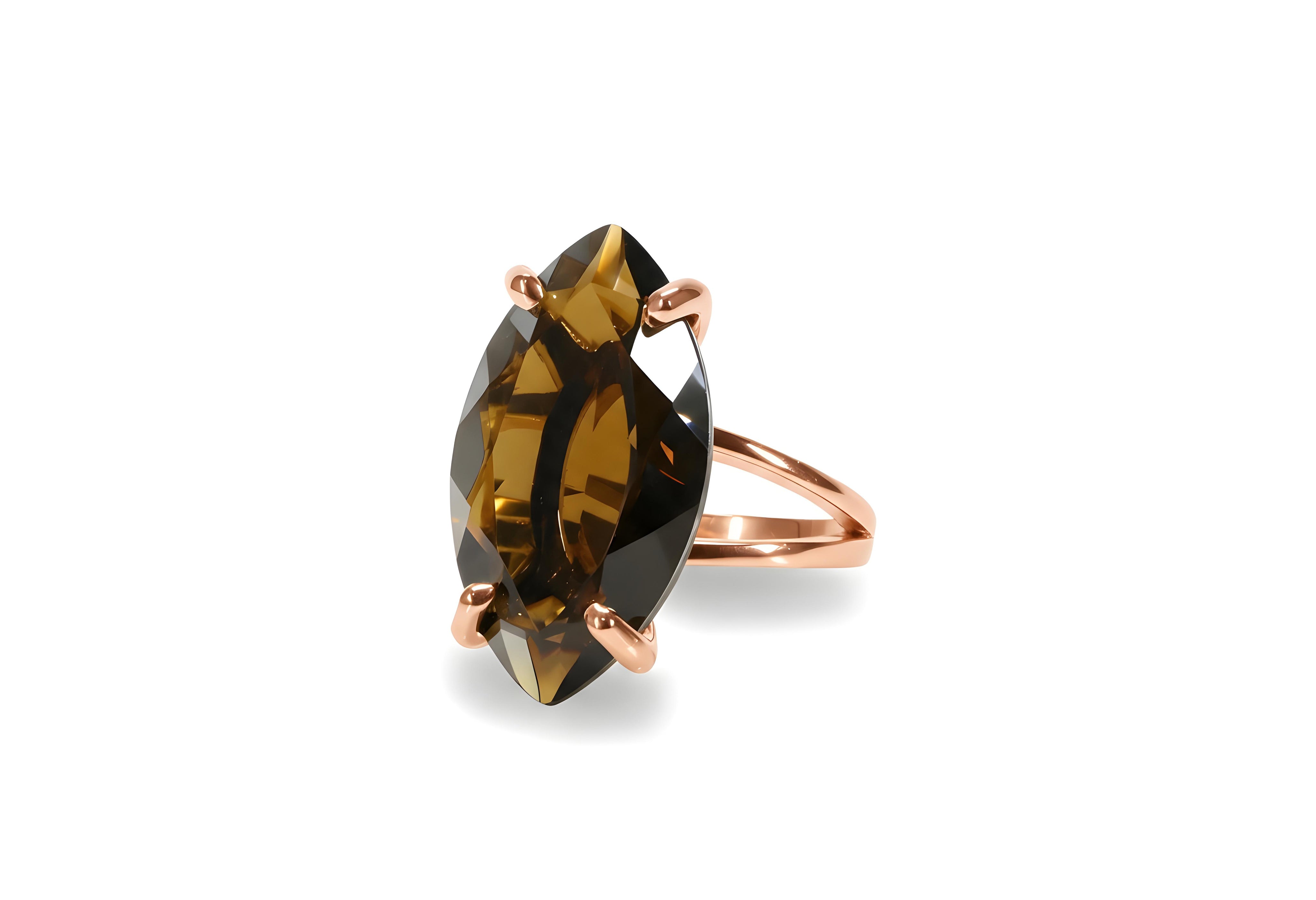 Marquise Smoky Quartz in 925 Sterling Silver Double Band Ring