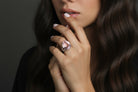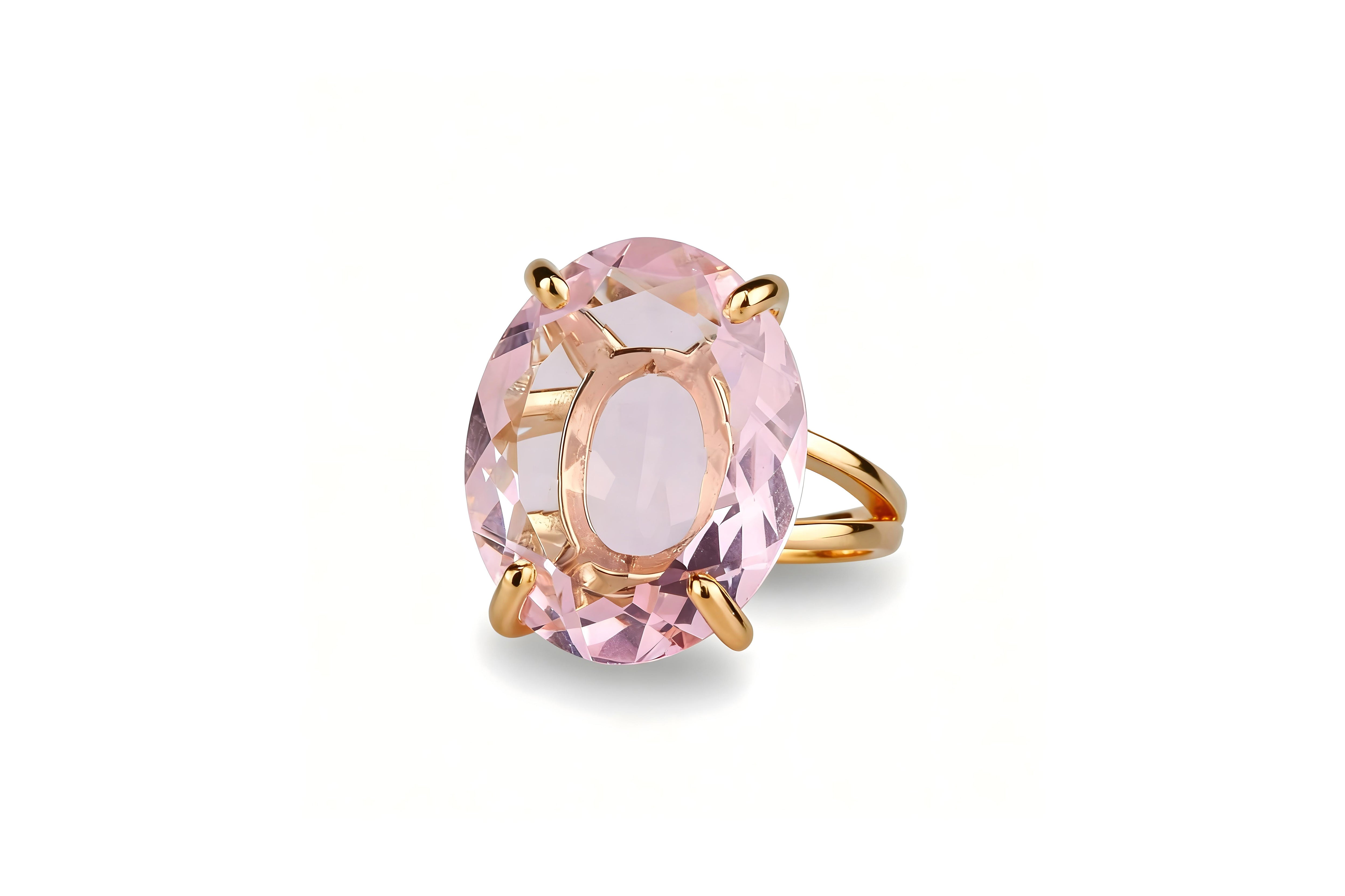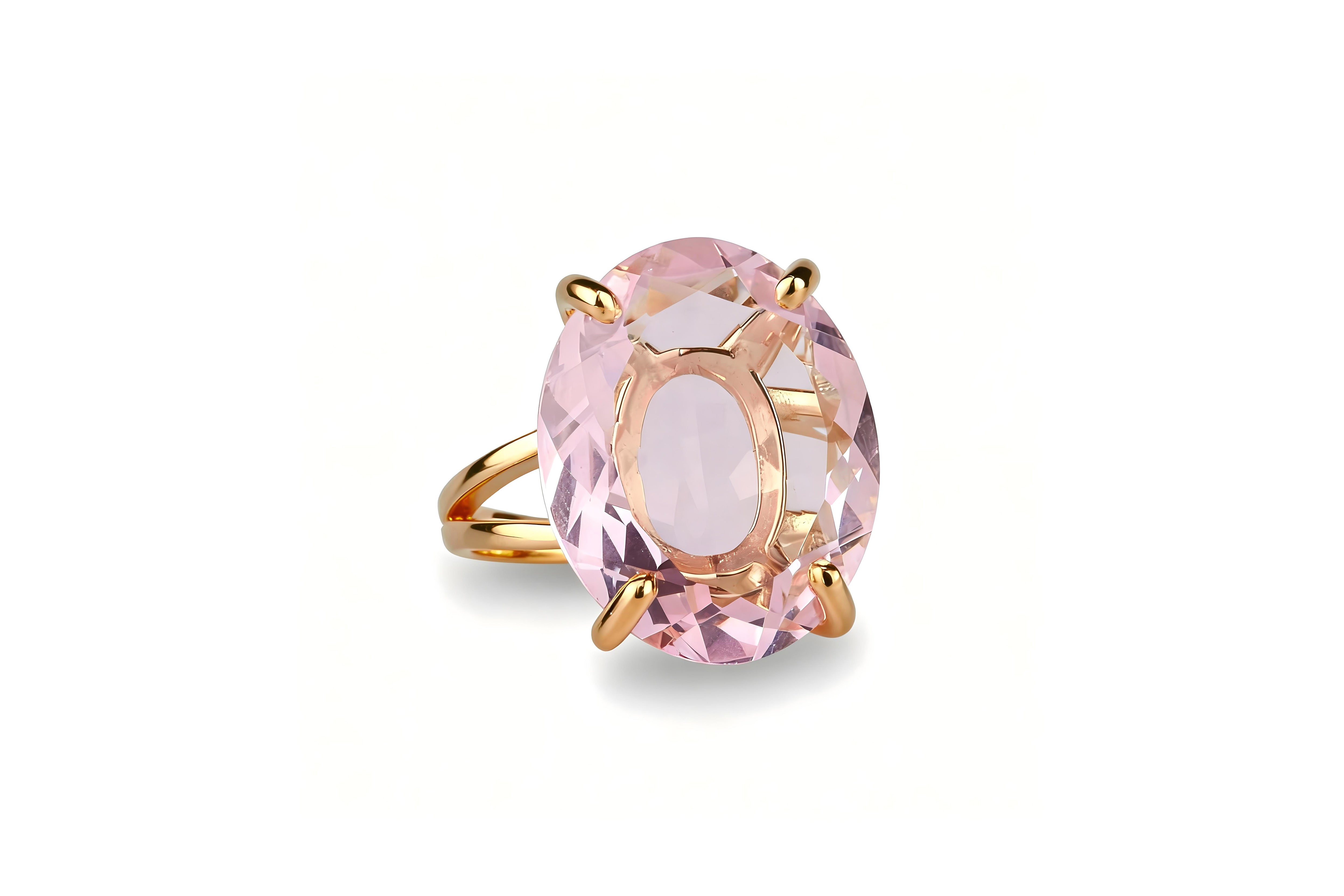 This oval rose quartz ring is set in a polished rose gold double band design. The soft pink tones of quartz, known as the stone of love, bring both beauty and meaning to this timeless gemstone ring. The bold oval cut makes it a true statement cocktail piece while still versatile for daily wear. Handcrafted with care, it’s perfect as a self-love symbol, a thoughtful gift, or a stylish addition to any jewelry collection.