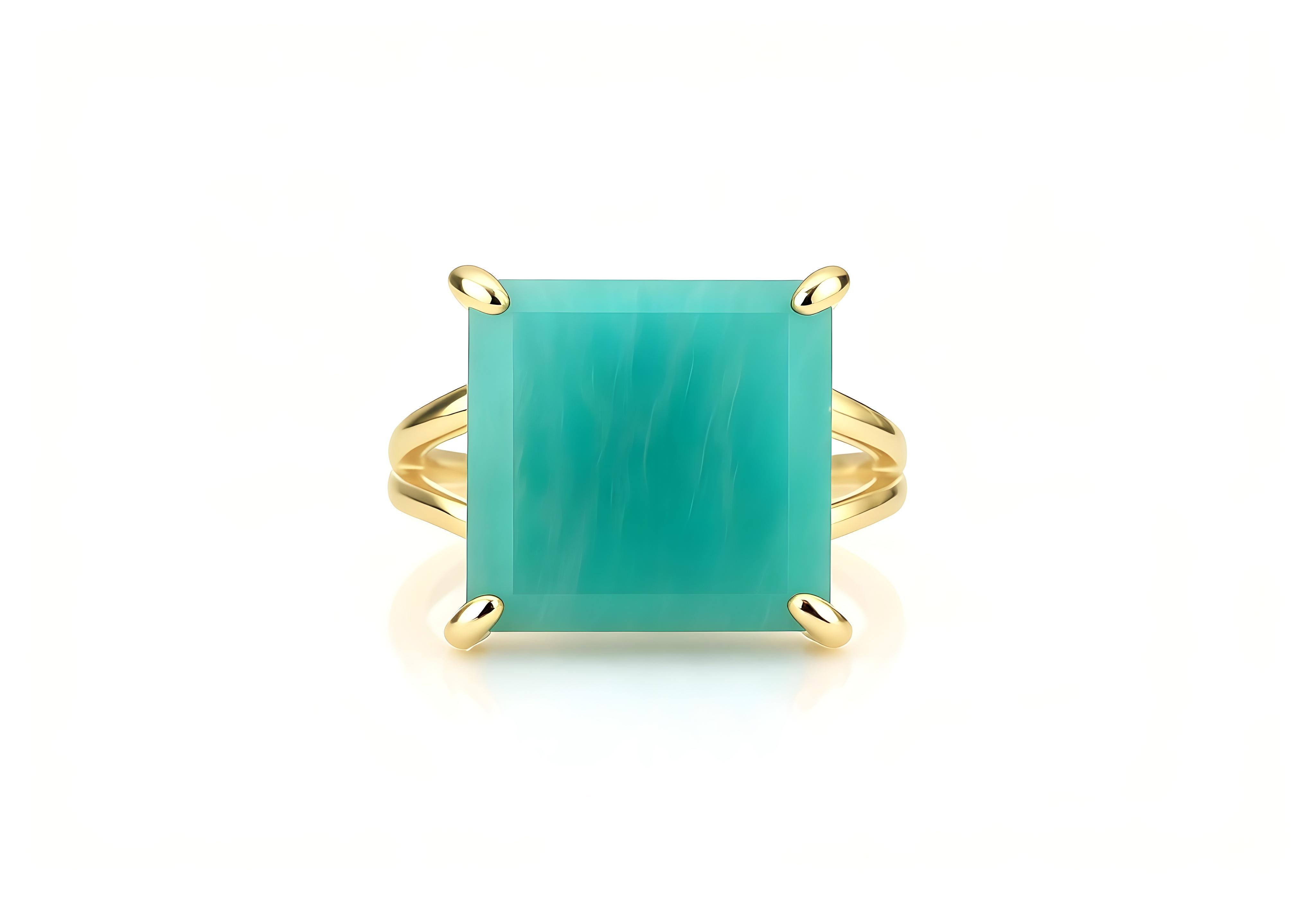 This handcrafted 14k gold amazonite ring features a striking square-cut stone in soft turquoise hues that radiate natural beauty. Its bold yet elegant setting makes it a perfect statement cocktail ring or a meaningful handmade gift. Custom sizing is available to ensure the perfect fit for your unique style.