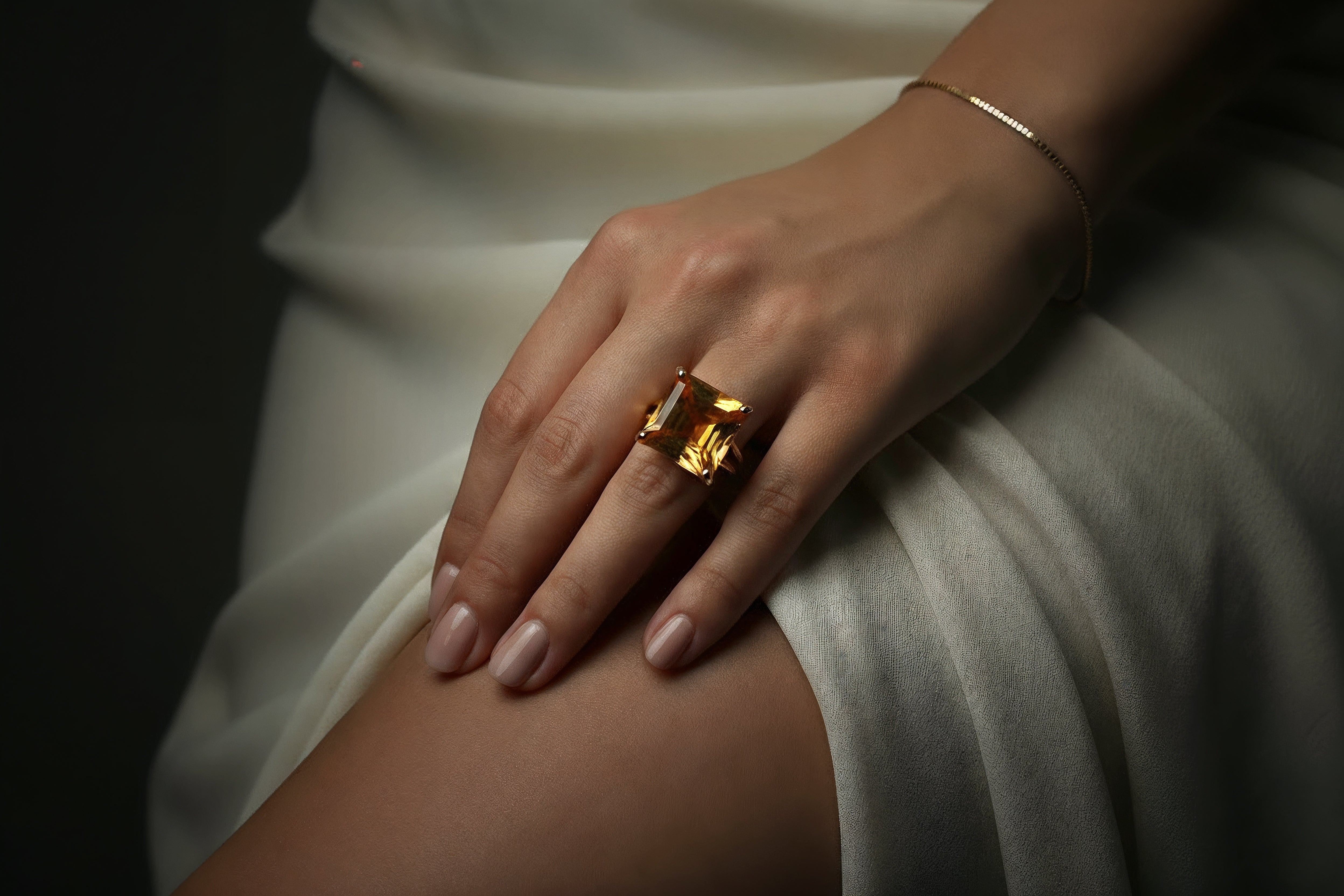 This 14k gold filled citrine ring features a faceted square-cut gemstone that captures the golden warmth of November’s birthstone. Citrine symbolizes joy, abundance, and optimism, making it a meaningful choice for bridal jewelry or daily wear. The polished gold band and radiant gemstone create an elegant yet modern look. Handcrafted with care, this gemstone ring is perfect as a wedding accessory, an engagement gift, or a stylish statement piece.