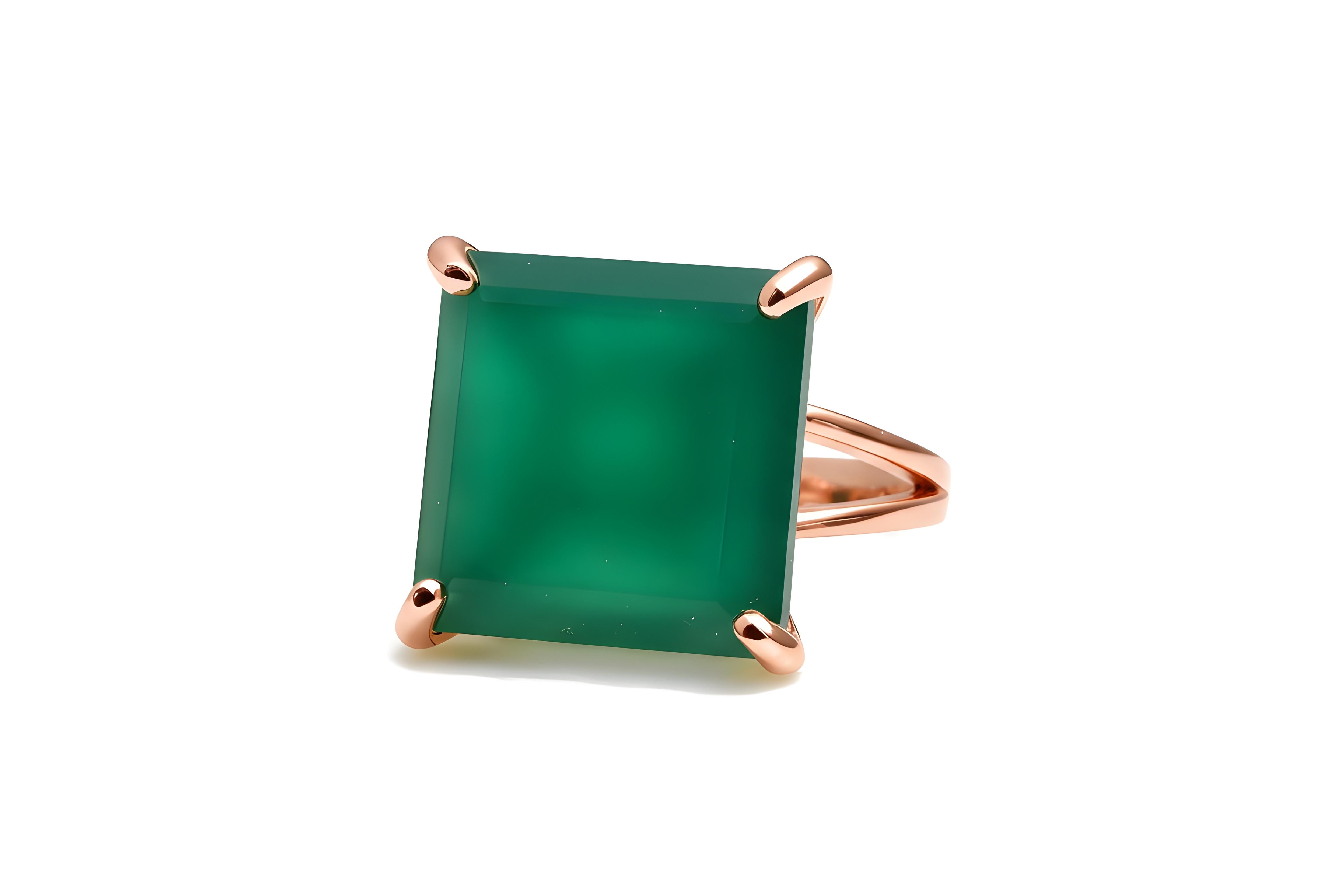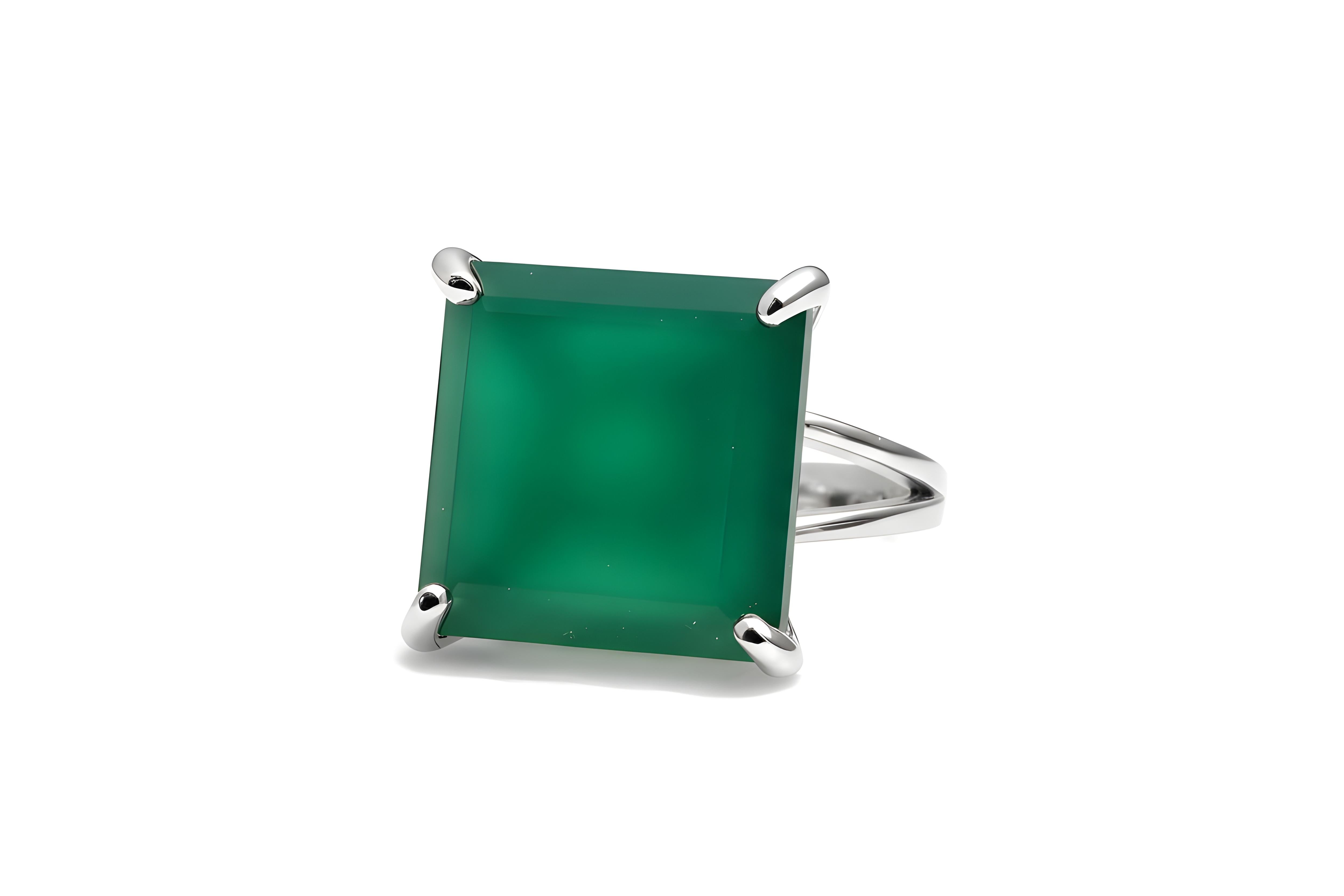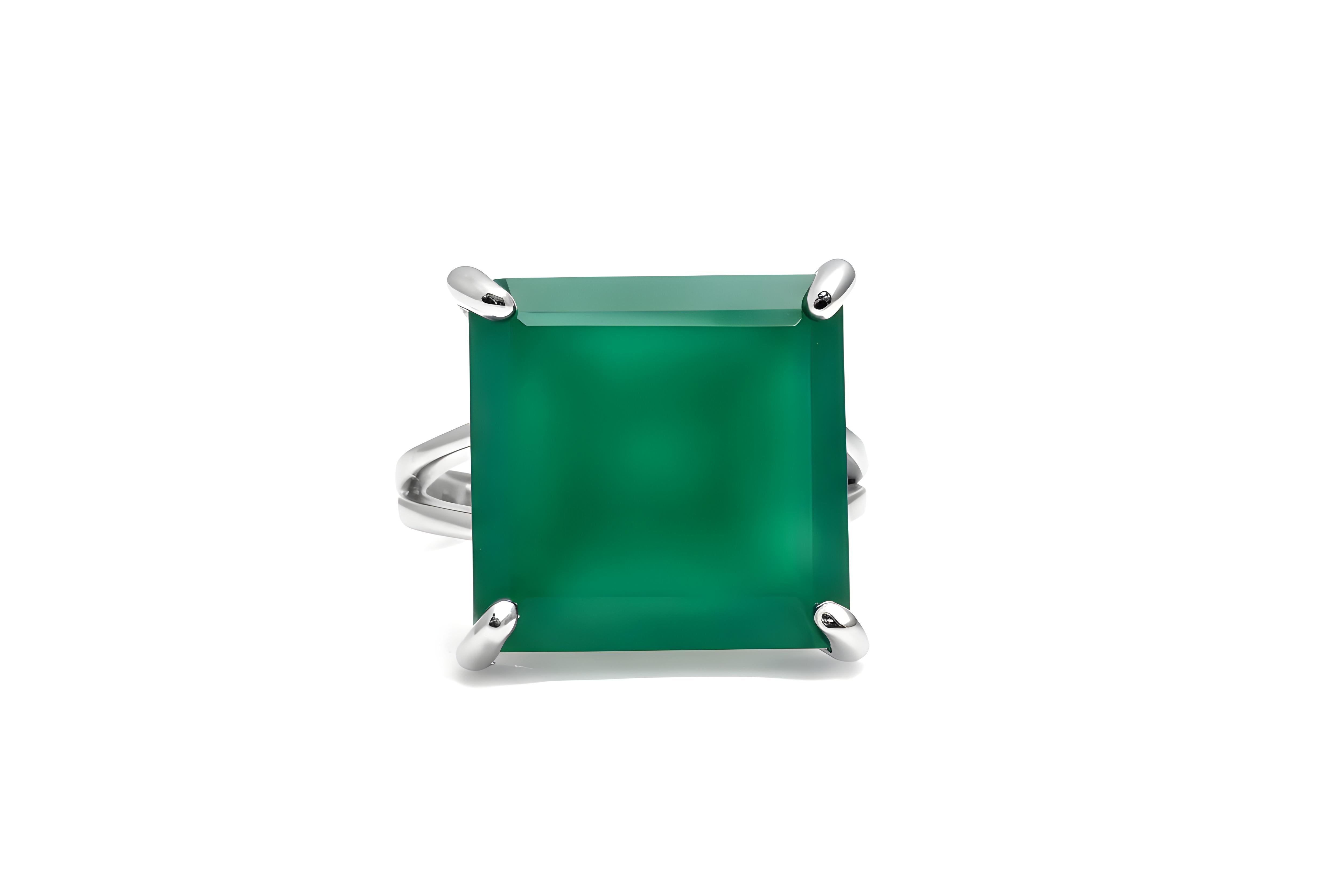 This striking ring features a vivid green onyx gemstone cut in a bold square shape and set in polished sterling silver. The prong setting enhances the stone’s deep hue and modern geometric style, creating a look that’s both refined and eye-catching. Handcrafted with care, this silver gemstone ring is perfect as a cocktail or statement piece, offering timeless beauty and versatility for any occasion.