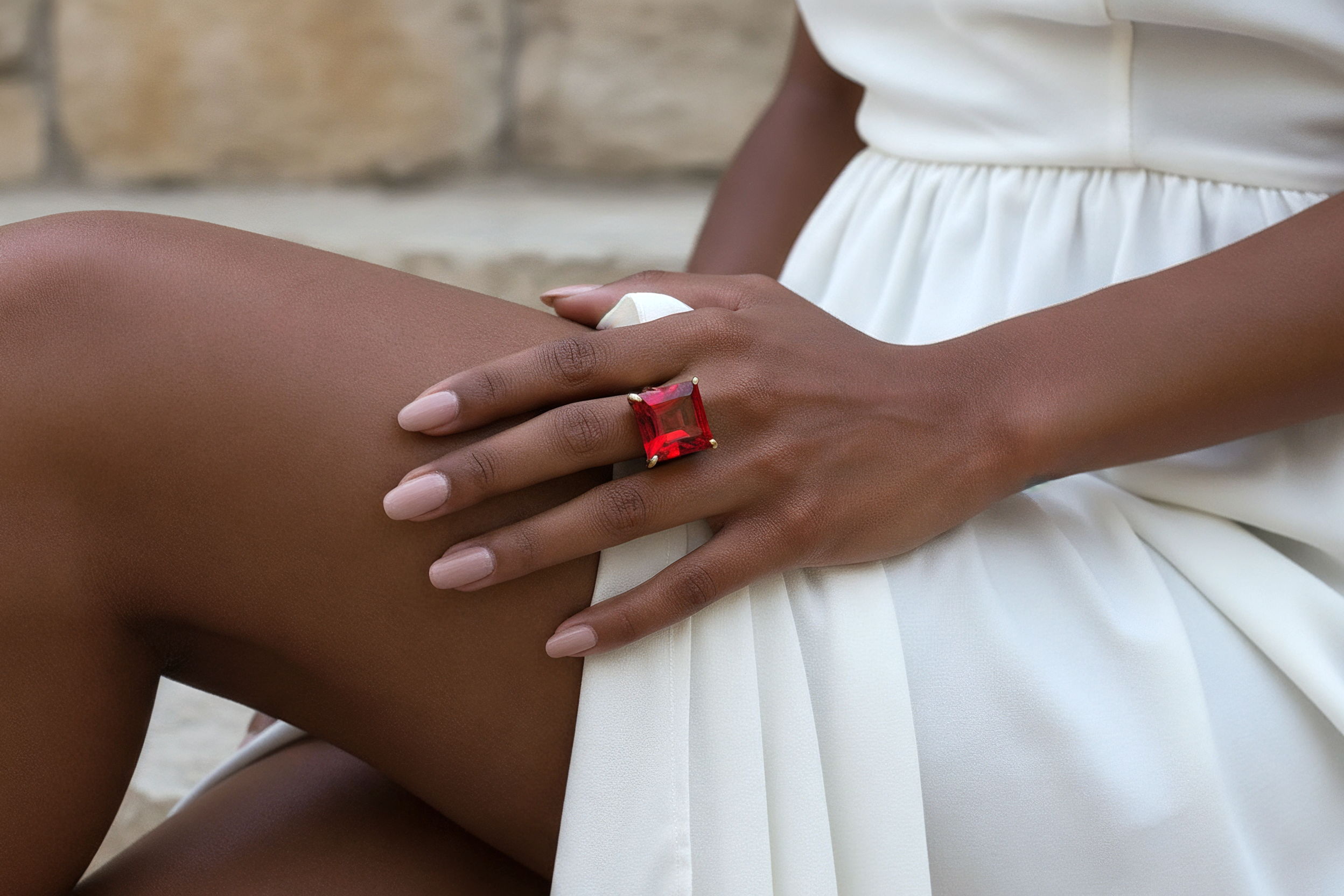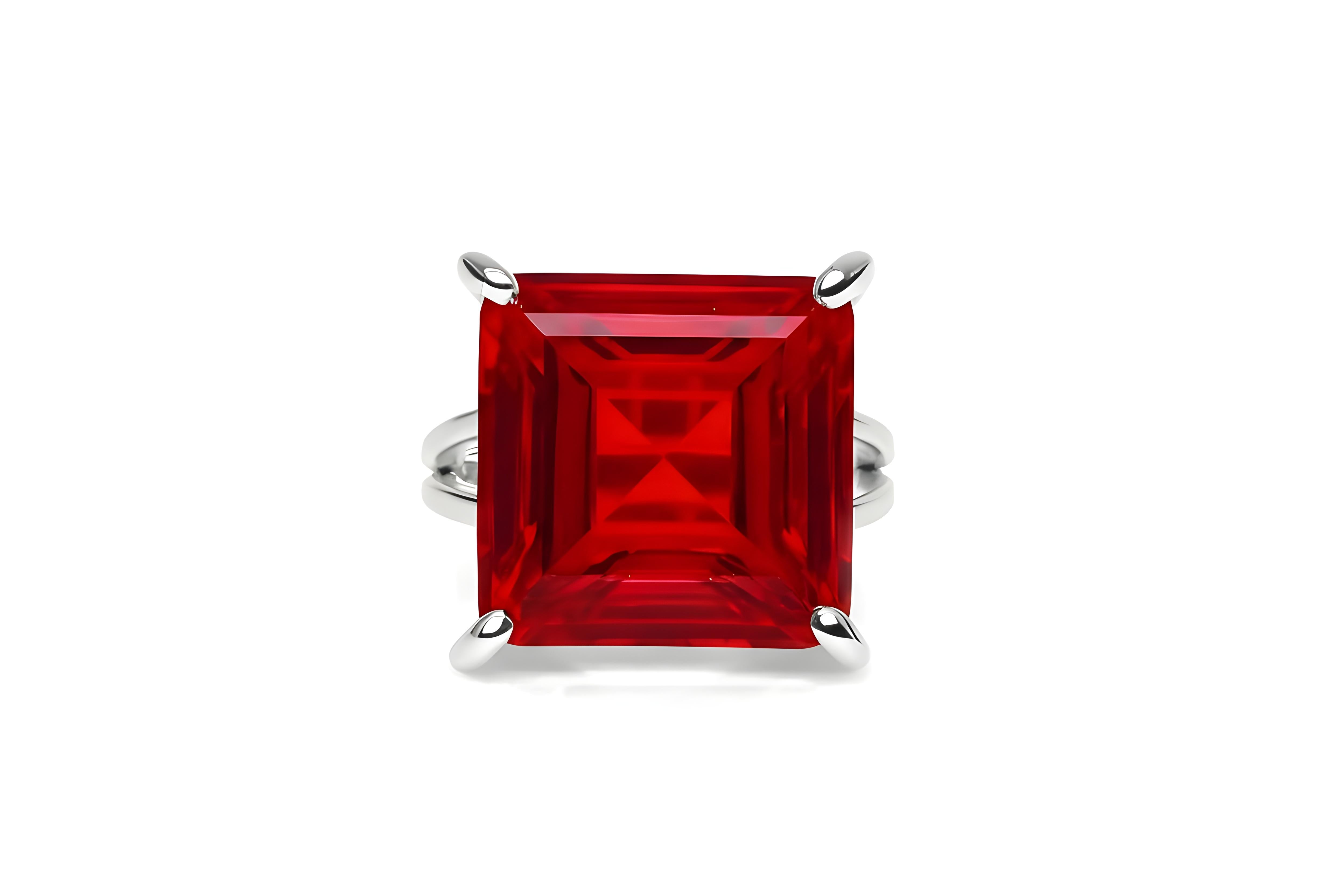 This sterling silver ruby ring showcases a radiant square-cut gemstone that captures the vibrant red glow of July’s birthstone. Crafted from 925 sterling silver, it combines timeless elegance with a modern design. Perfect as a personalized gift or statement piece, this handmade ring symbolizes passion and strength.