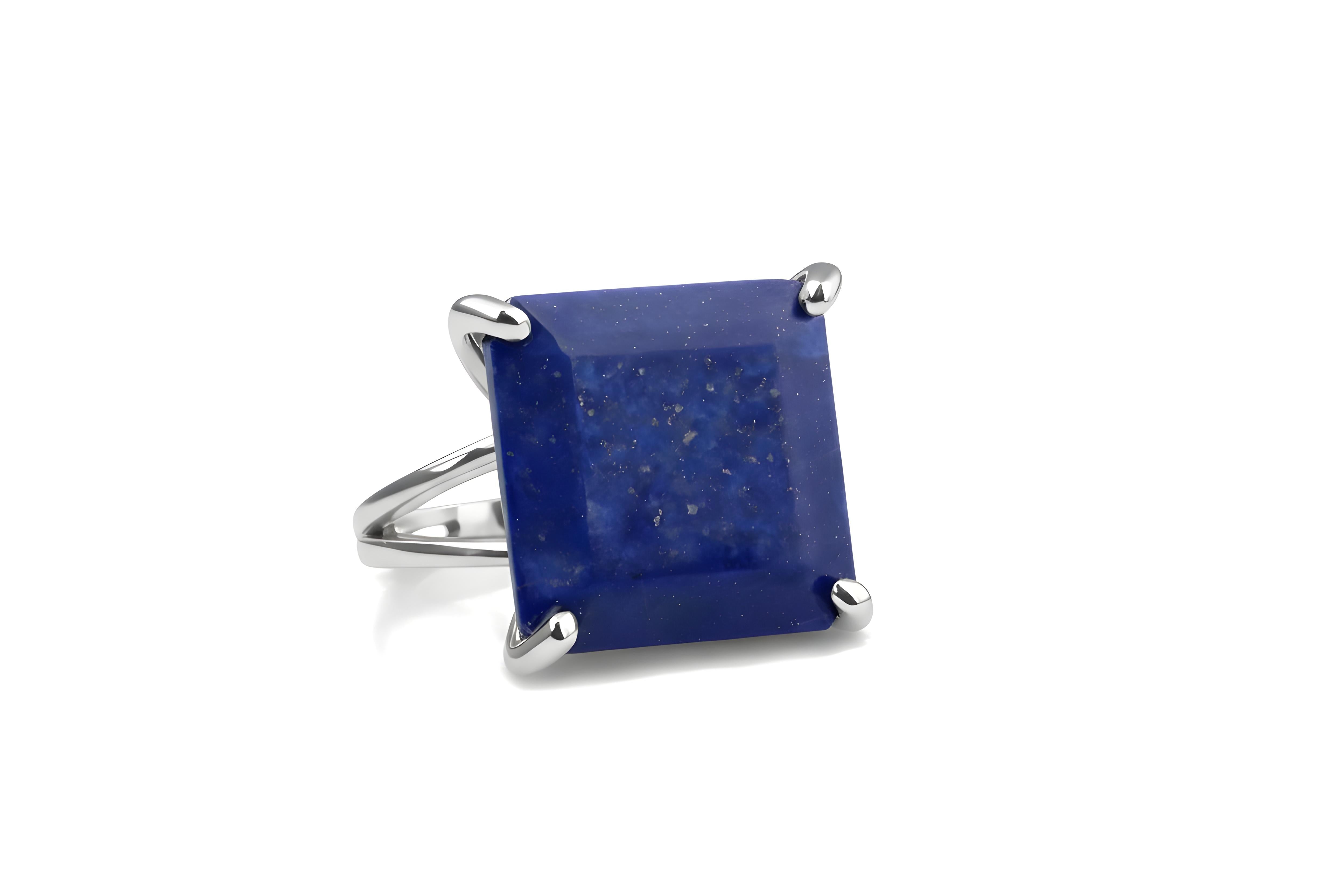 This sterling silver lapis lazuli ring features a bold square-cut gemstone that radiates deep blue hues with golden flecks. The polished silver double band adds a modern touch, while the prong setting highlights the stone’s natural beauty. A perfect choice for September birthdays or anyone drawn to striking, elegant statement rings.