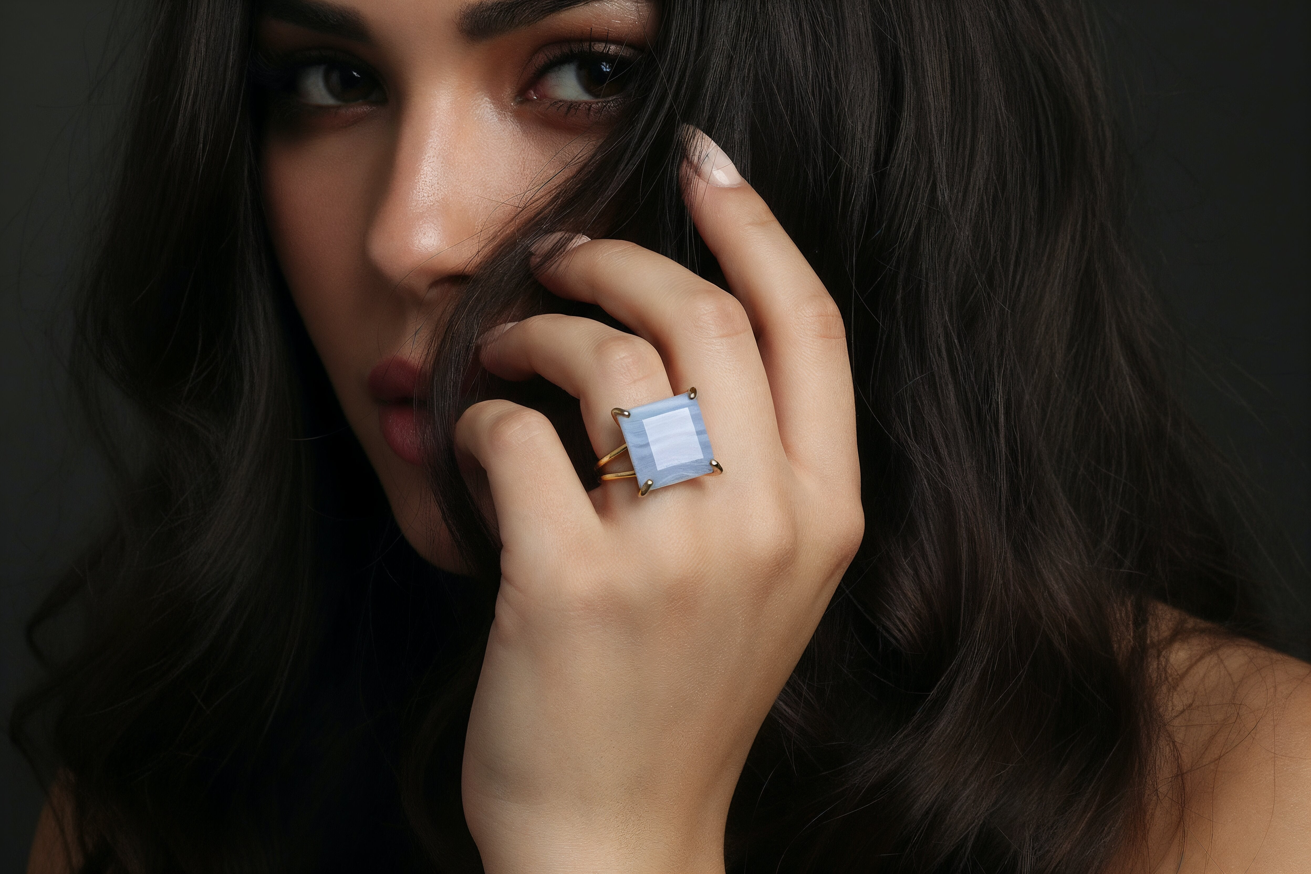 This blue lace agate ring features a bold square-cut gemstone set in a polished 14k gold band. Known for its calming blue patterns, lace agate is valued as a stone of balance and clarity. The large solitaire design creates a modern statement look, while the gold setting adds lasting elegance. Handcrafted with care, this ring makes a thoughtful BFF gift, a striking statement piece, or a meaningful gemstone addition to any jewelry collection.