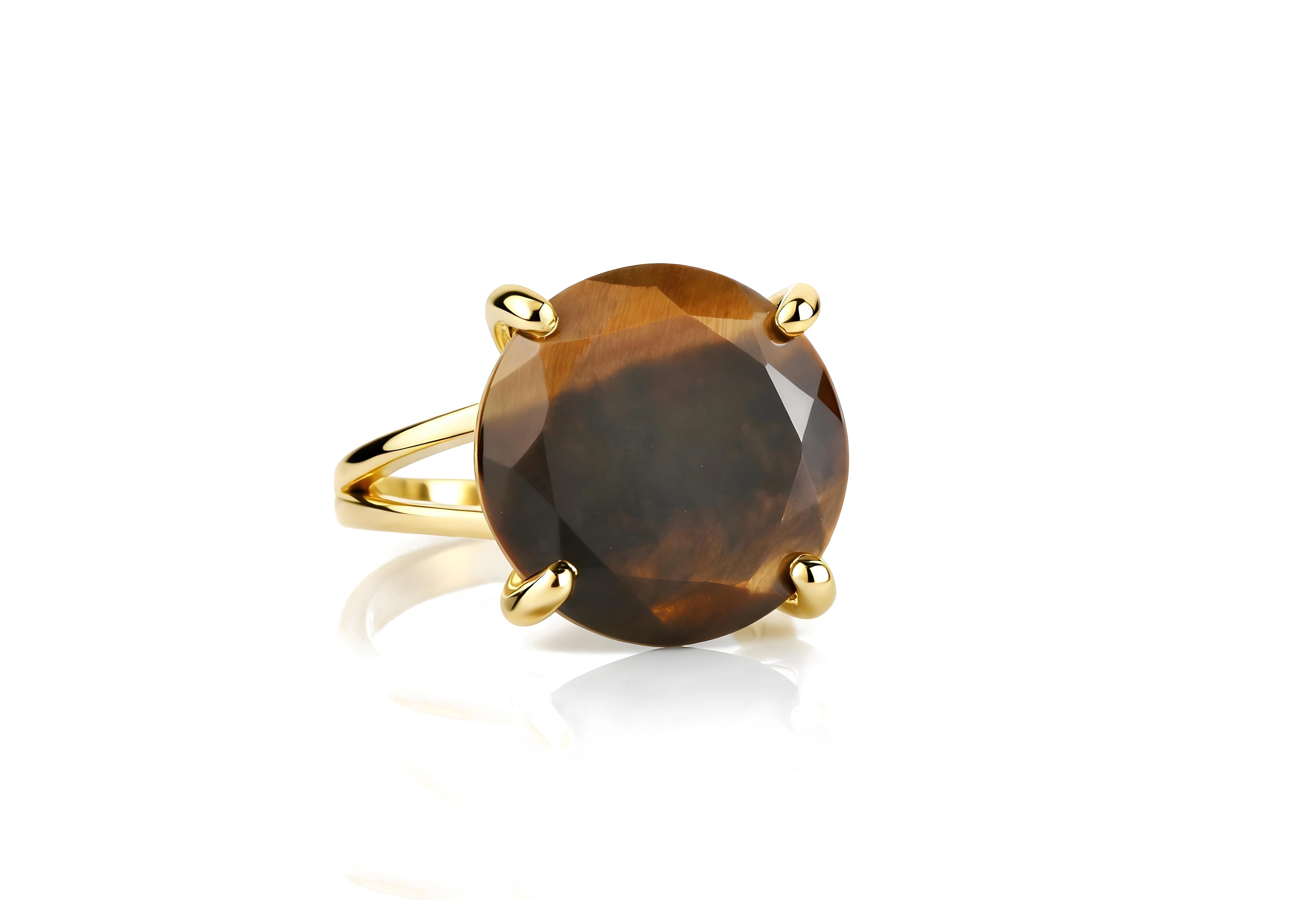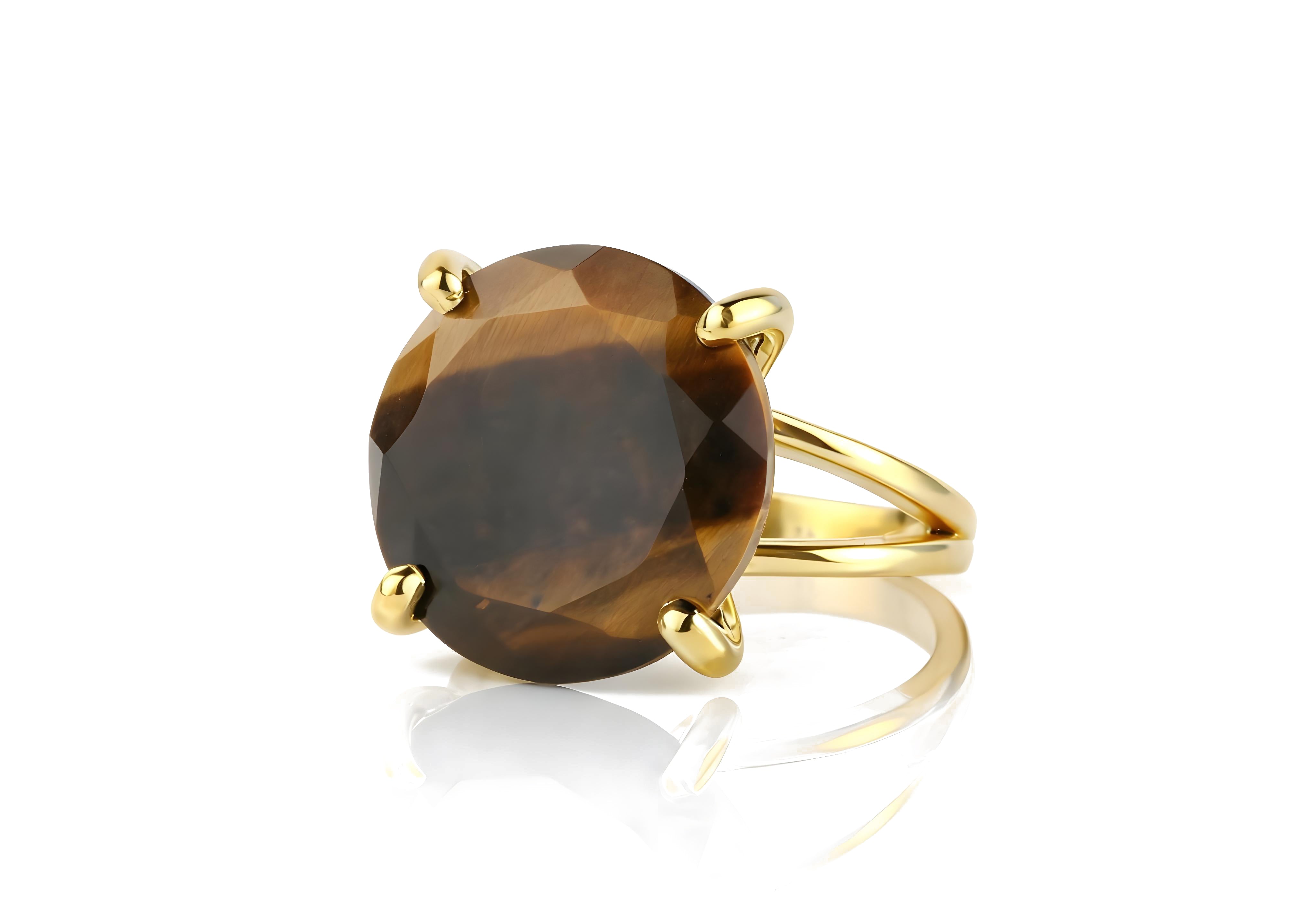 Statement 16MM Tiger Eye Crystal Yellow Gold Ring