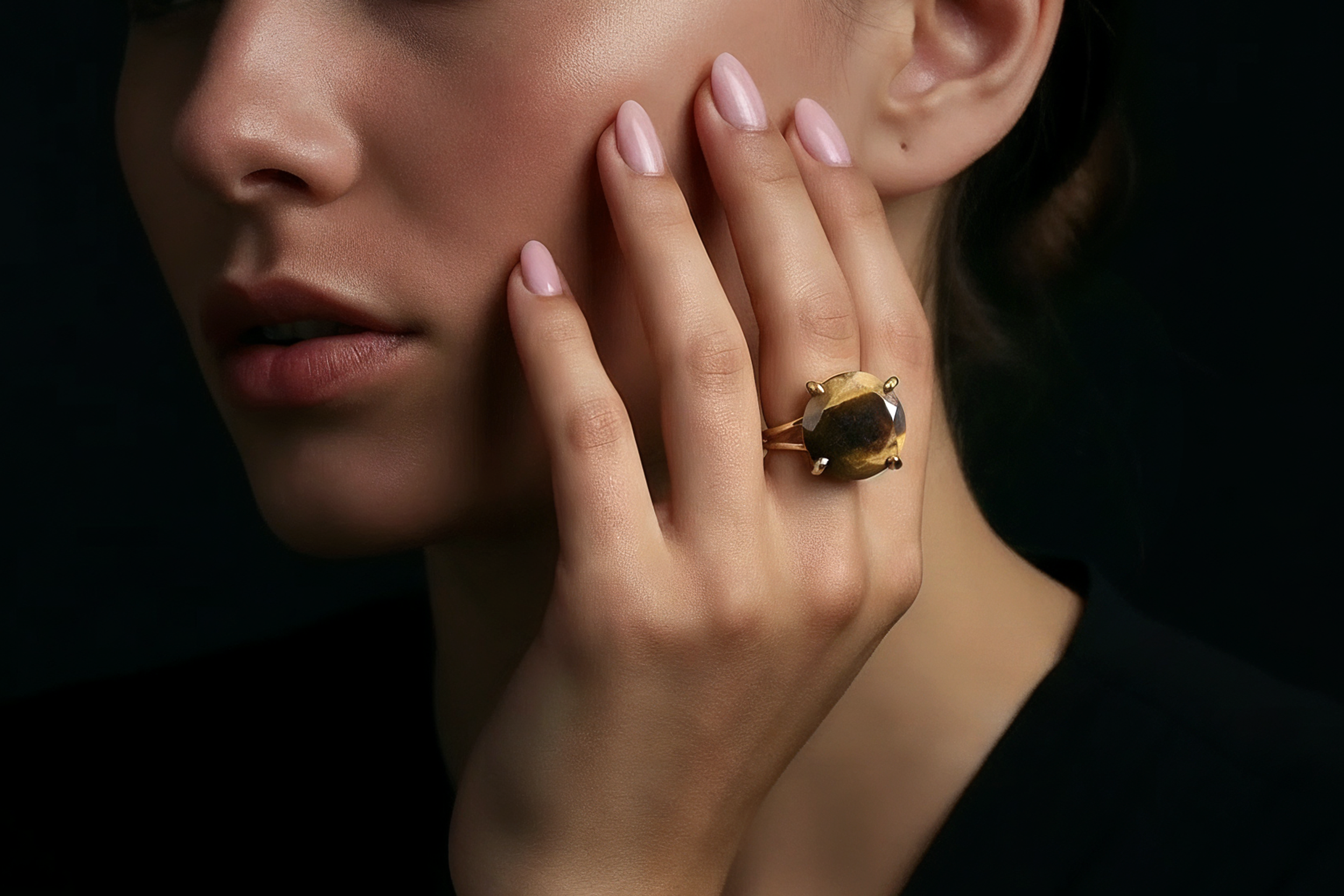 This 14k gold tiger eye ring showcases the gem’s natural golden-brown luster and grounding energy. Hand-cut and polished to perfection, its round shape reflects light with warmth and depth.