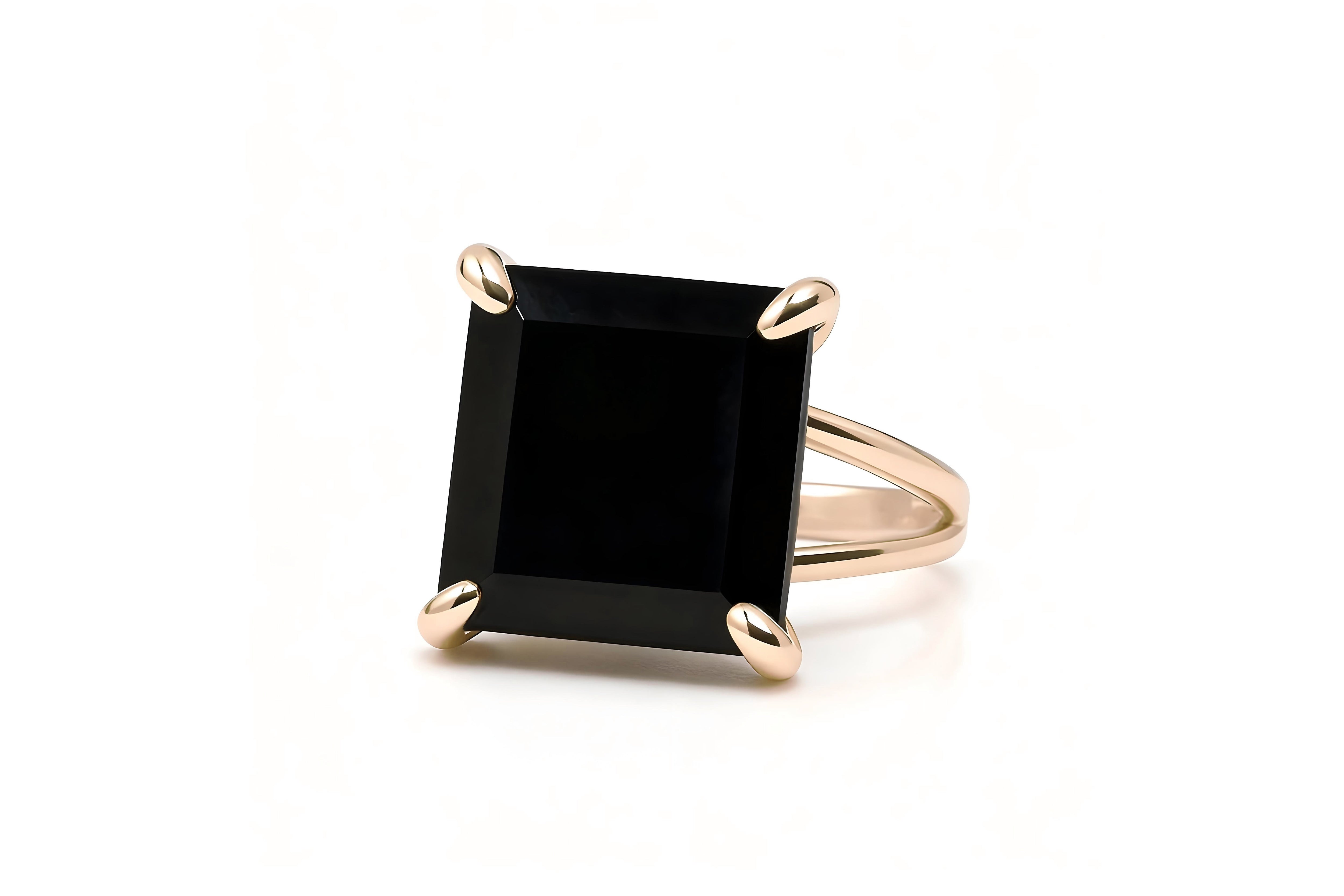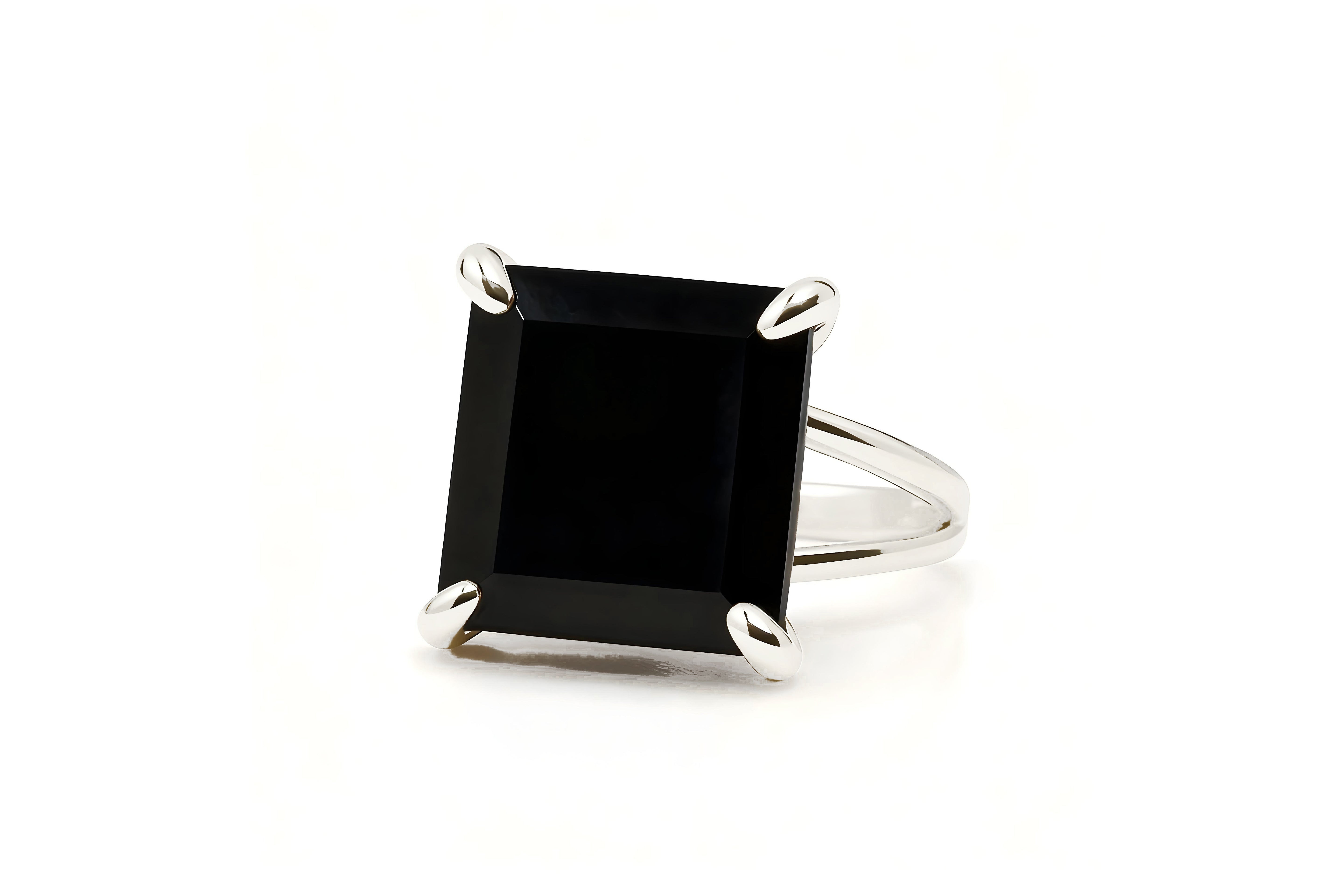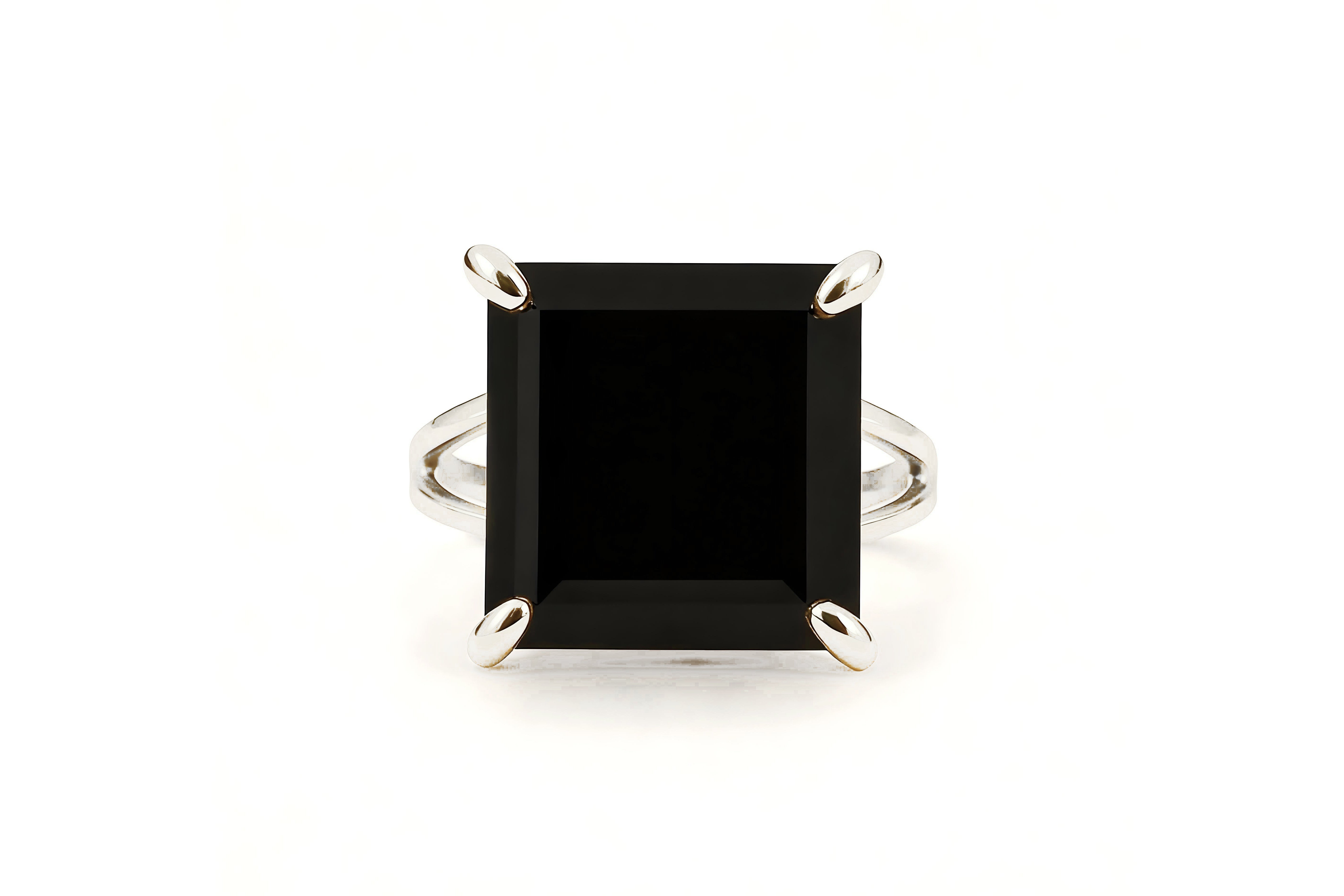 This sterling silver ring features a square emerald-cut black onyx gemstone set in a polished band. With its sleek, modern style, this gemstone ring offers a bold alternative to traditional diamonds. Black onyx, known for its grounding and protective properties, adds meaning and elegance. Handcrafted in 925 silver, this square gemstone ring is a versatile choice for everyday wear, cocktail events, or as a timeless gift.