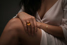 This rose gold citrine ring features a luminous oval-cut gemstone that radiates positivity and warmth. Crafted in solid gold, it symbolizes both love and vitality, making it a perfect engagement or bridal ring. Known as the November birthstone, citrine is believed to promote healing and balanced energy. Handcrafted with care, this gemstone ring is a meaningful choice for women seeking beauty, harmony, and elegance.