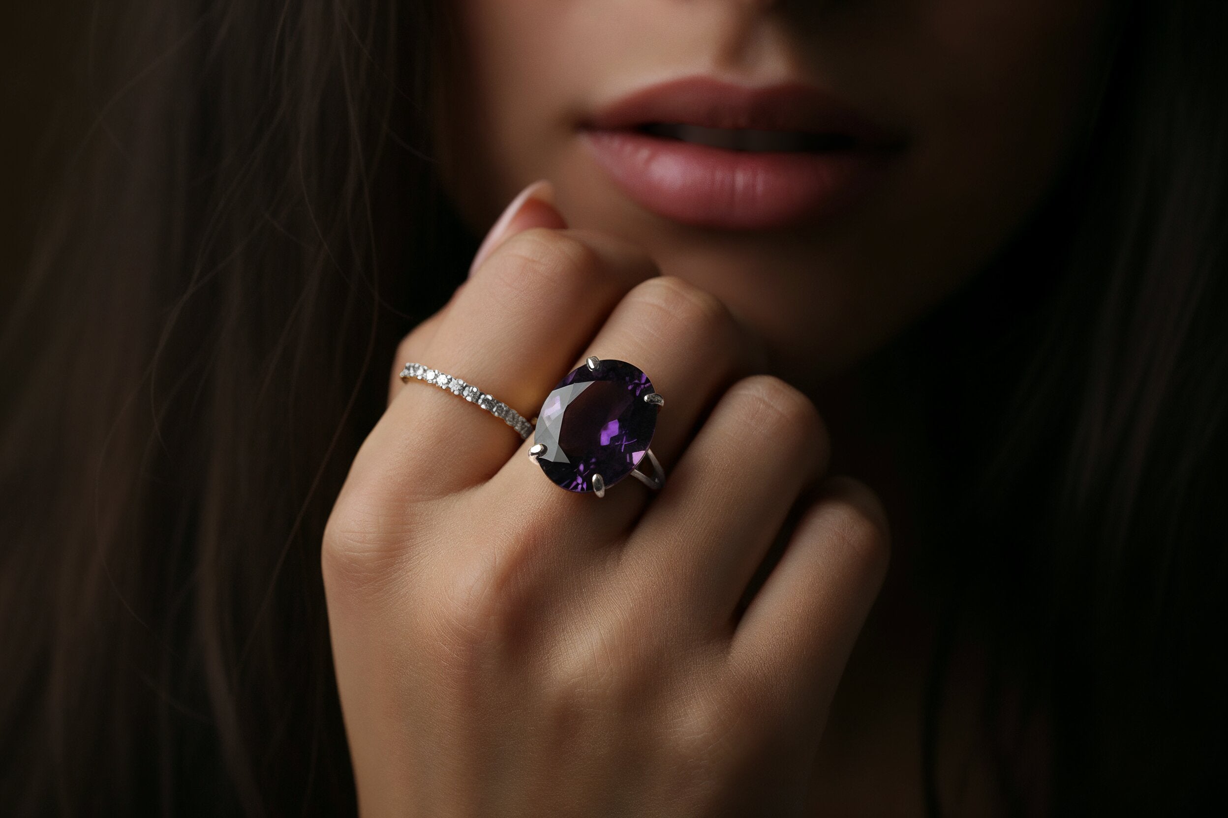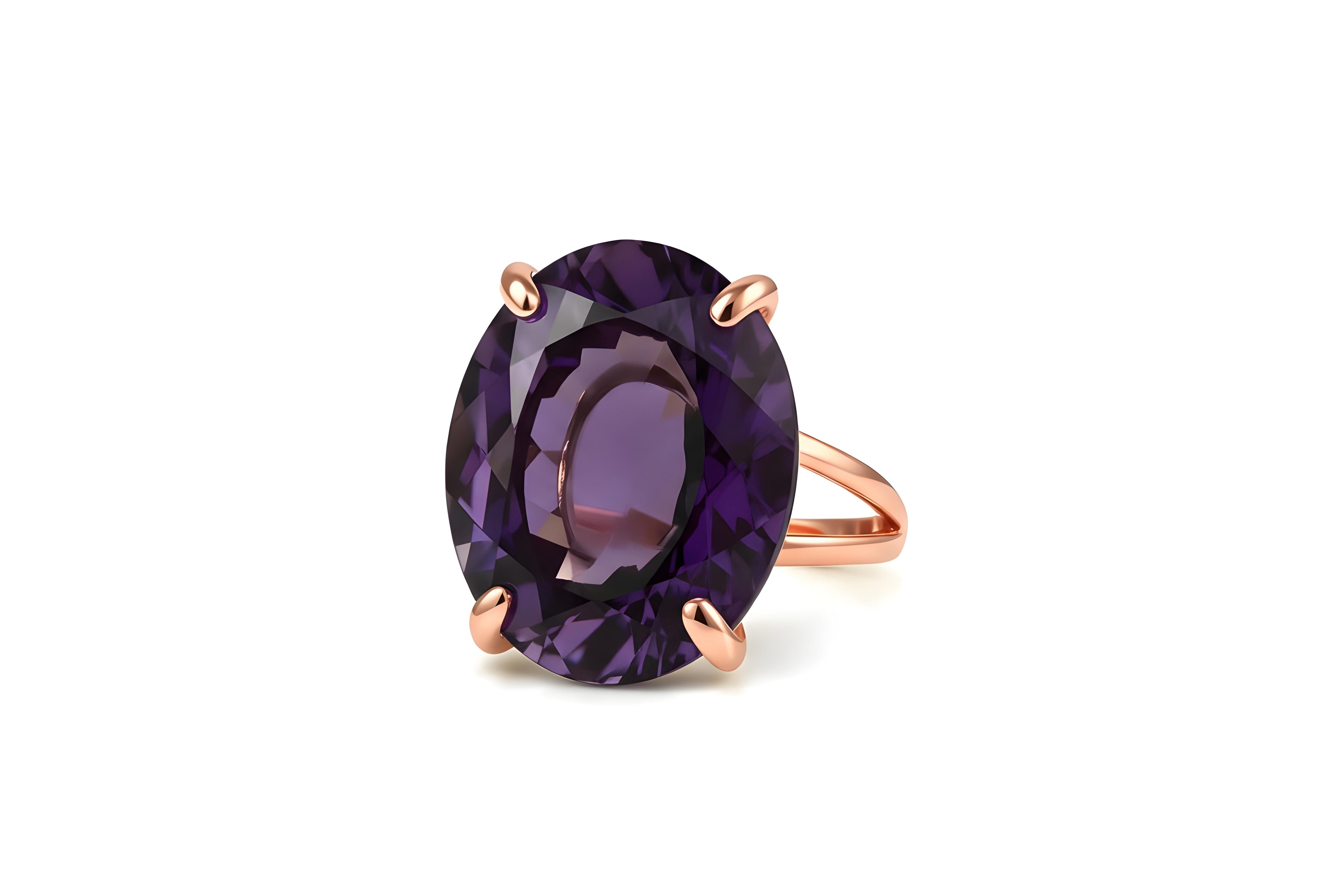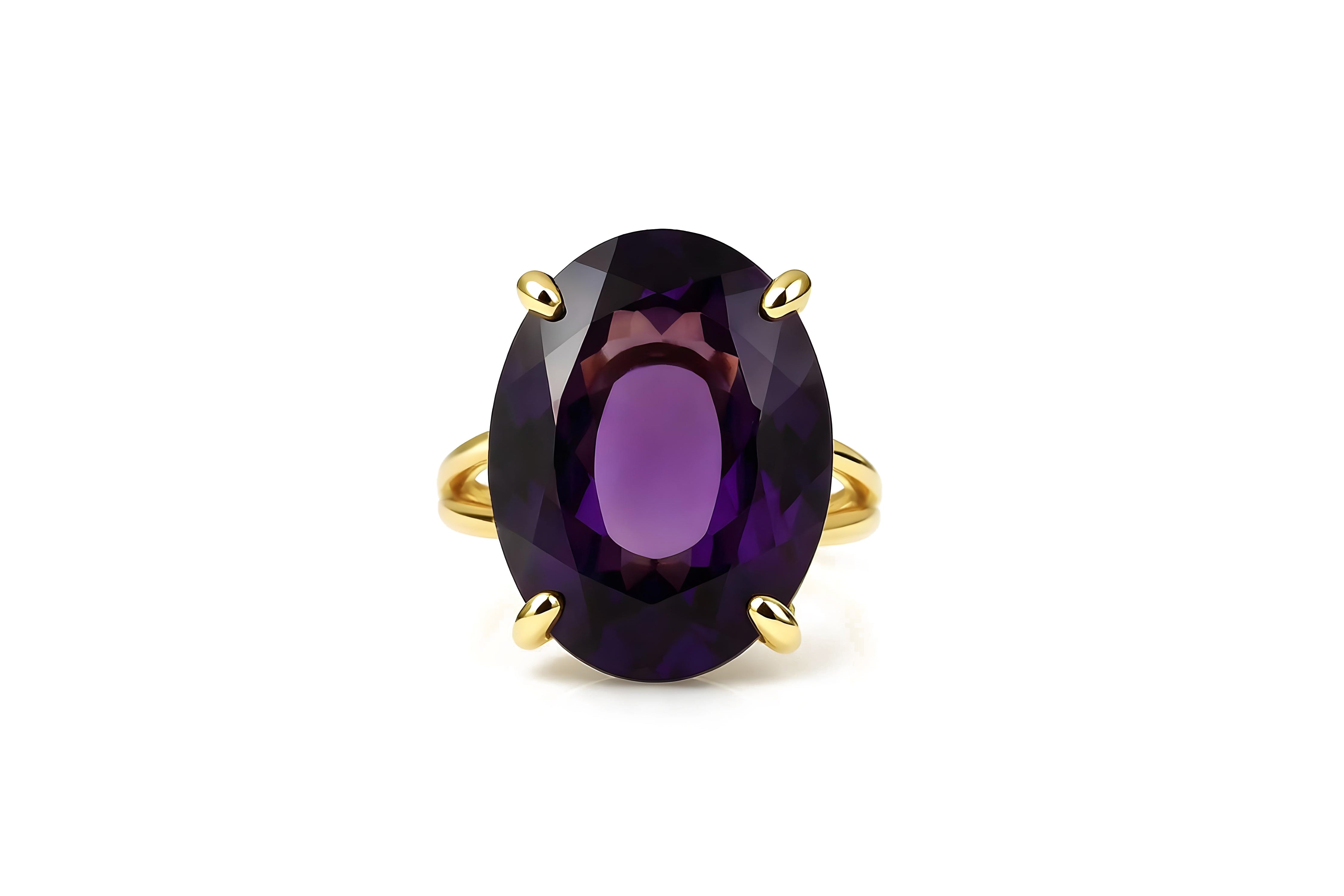 This handcrafted 14k gold ring showcases a deep purple oval-cut amethyst, radiating sophistication and charm. The classic four-prong setting enhances the gemstone’s brilliance, while the solid gold band adds luxurious warmth. As February’s birthstone, amethyst symbolizes calm and confidence — a perfect statement piece for everyday wear or special occasions.