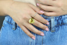 Bring a brilliant touch to your looks with this handmade jewelry for women. A 14k rose gold ring that centers a Lemon Quartz in prongs. Fashion-forward, statement ring that can be styled with other stacking rings and other matching Quartz pieces.