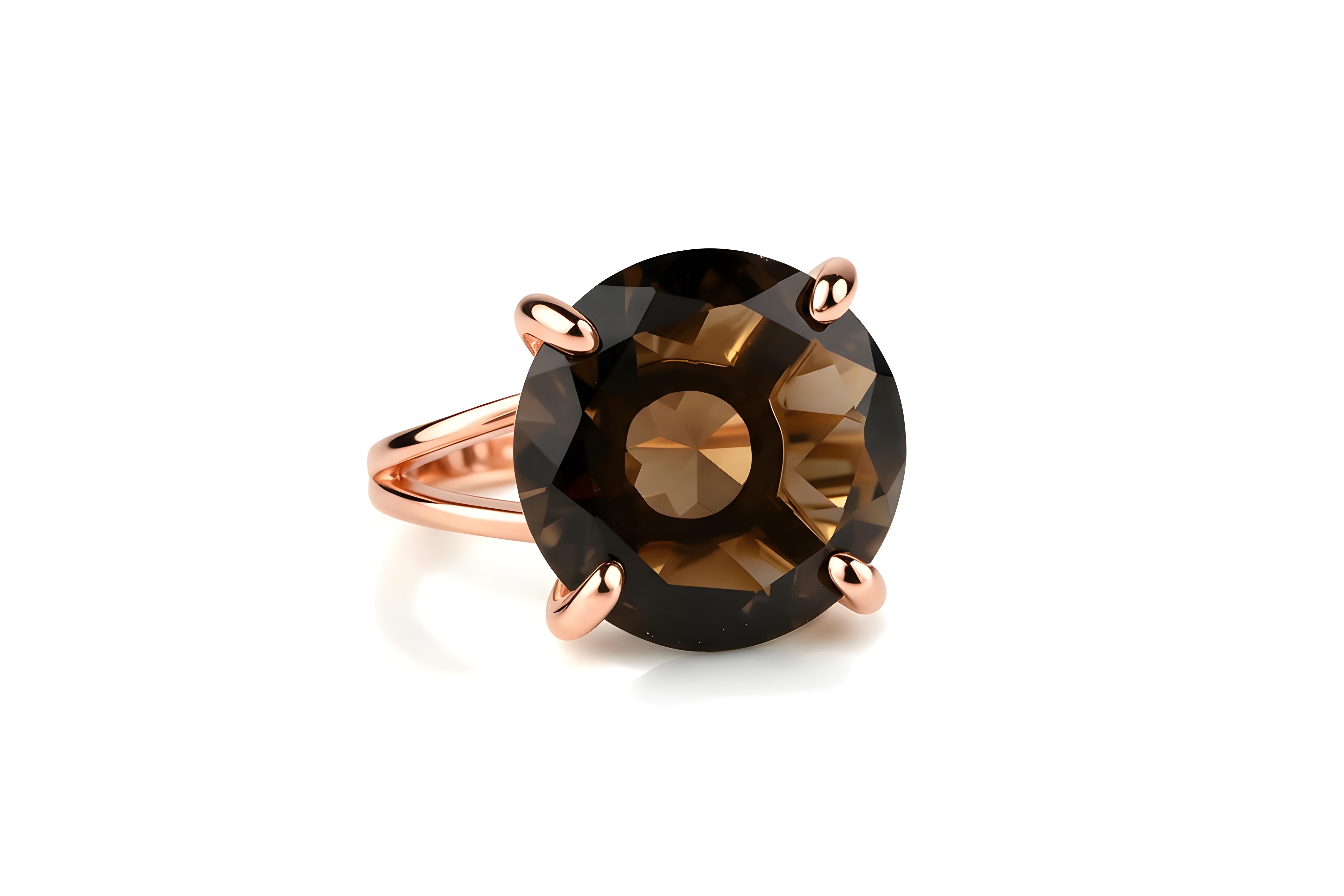 This 14k rose gold smoky quartz ring features a deep brown round-cut gemstone that radiates subtle warmth and elegance. Handcrafted to perfection, the design highlights the rich tones of quartz against the soft blush of pink gold, creating a balance of sophistication and modern femininity. A perfect statement ring for everyday wear or special occasions.