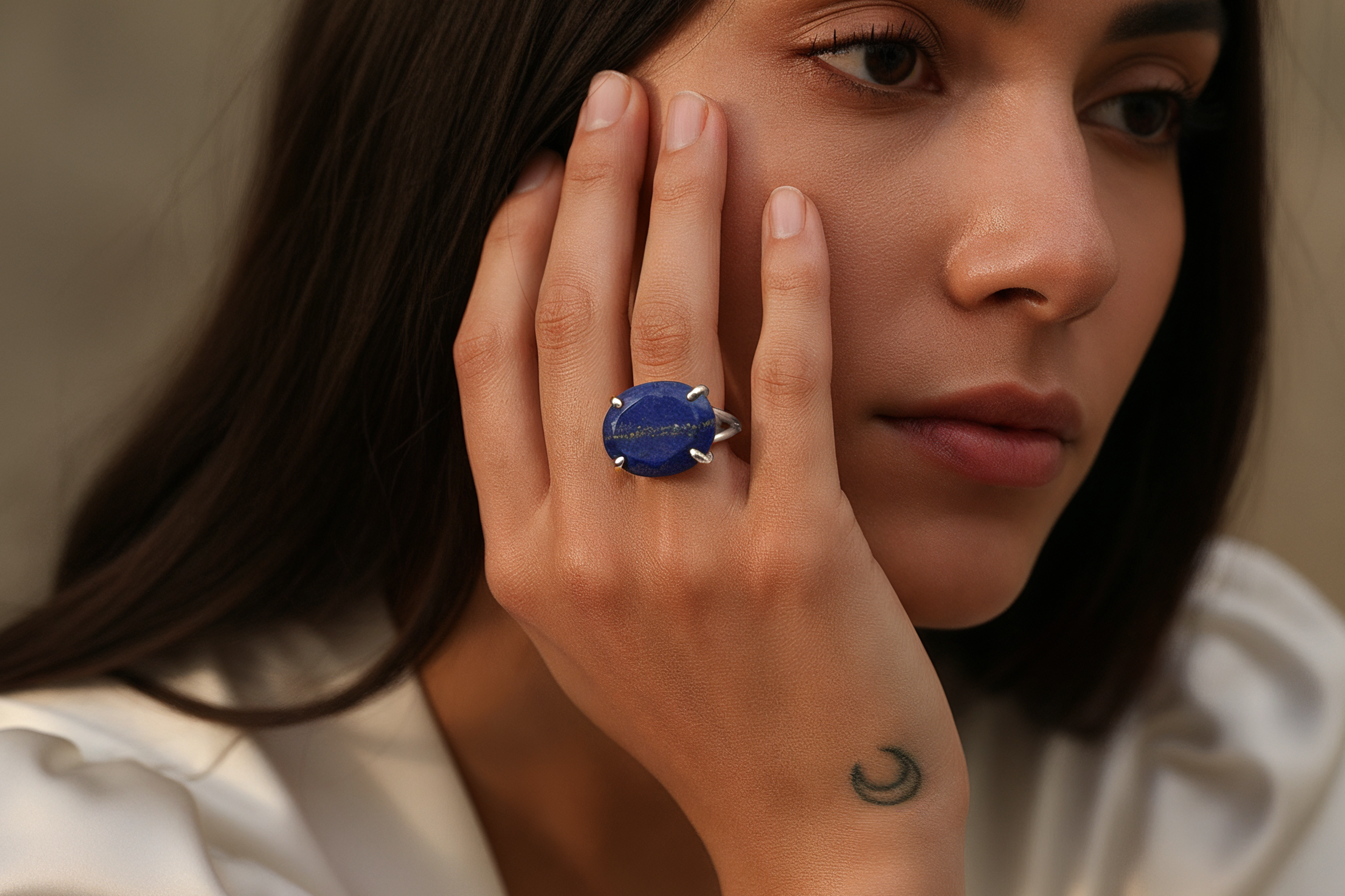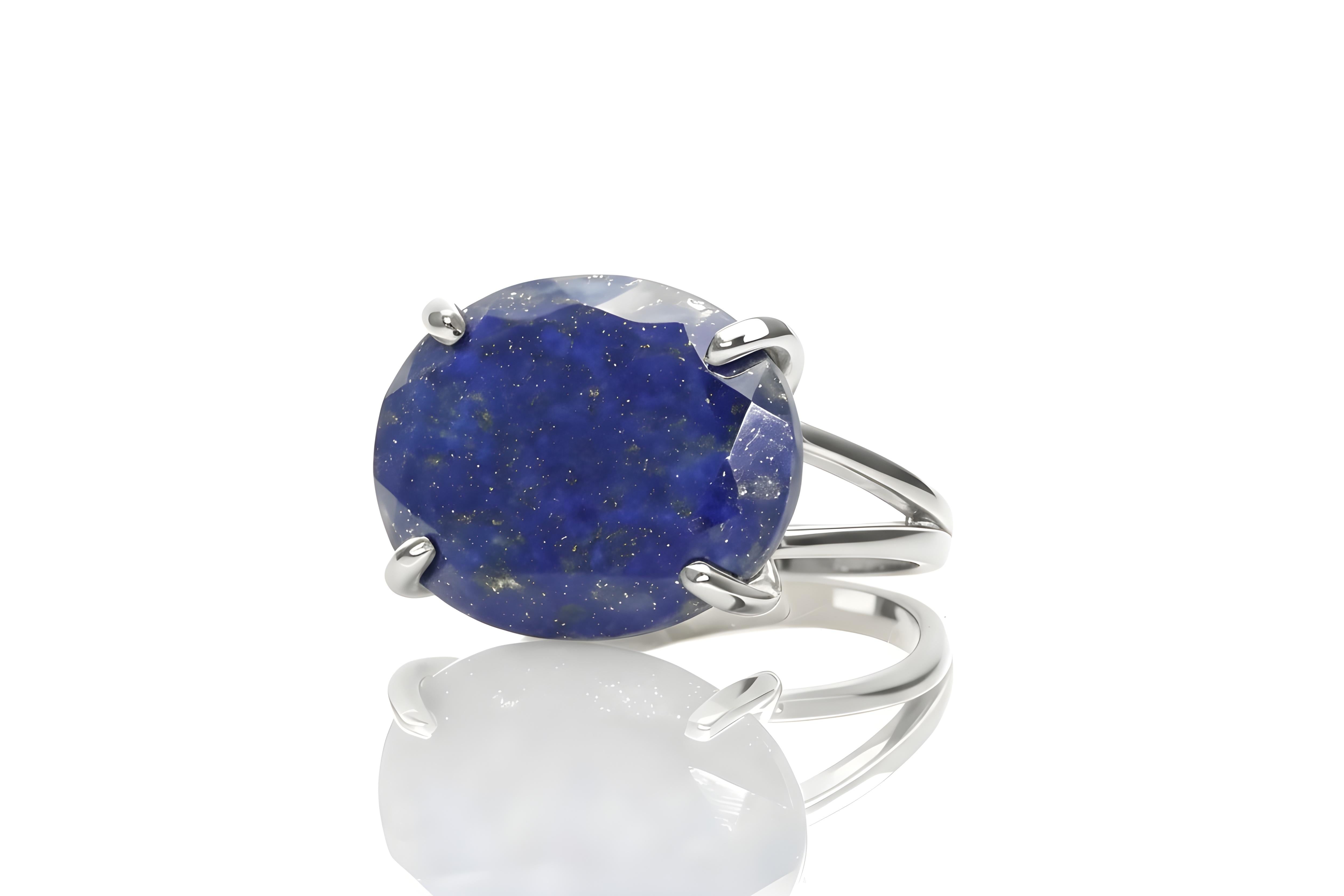 Sterling Silver Cocktail Oval Cut Lapis Lazuli Ring