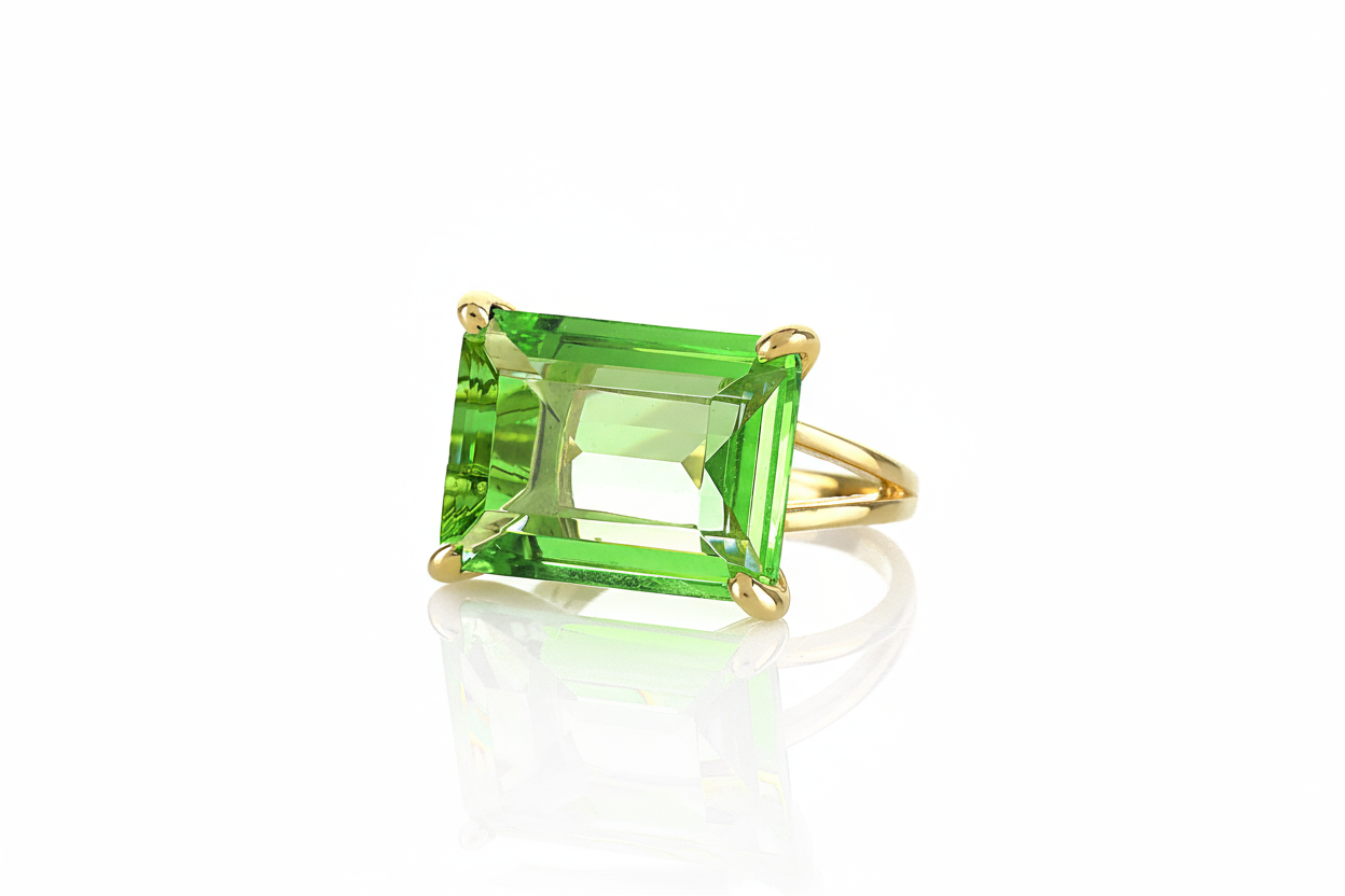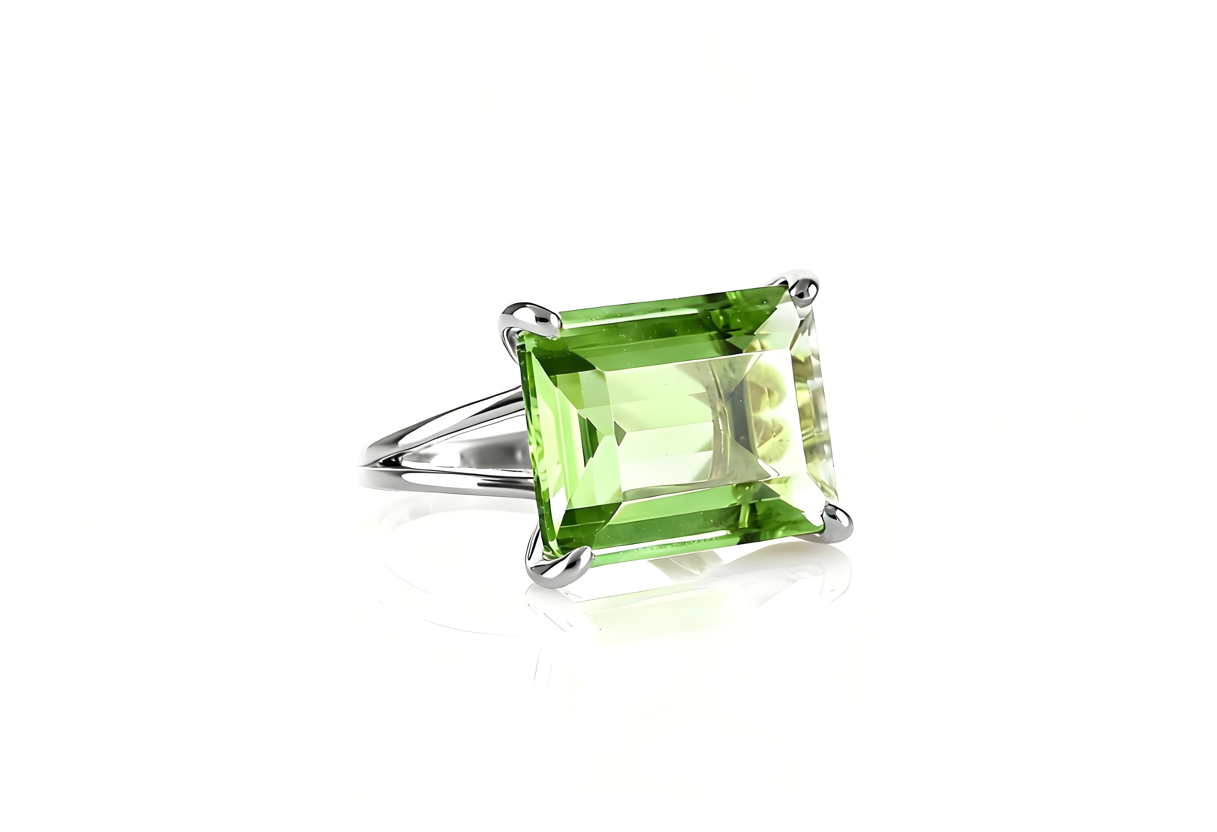 Elevate your jewelry collection with the Sterling Silver Green Tourmaline Ring, featuring a stunning rectangle-cut gemstone in a unique horizontal setting. The 4-prong solitaire design ensures secure placement, while the vibrant green tourmaline adds a touch of sophistication. Perfect as an October birthstone piece, this silver ring is ideal for anniversaries, birthdays, or a meaningful gift. Crafted with precision, the sterling silver band complements the gemstone's beauty, offering a versatile accessory for both casual and formal wear.