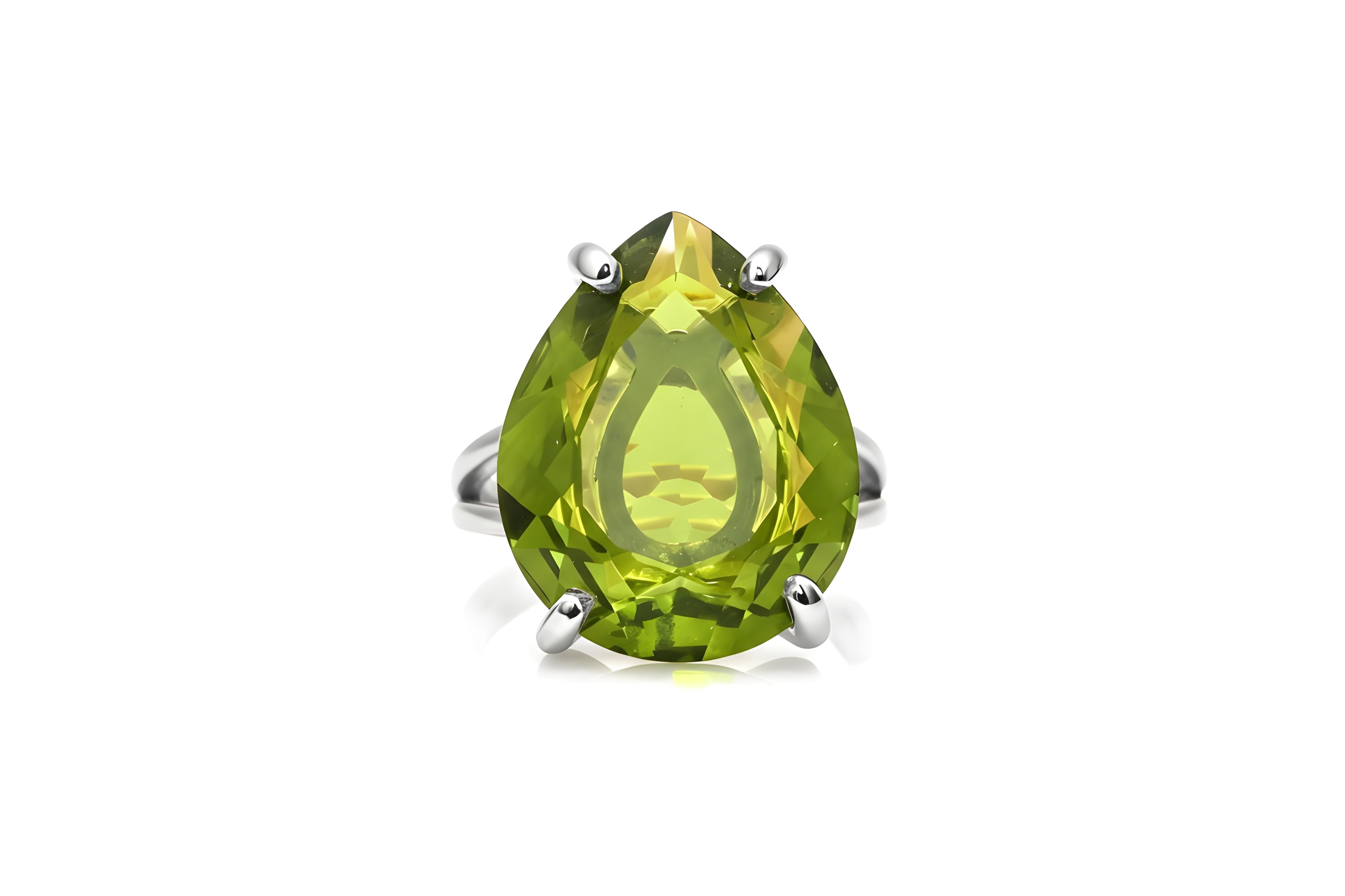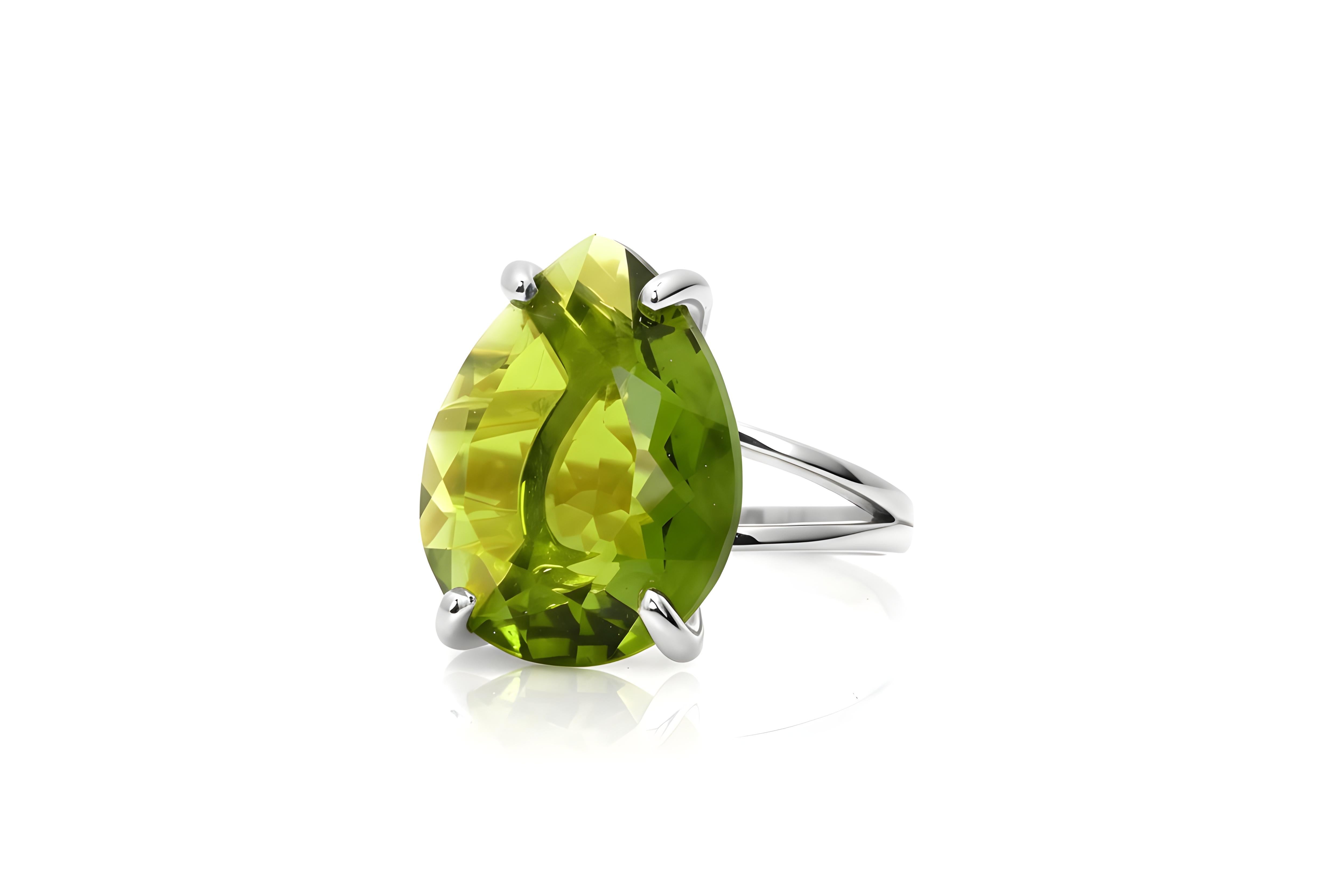 A radiant pear-cut peridot gemstone glows in this sterling silver statement ring, capturing the vivid beauty of August’s birthstone. Its brilliant facets enhance the stone’s natural sparkle, while the polished silver band adds a touch of modern refinement. Perfect for everyday wear or special occasions, this ring blends vibrant color with timeless sophistication.