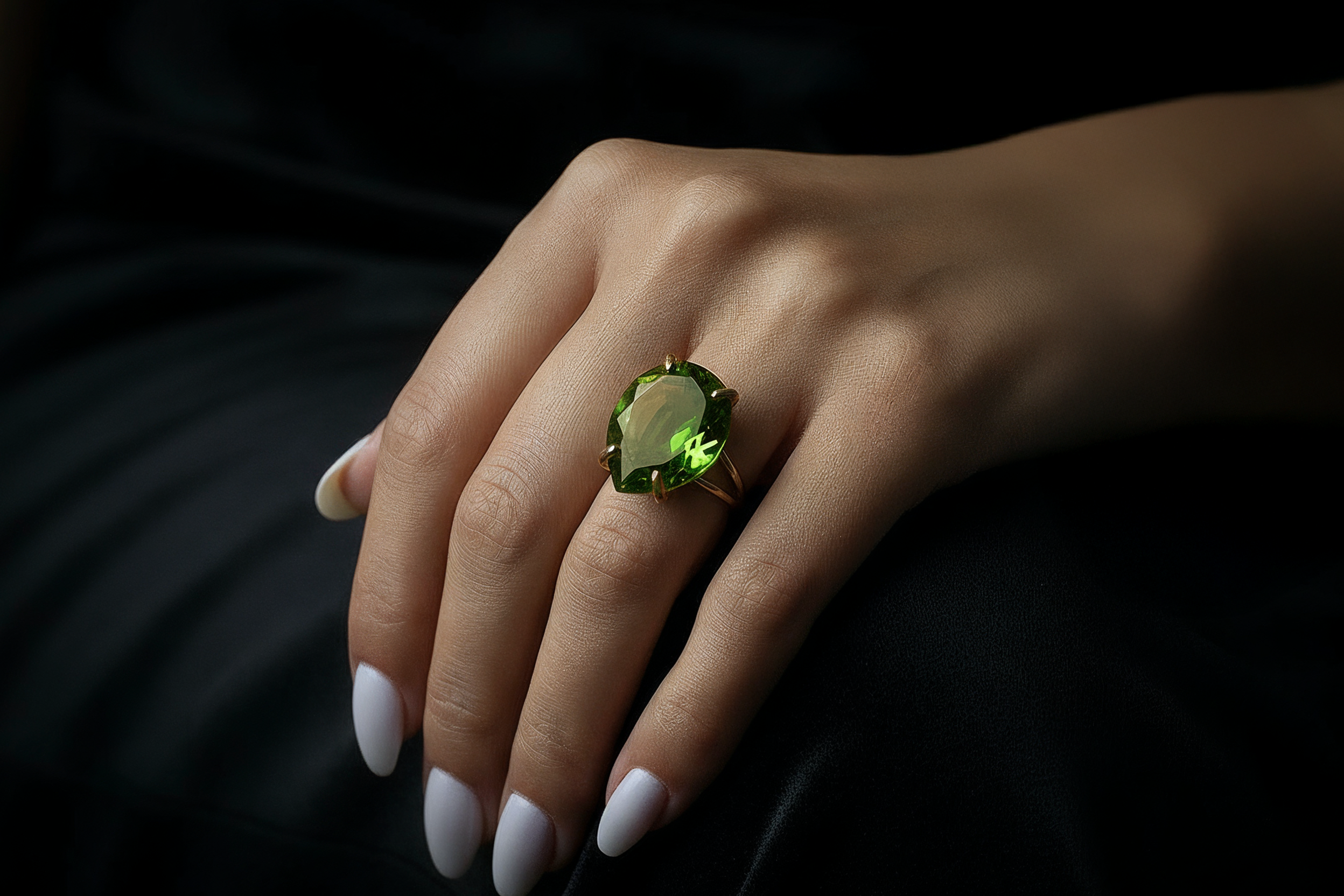 • Pear-cut peridot stone