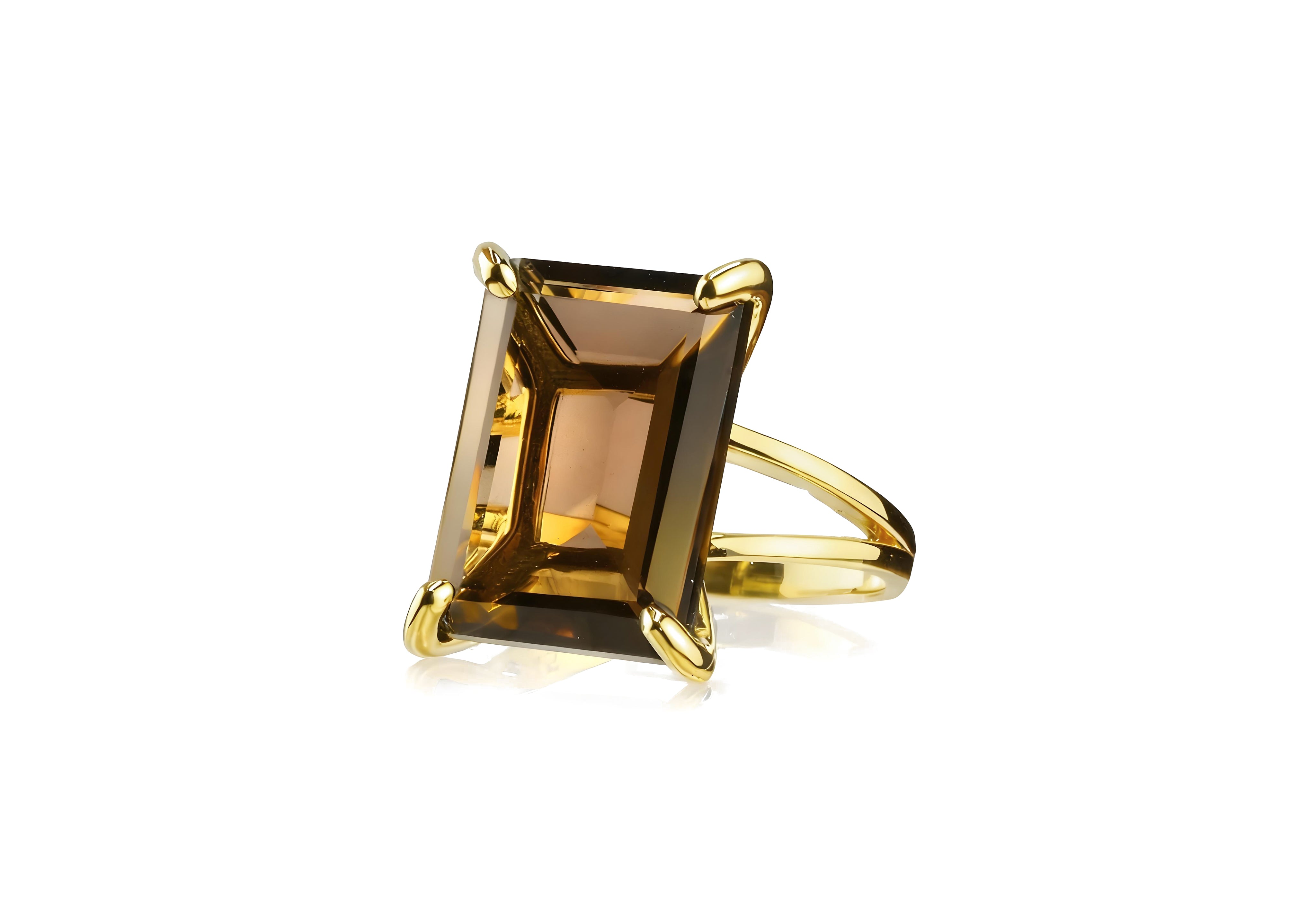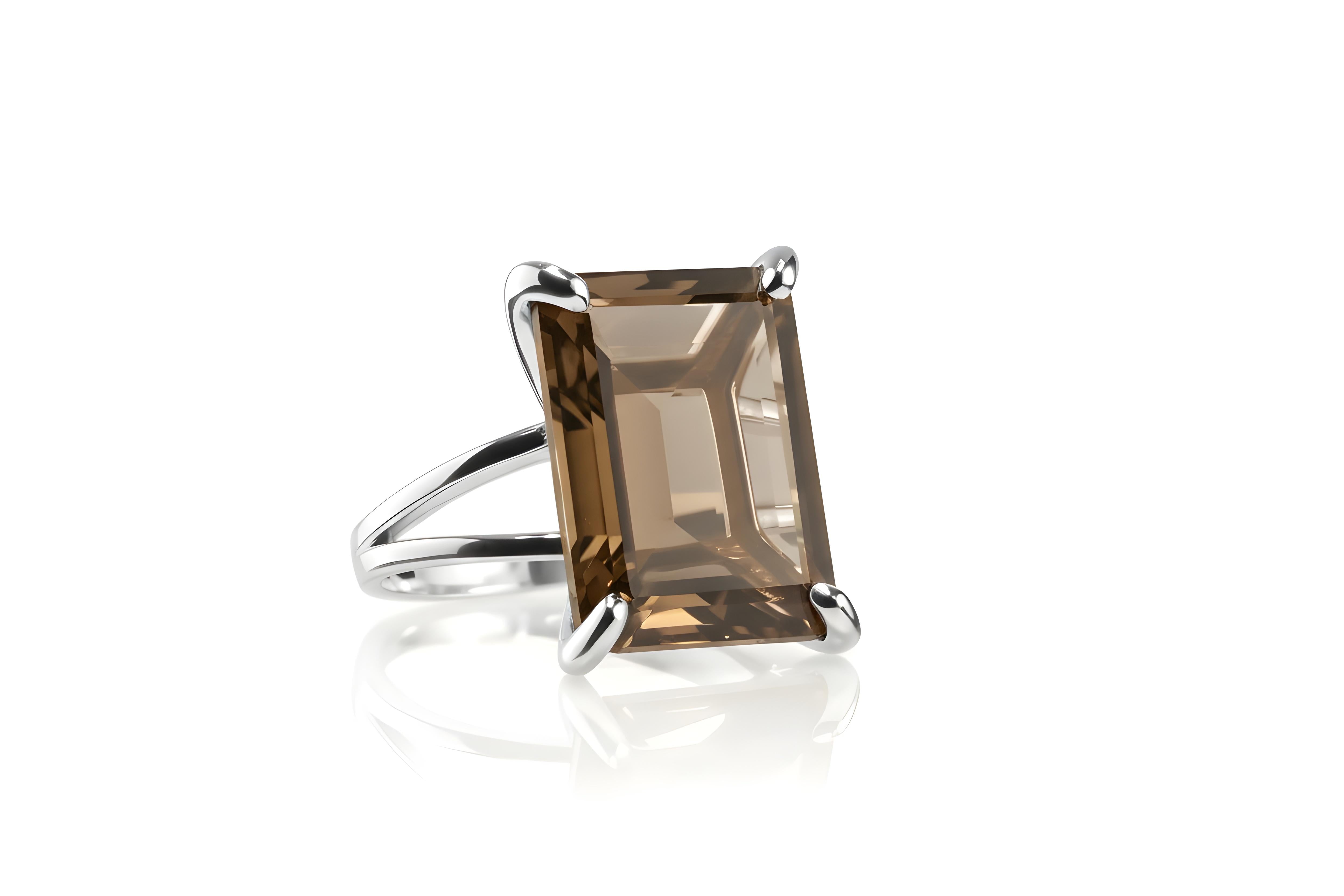 A striking rectangle-cut smoky quartz sits at the center of this 925 sterling silver statement ring. The warm brown gemstone pairs beautifully with the mirror-polished silver setting, creating a sophisticated contrast that elevates any look. Perfect for both everyday elegance and special occasions, this handmade semiprecious ring is a timeless addition to your collection.