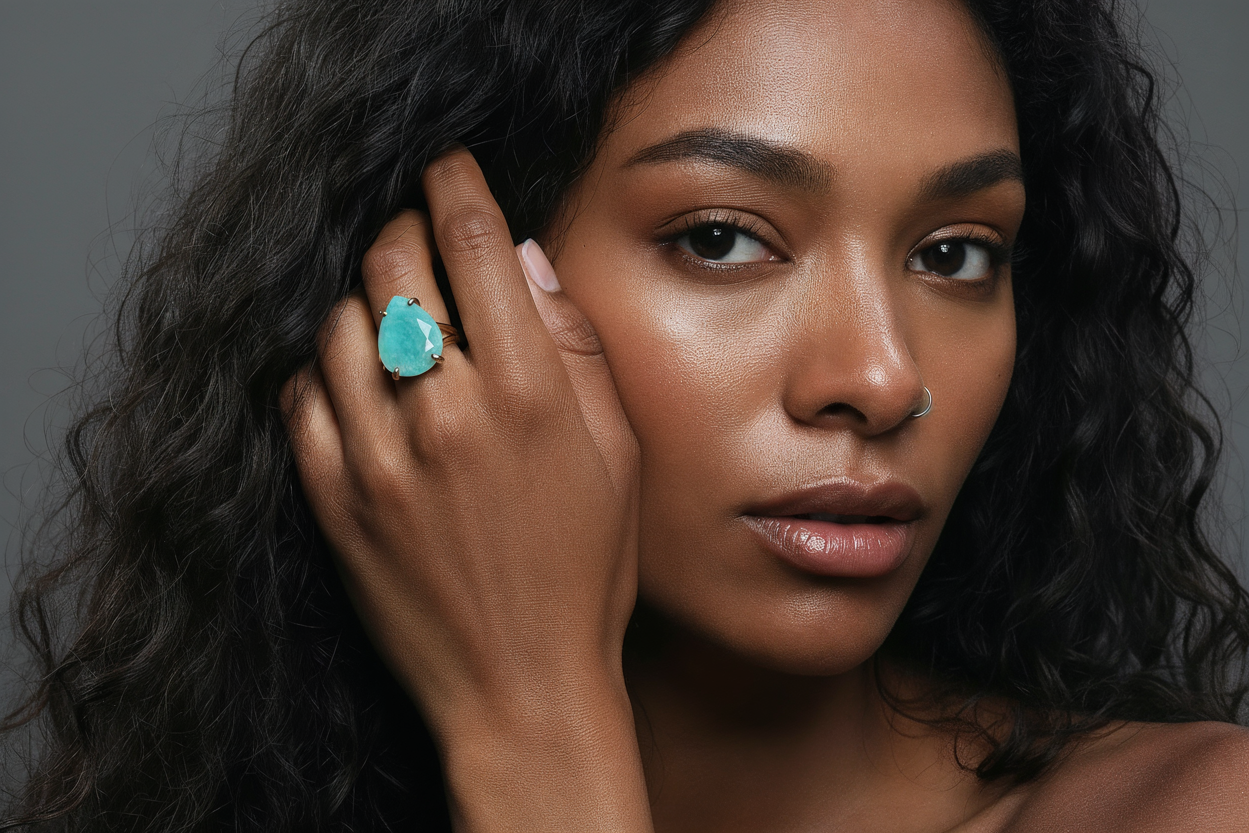 This Amazonite teardrop ring shines with a tranquil blue-green gemstone set in polished 14k rose gold. Its pear-cut shape and prong setting highlight the stone’s natural beauty, offering a refined and graceful look for any occasion. Each ring is handmade and customizable in any metal or size, making it a meaningful gift or a special addition to your personal collection.