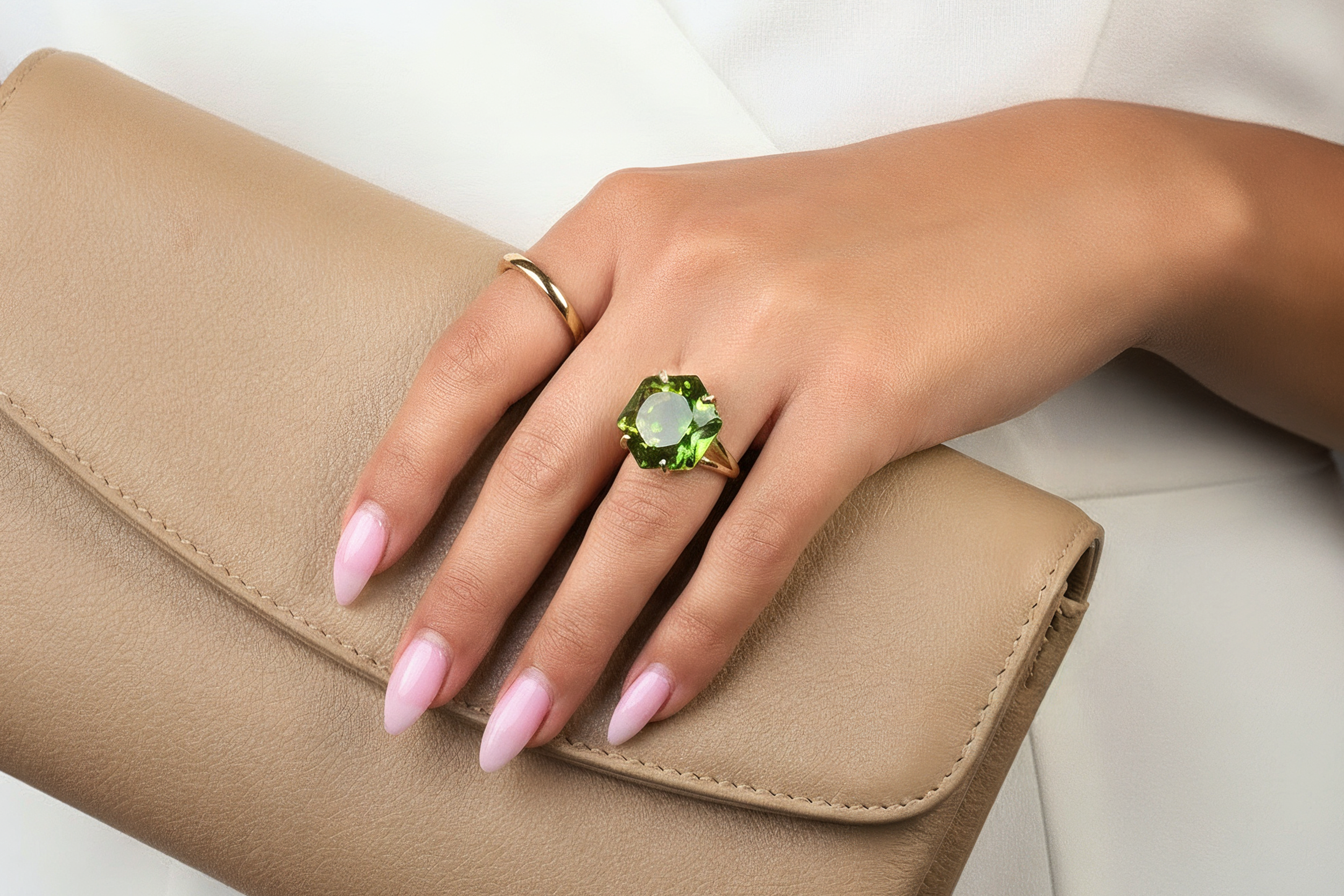 the Peridot gemstone is beautiful as well. I am very happy with this purchase and no problem with shipping.