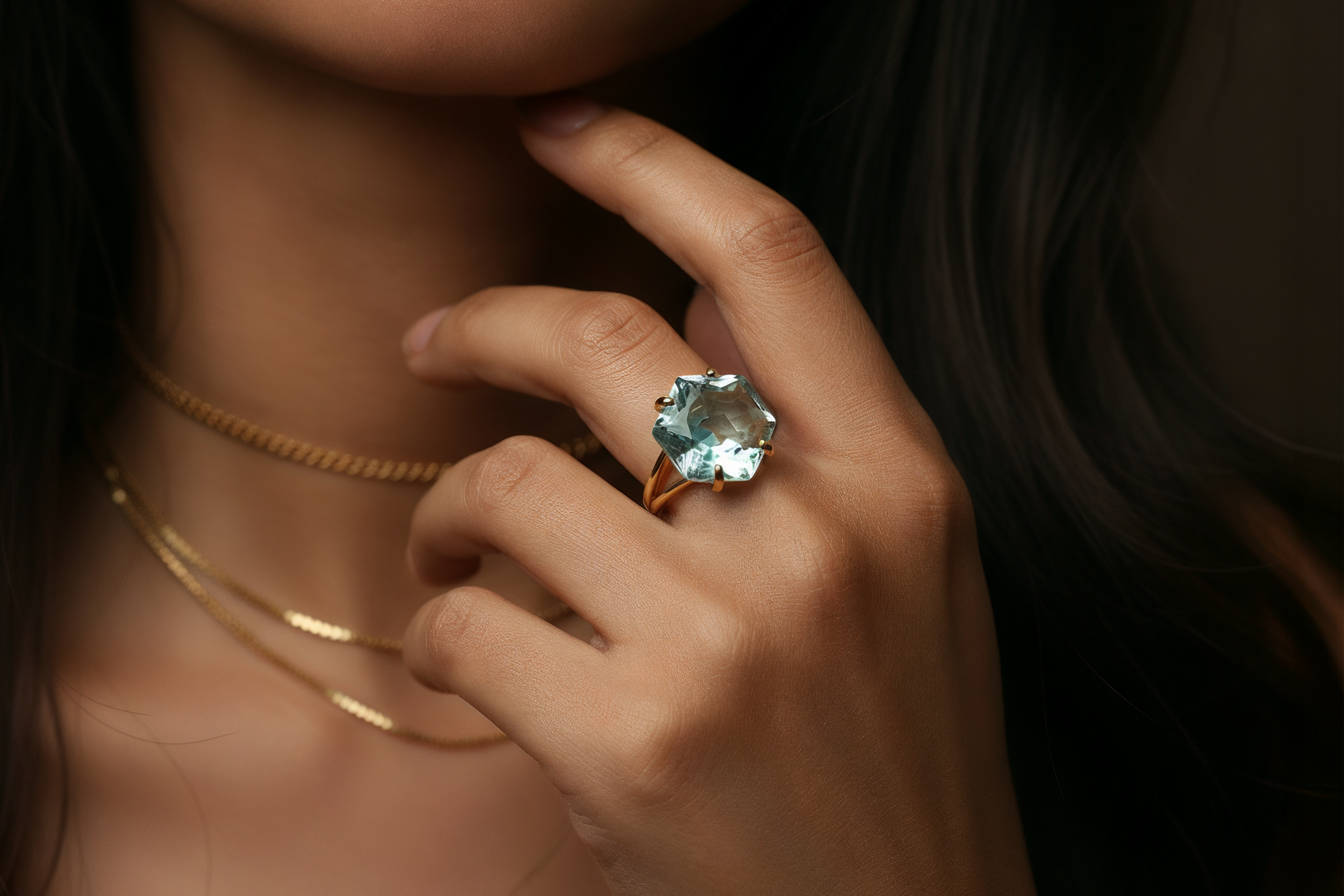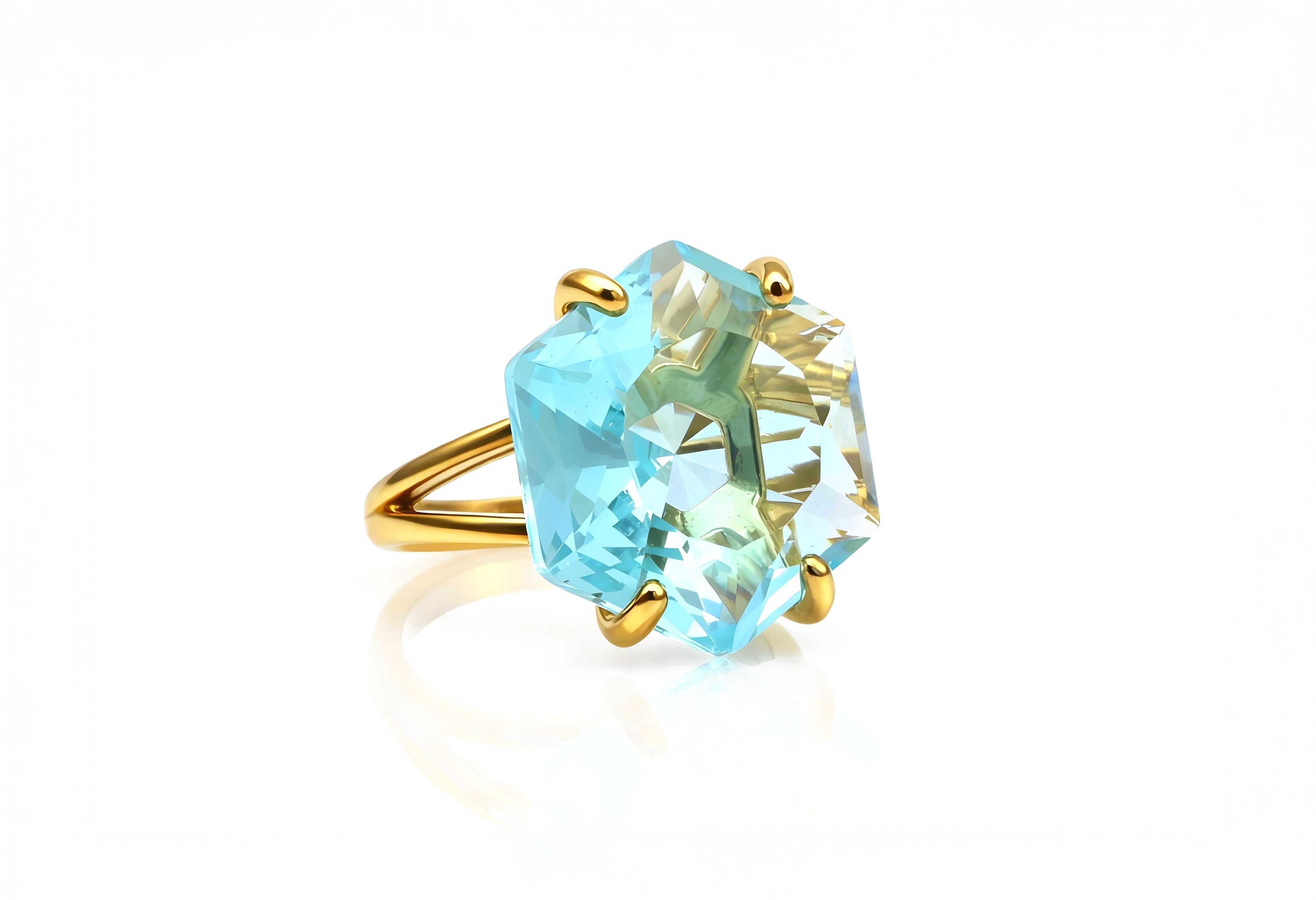 This hexagon topaz ring is a bold yet elegant piece featuring a radiant faceted gemstone set in 18k gold vermeil. The geometric hexagon cut enhances the natural sparkle of the topaz, symbolizing clarity and balance. Perfect as a statement ring or a thoughtful November birthstone gift, this handcrafted piece offers modern sophistication and timeless charm.