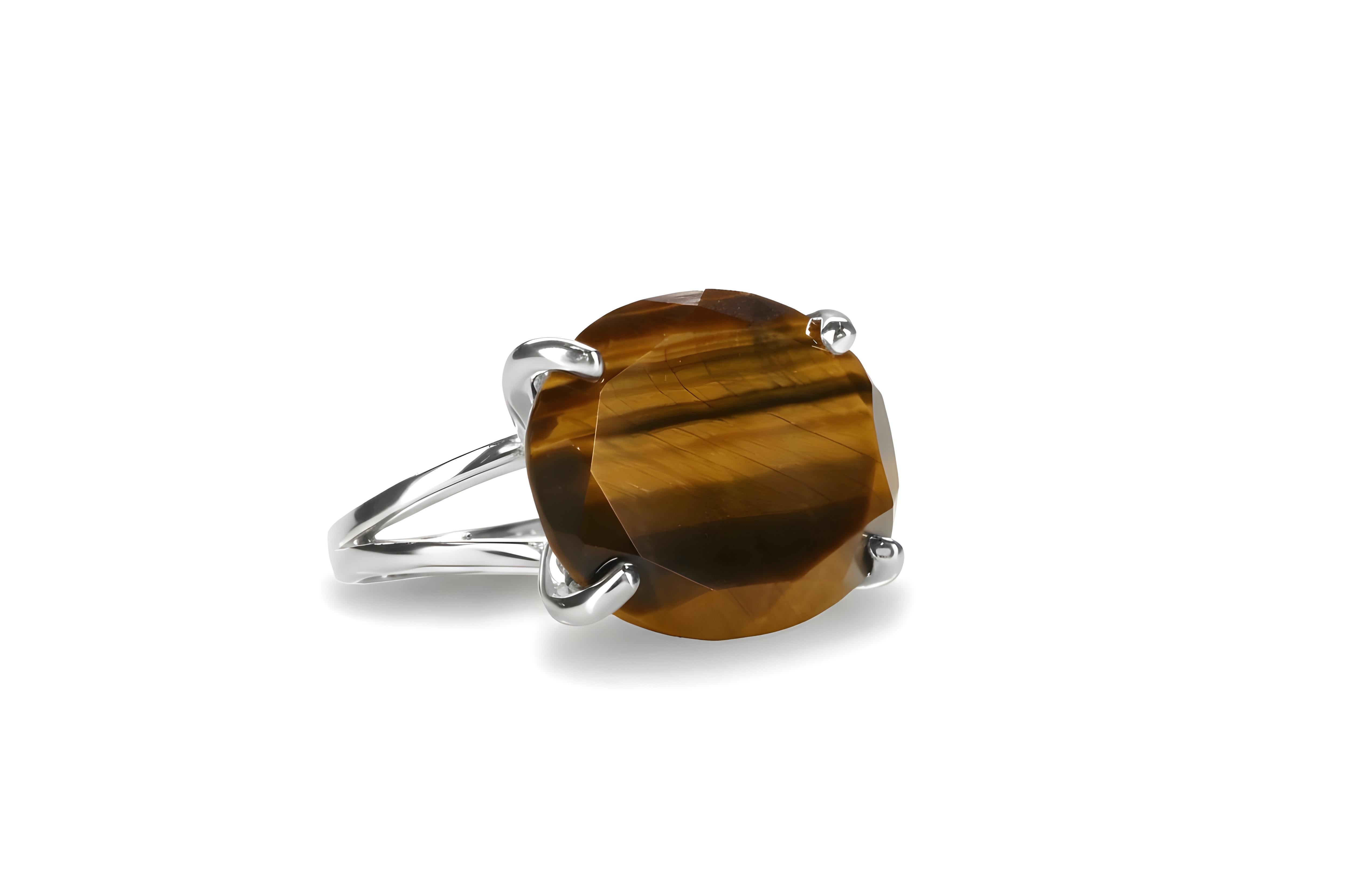 This sterling silver Tiger Eye ring features a warm brown oval-cut gemstone with natural chatoyancy that shifts beautifully in the light. The faceted finish adds extra depth, while the polished silver band provides a clean and modern look. Known as a stone of grounding and protection, Tiger Eye brings meaning and presence to this statement piece. Expertly crafted with a secure multi-prong setting, it is perfect for everyday wear or gifting.