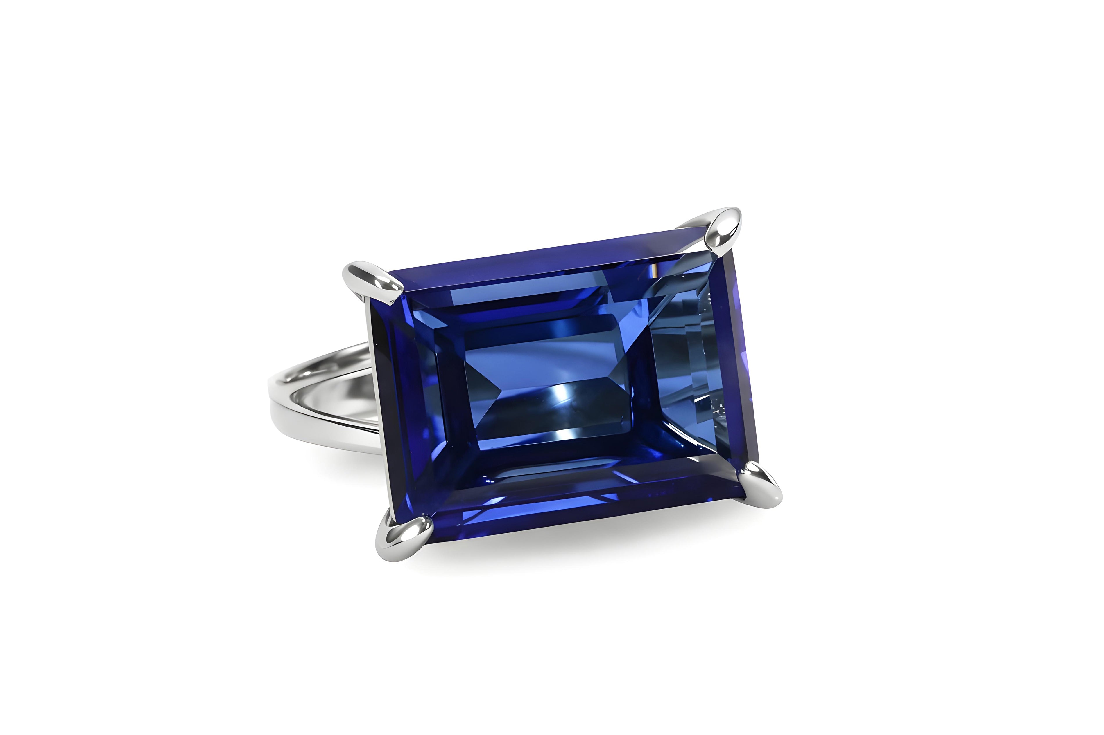 - Emerald cut blue gemstone