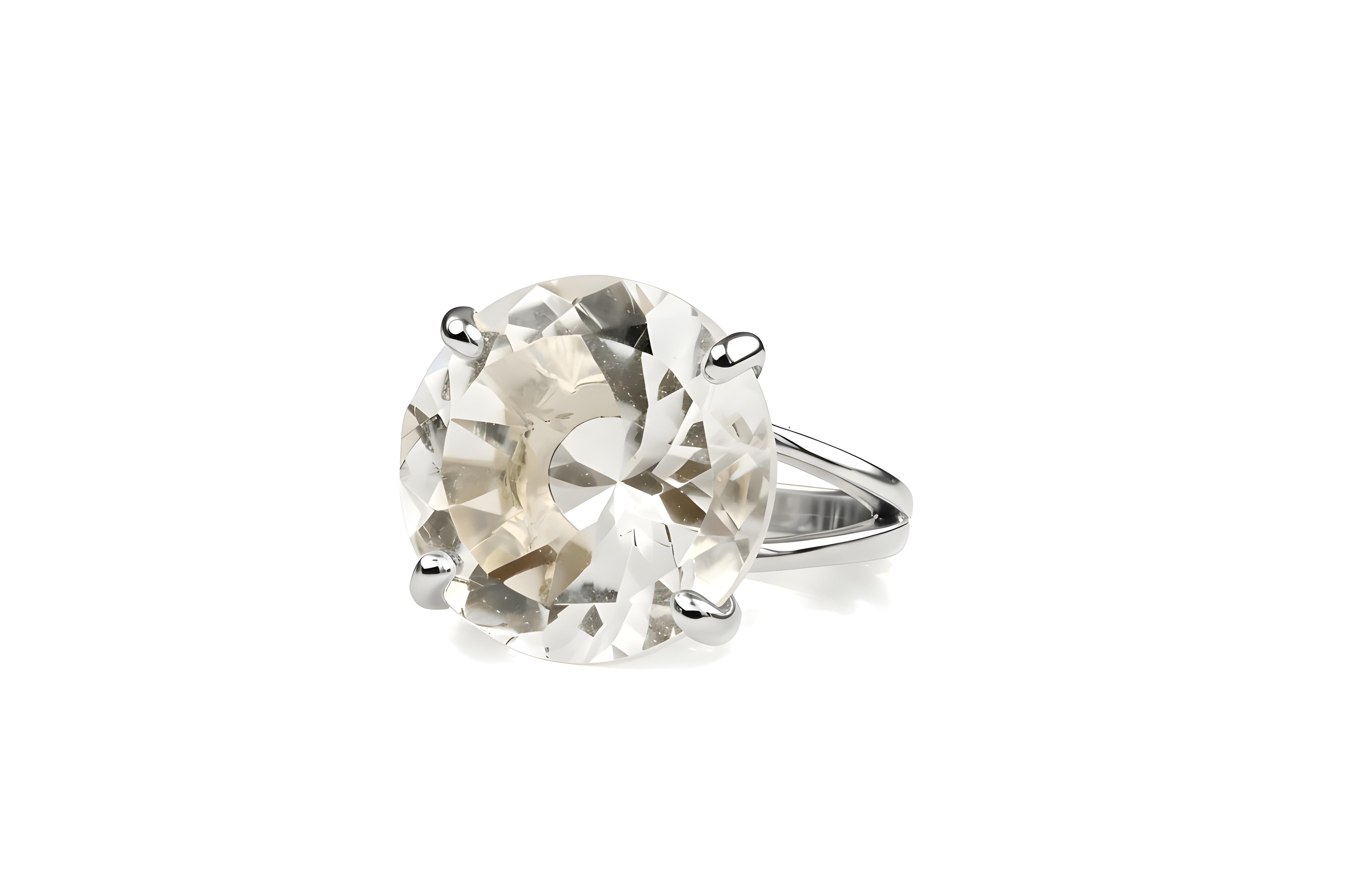 This sterling silver white quartz ring glows with radiant light and clarity. Its faceted round crystal quartz catches every reflection, creating a luminous centerpiece. Handmade with care, the prong-set design highlights the natural stone’s brilliance, offering a sophisticated look for any occasion — elegant, modern, and effortlessly wearable.