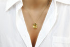 A yellow pendant necklace that showcases an oval-cut Lemon Quartz. This charming piece from our selection of handmade necklaces has a timeless design that you can wear with different ensembles. A classy crystal pendant necklace you can have as a lovely treat for yourself or a loved one on their special day.