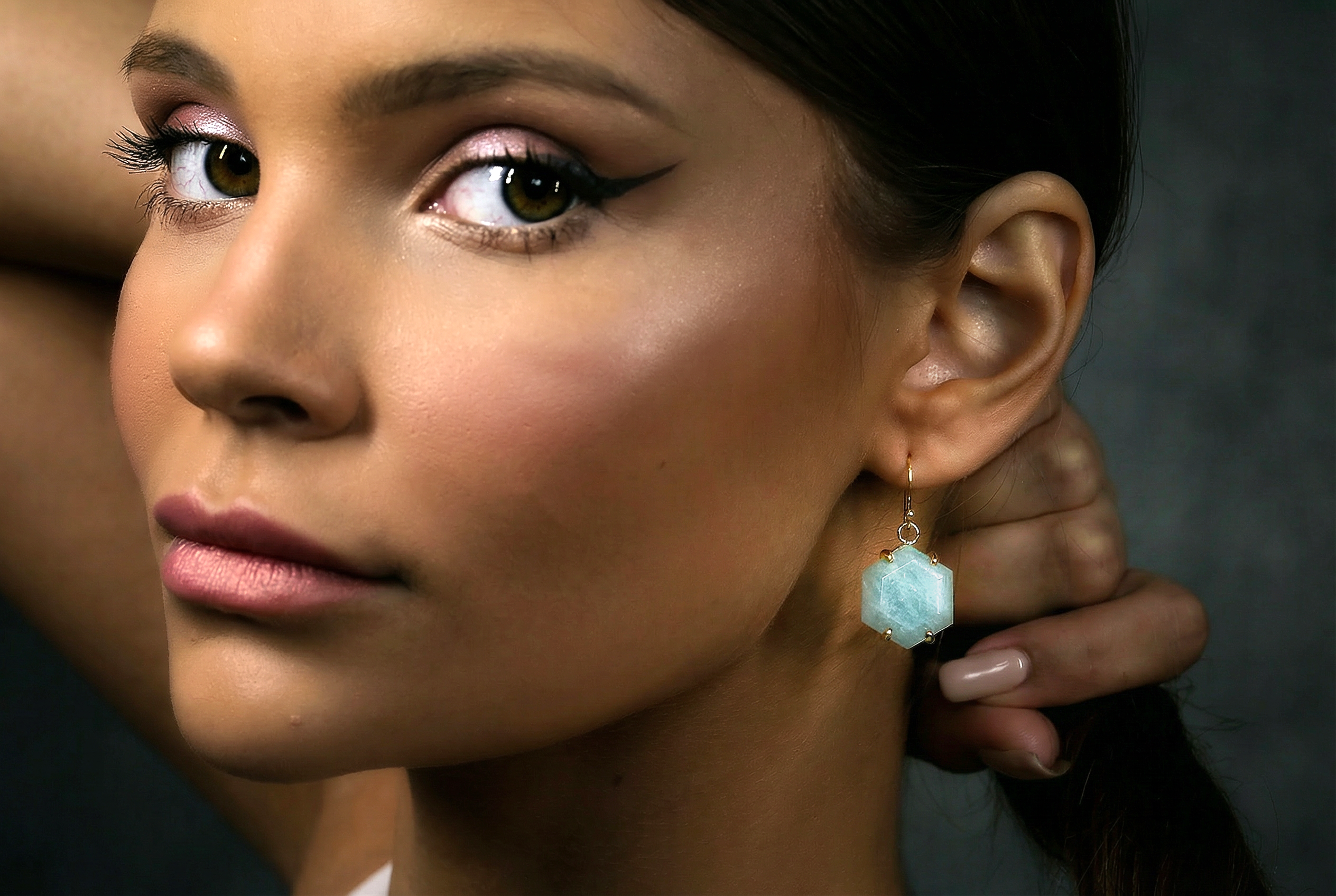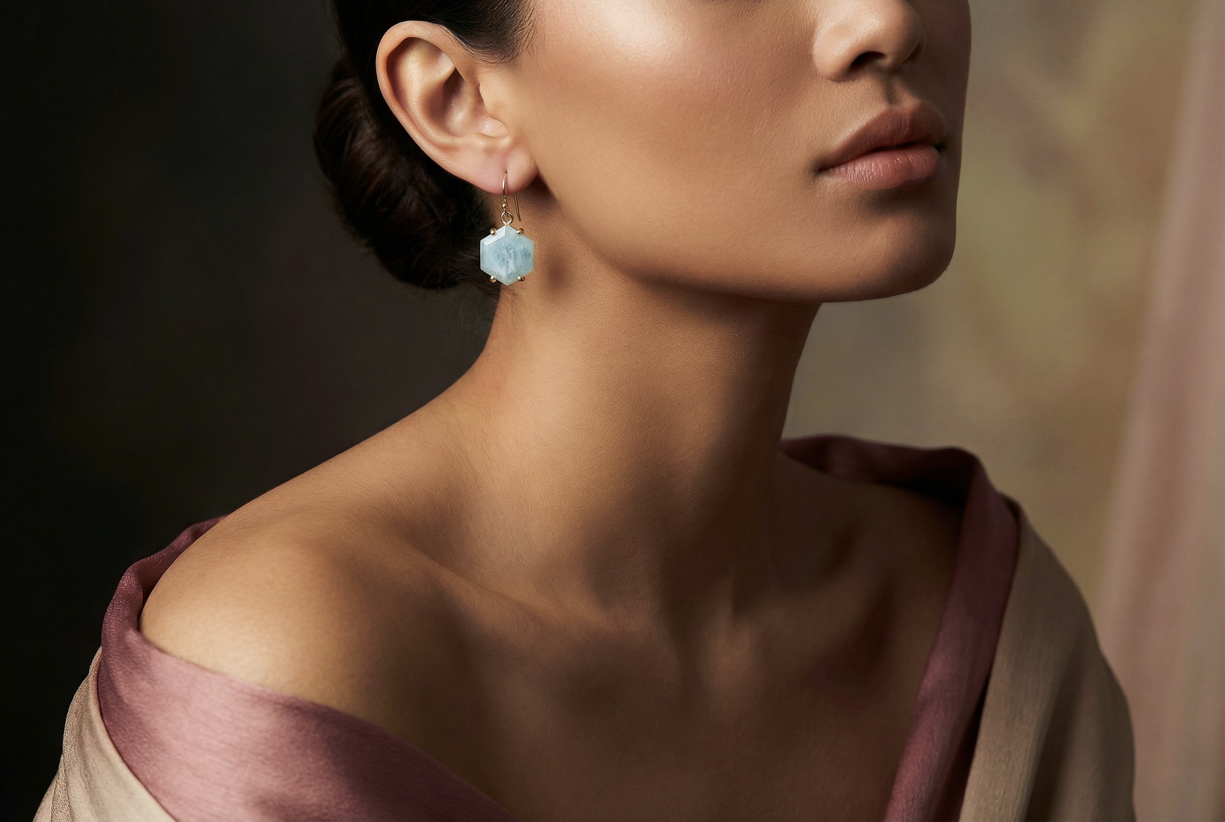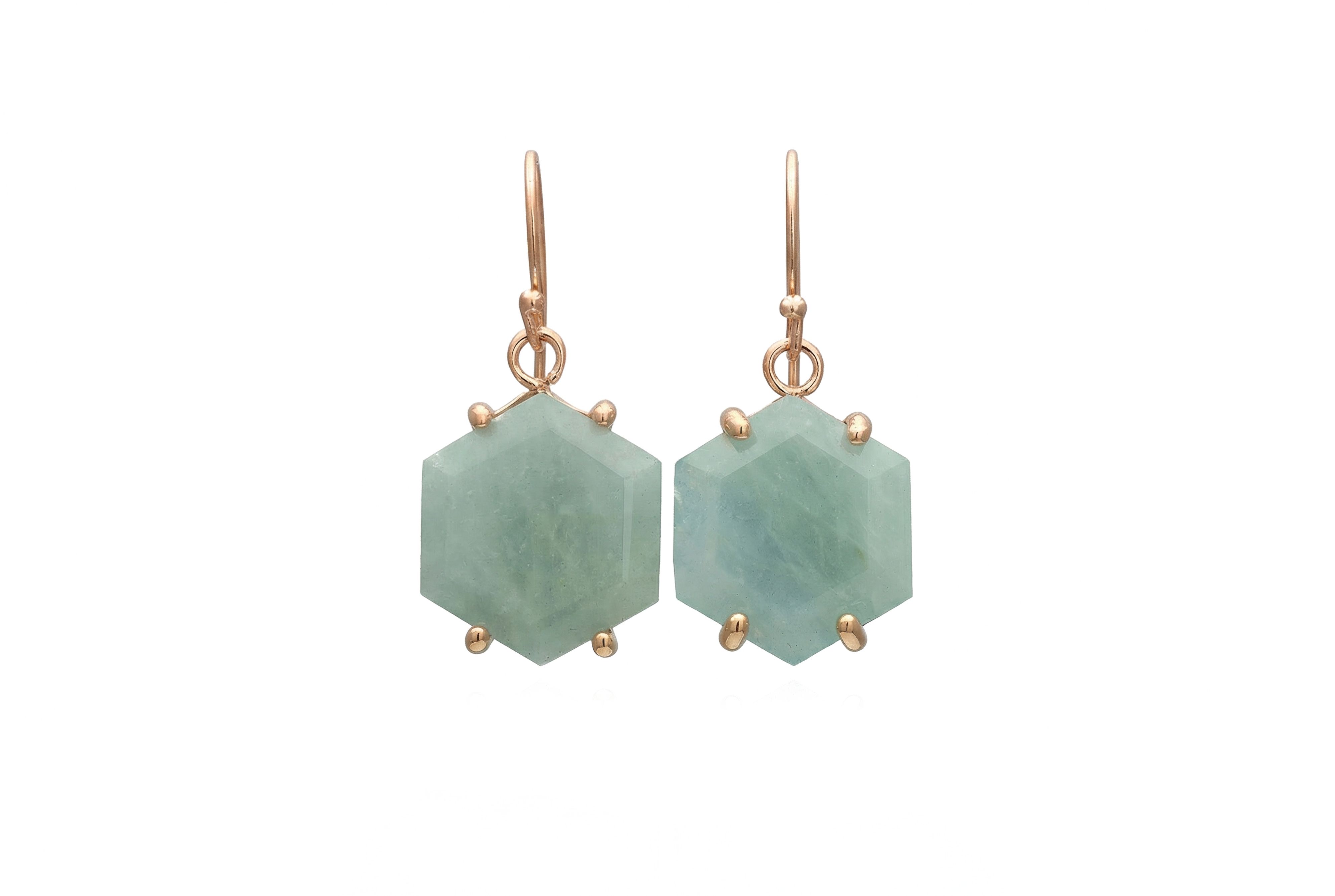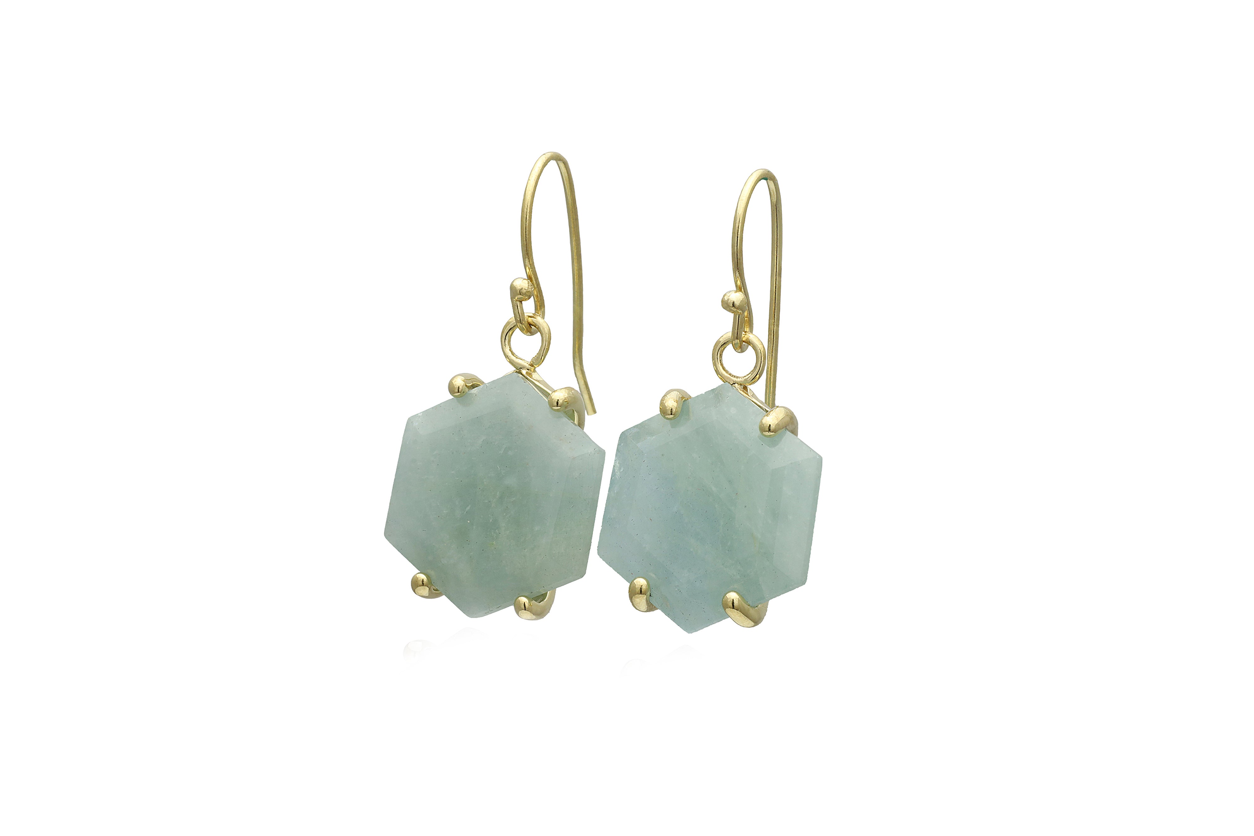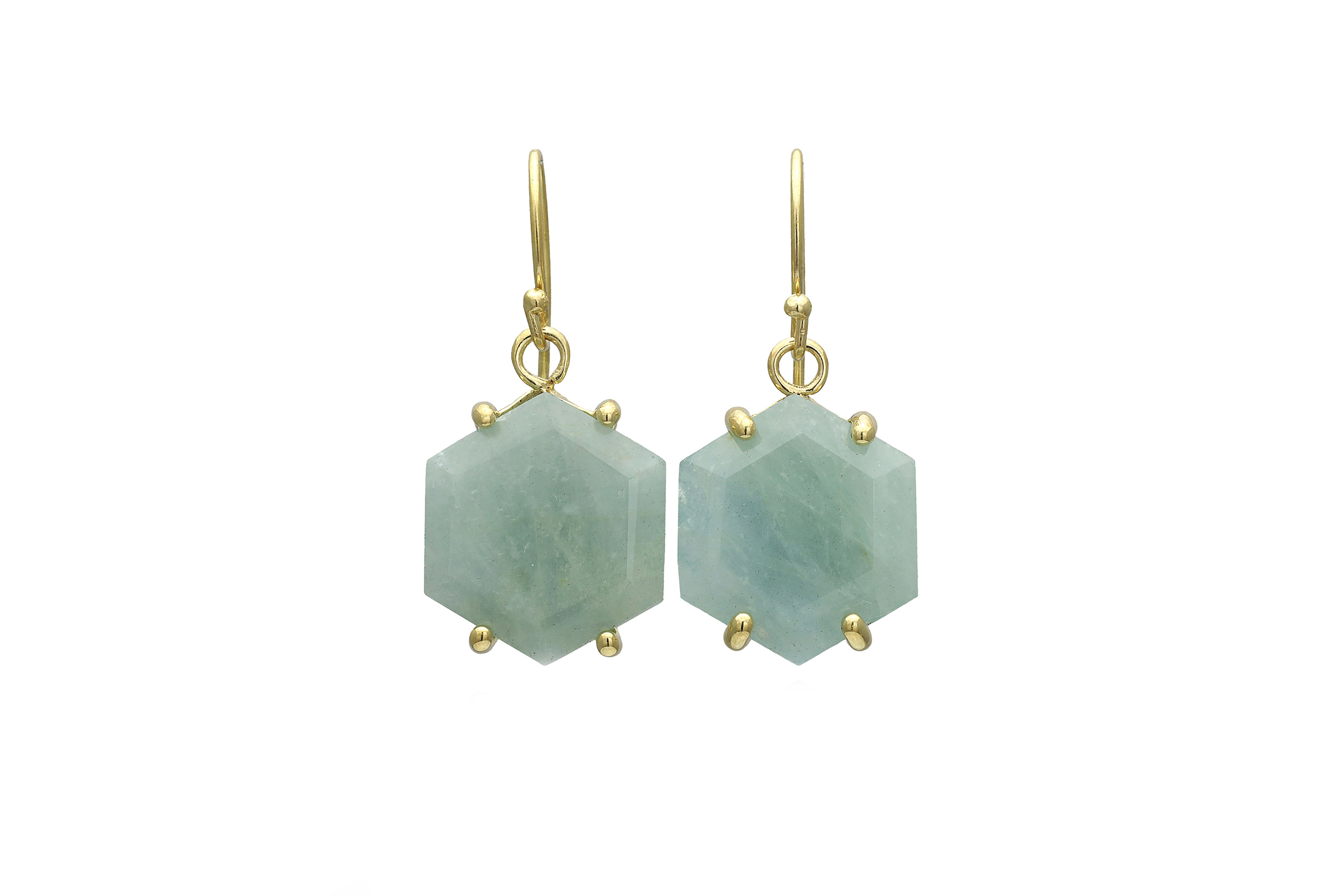 Gold Aquamarine Hexagon Cut Earrings