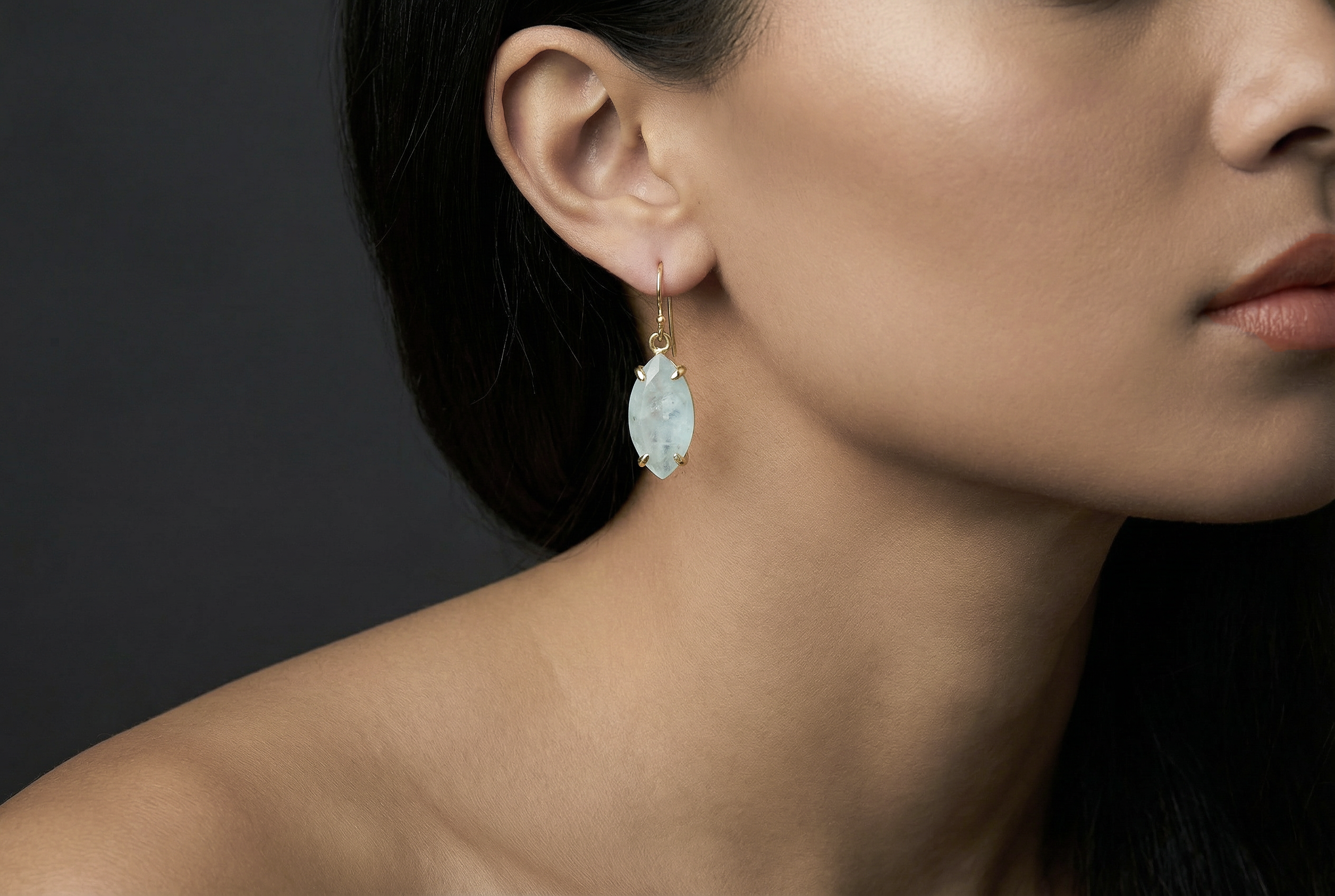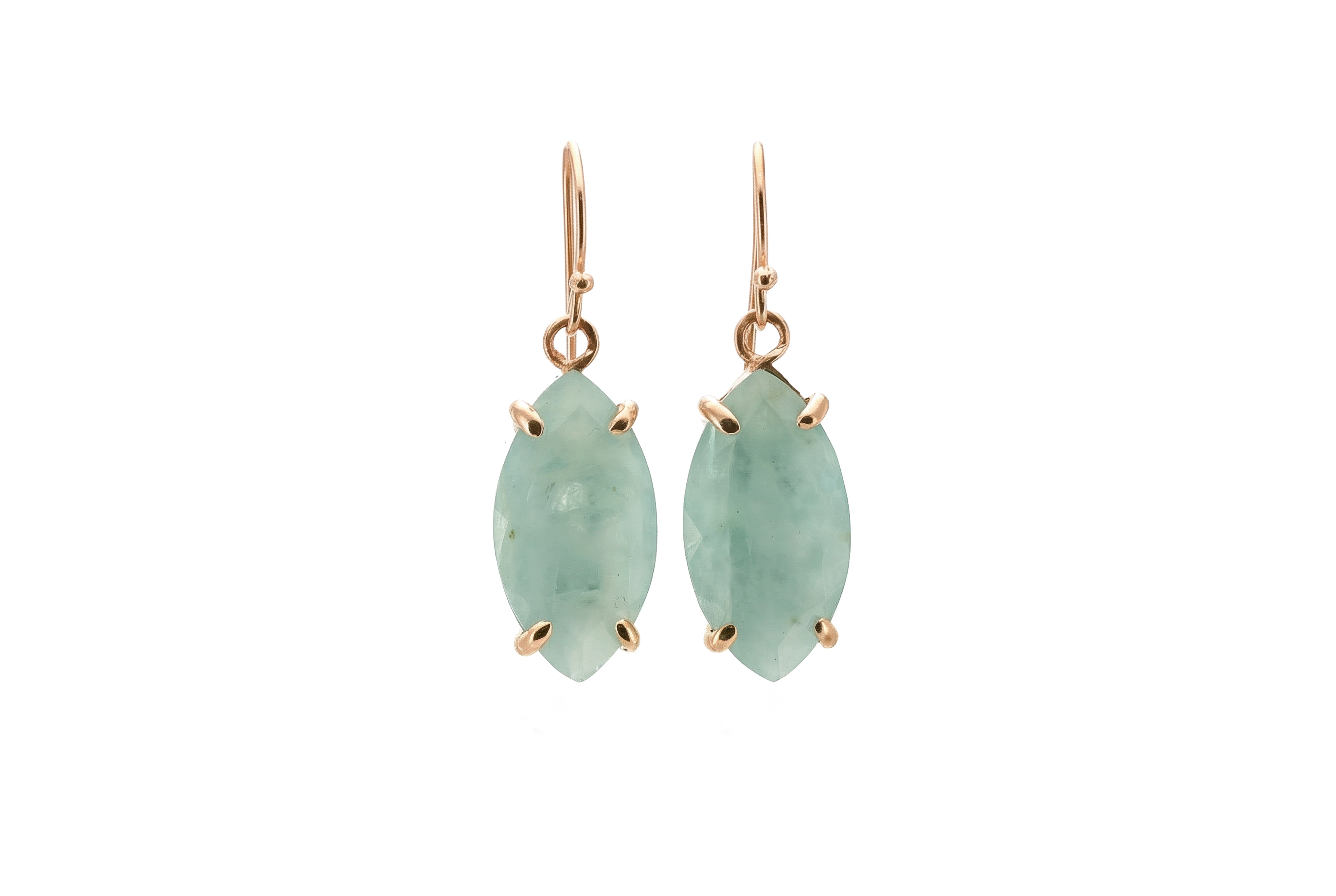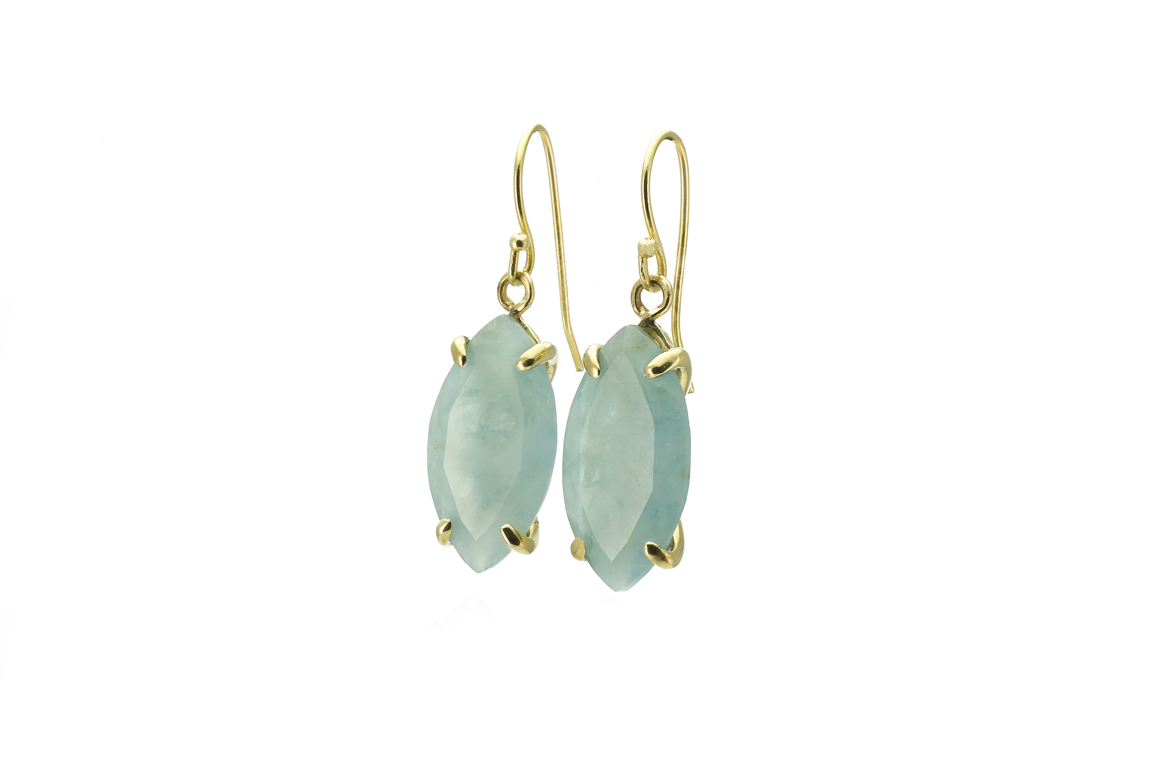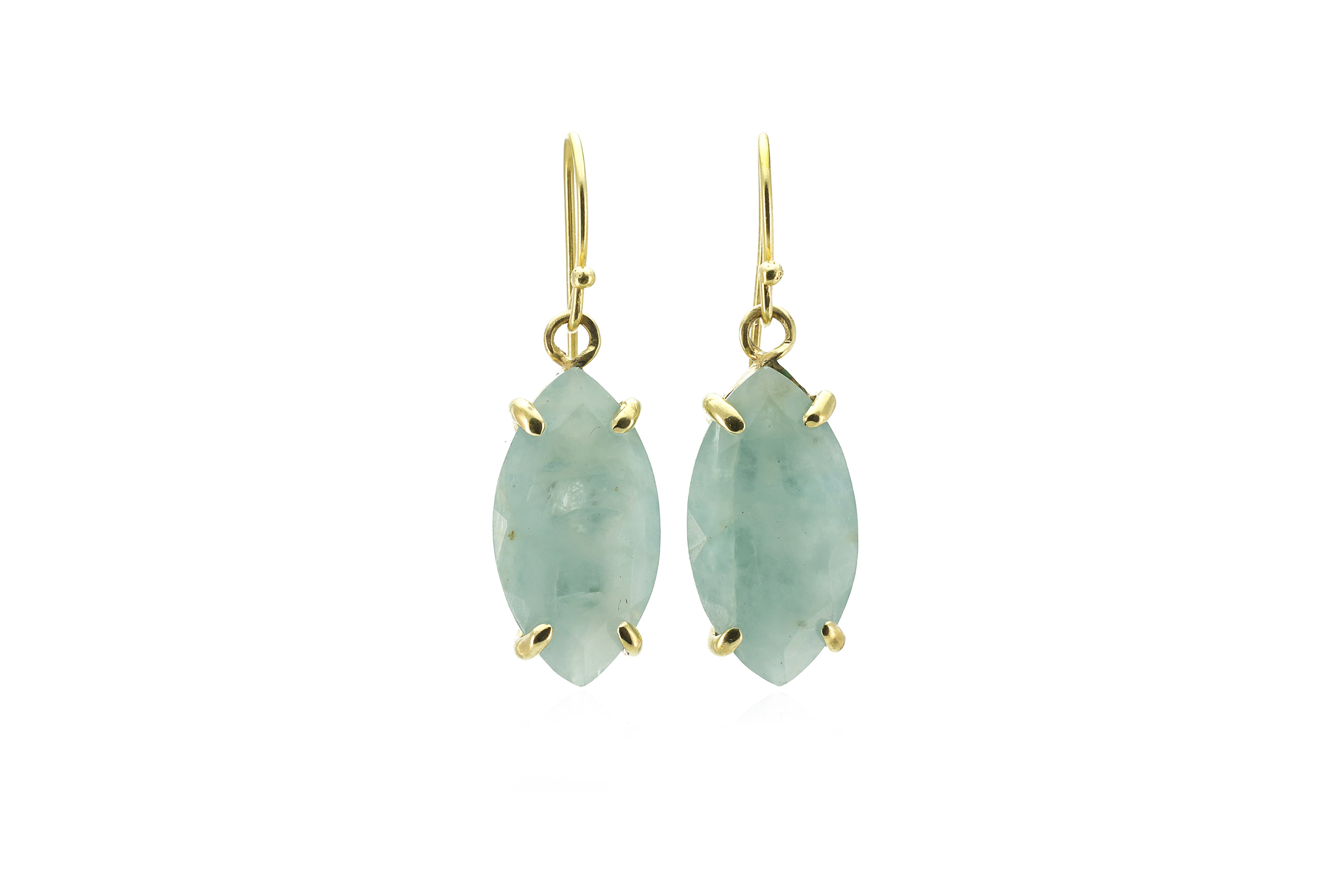 Marquise Cut Aquamarine Gemstone Gold Earrings