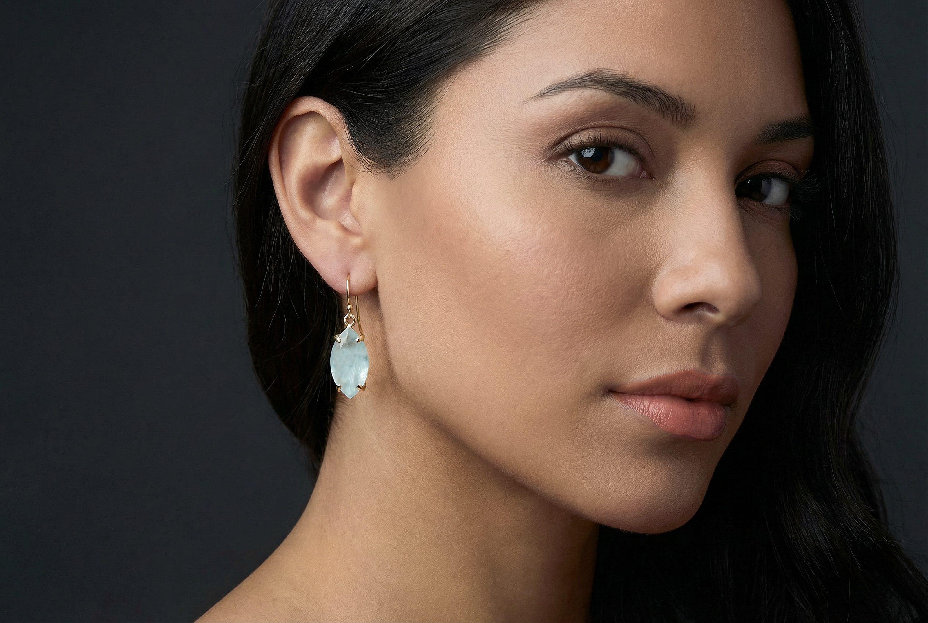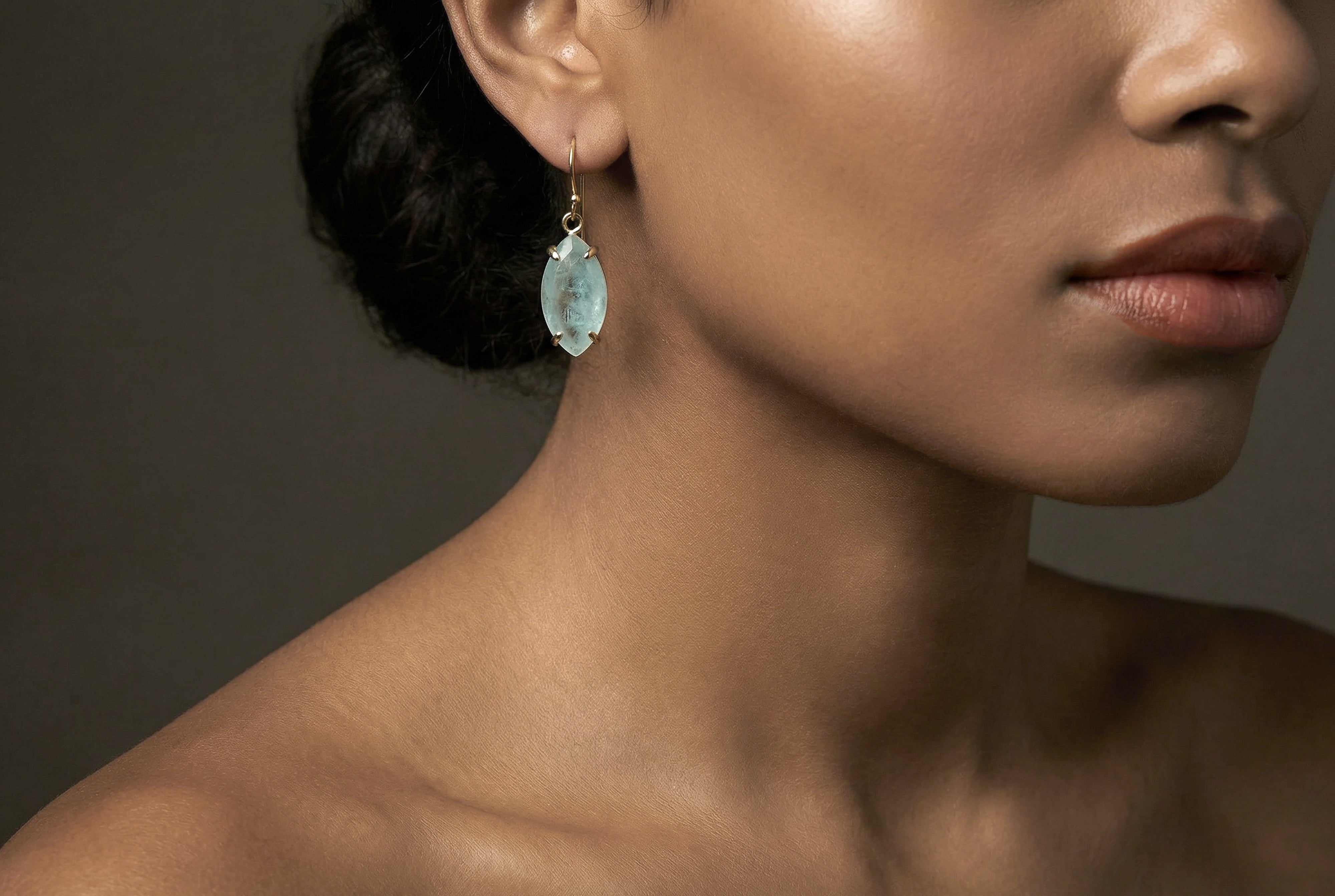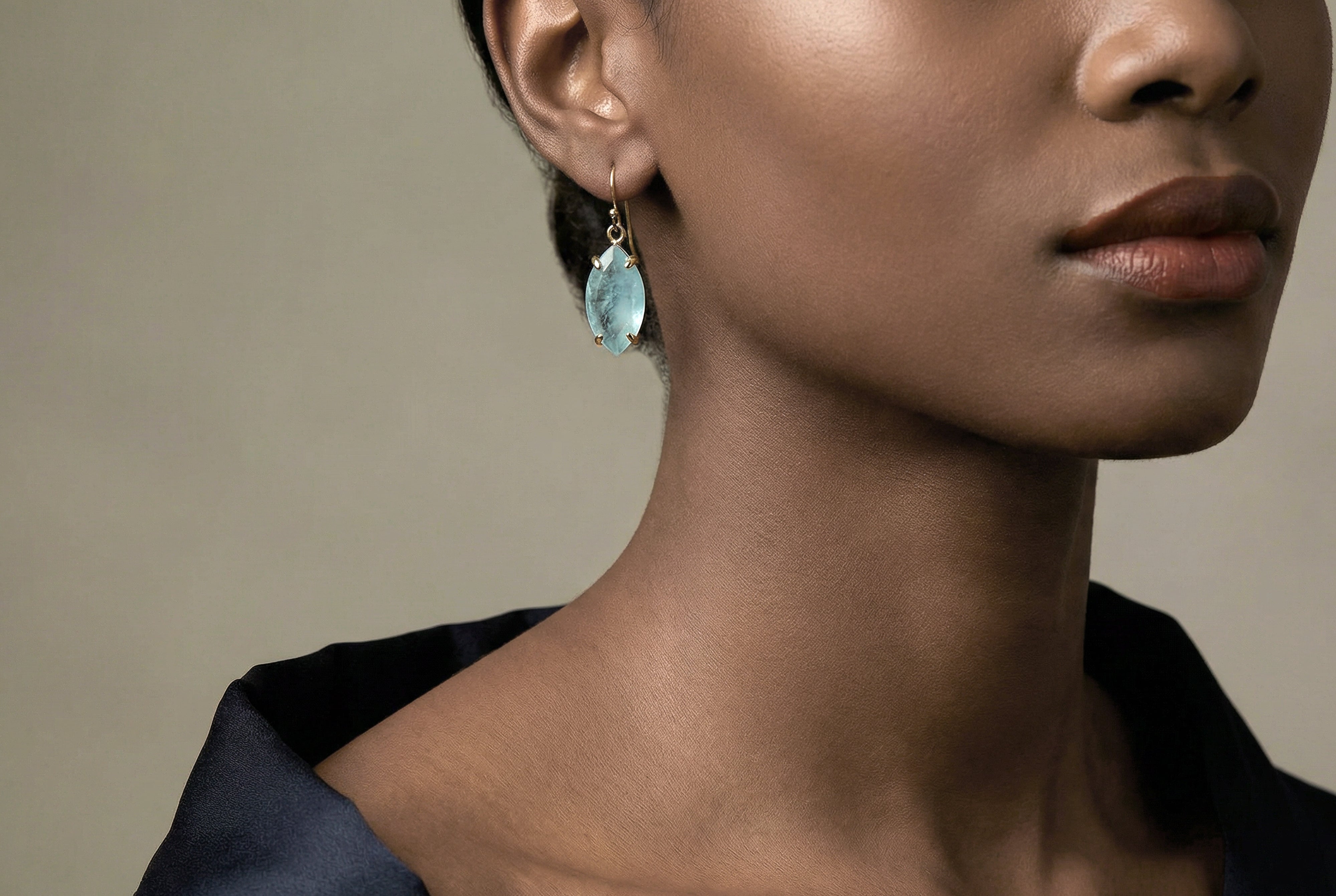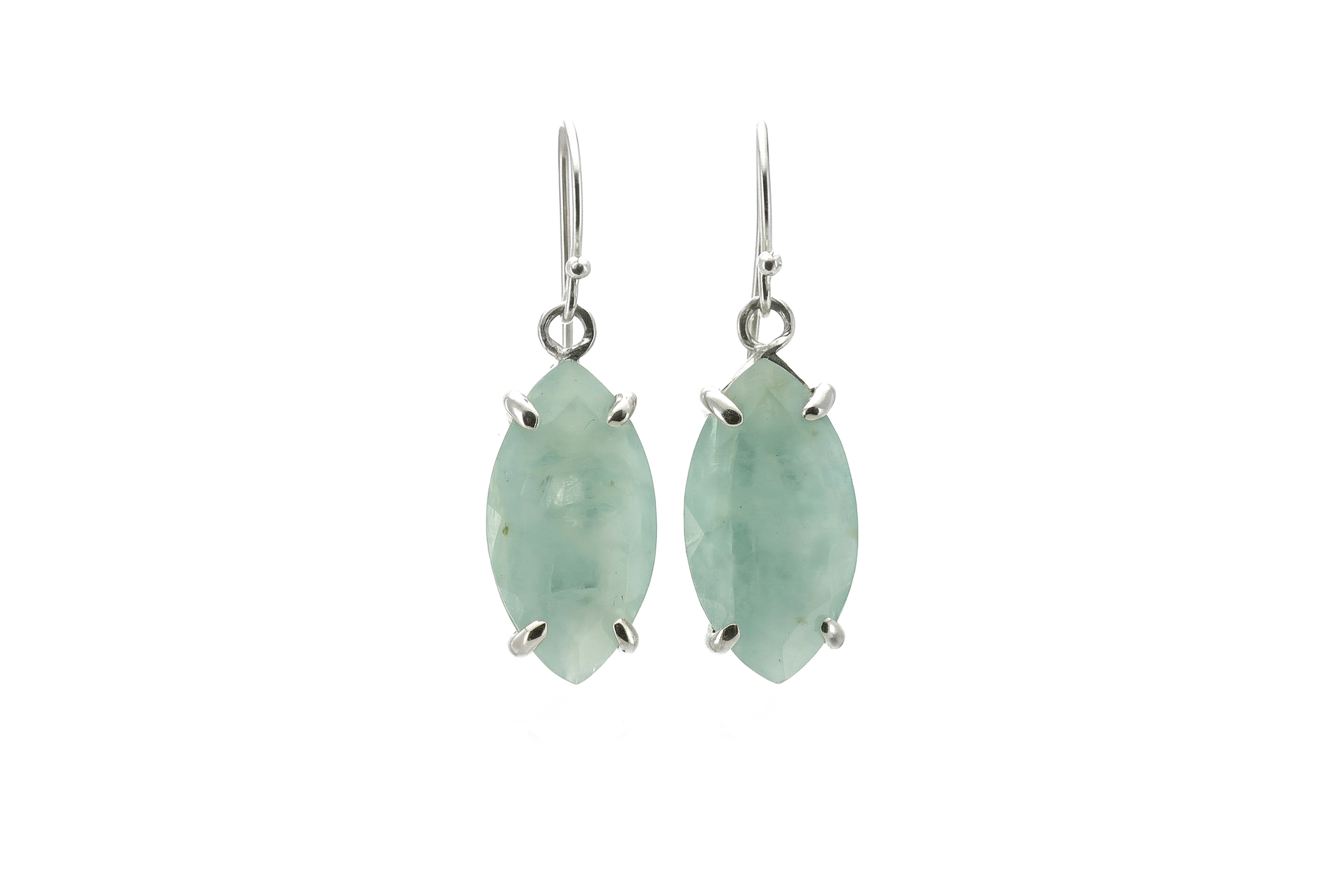 Marquise Cut Aquamarine Gemstone Gold Earrings