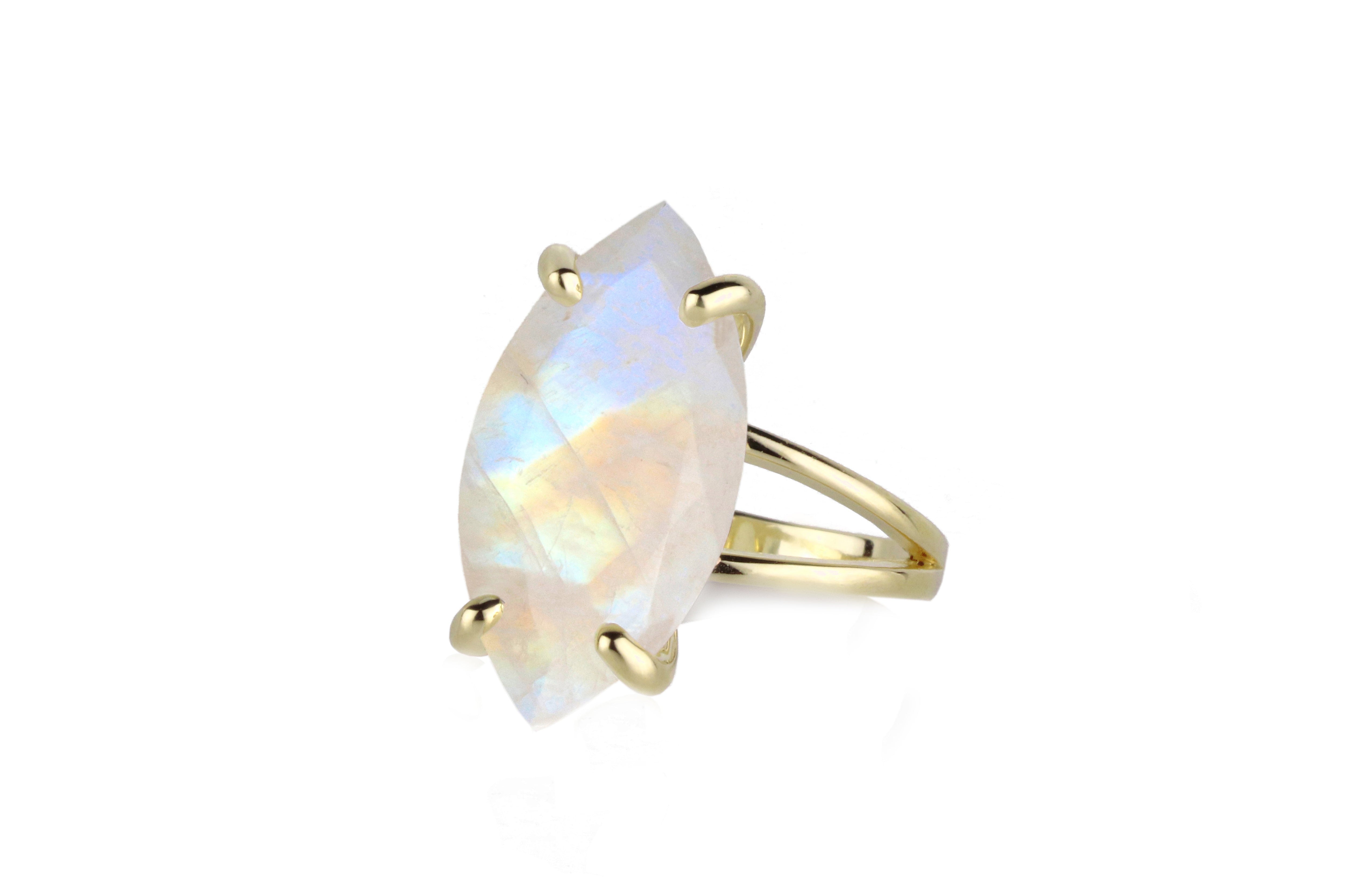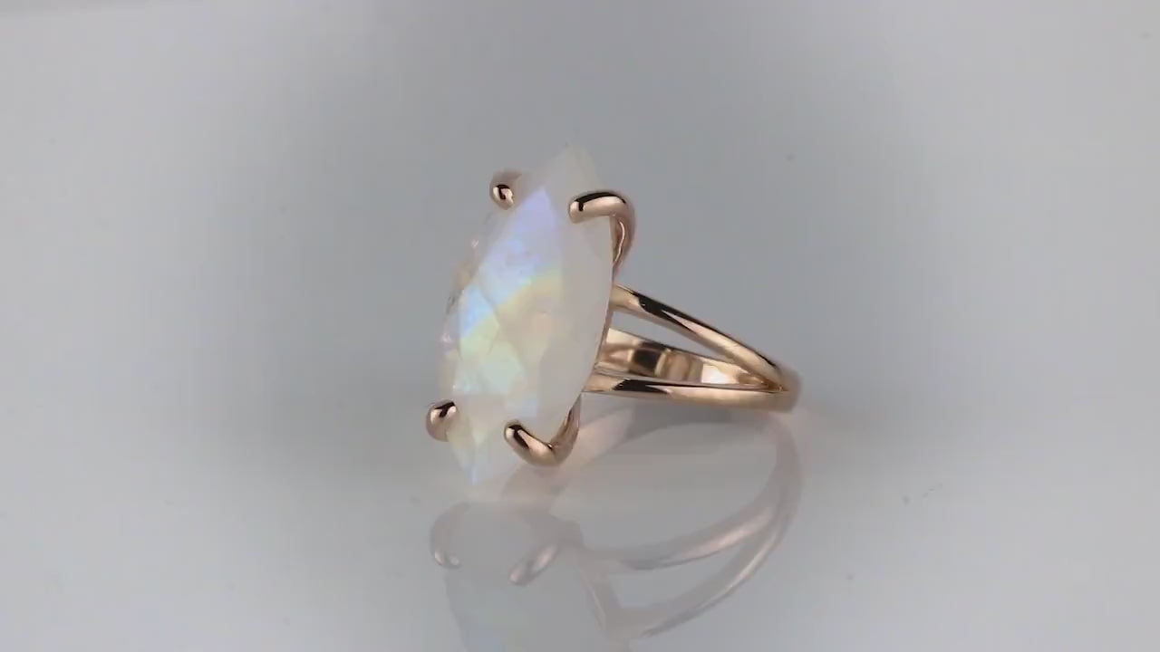 Marquise Rainbow Moonstone Silver Ring
