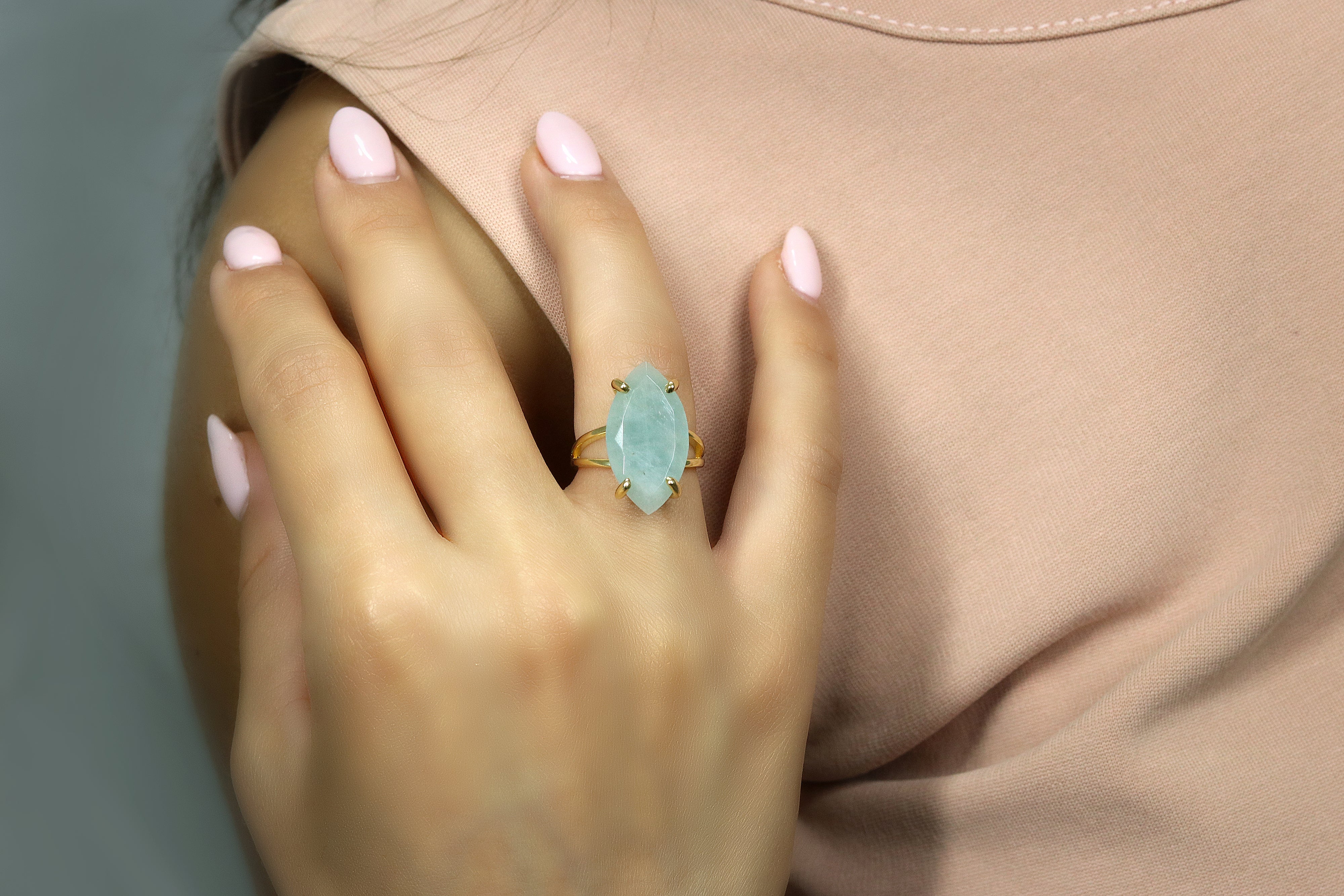 Rose Gold Statement Aquamarine Ring