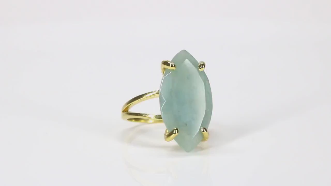 This rose gold aquamarine ring features a stunning marquise-cut gemstone in a soft ocean-blue hue. The elegant, elongated shape sits beautifully on the hand, while the warm rose gold finish adds a romantic touch. Perfect for March birthdays or as a standout statement piece, this handmade ring combines refined craftsmanship with natural gemstone beauty.