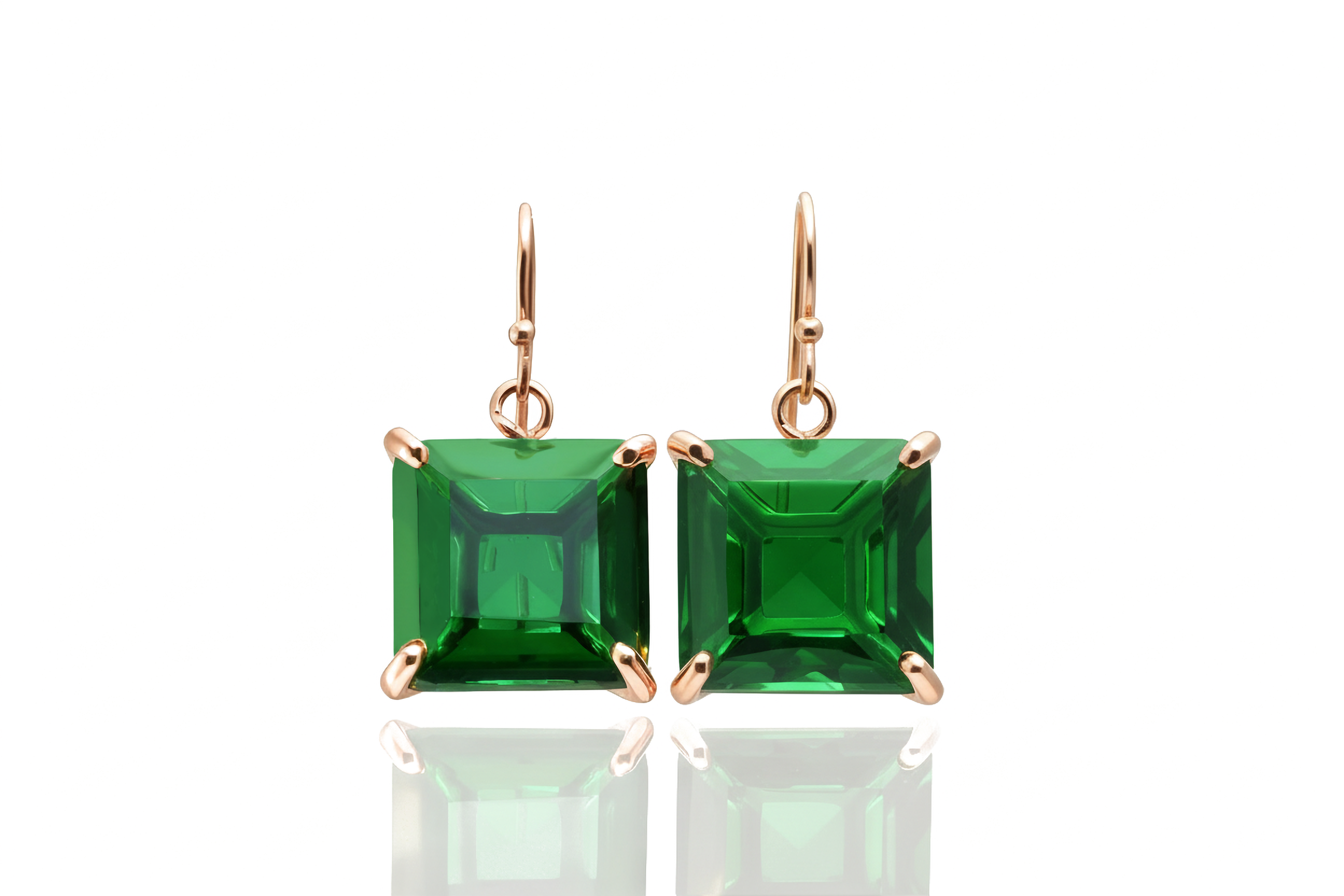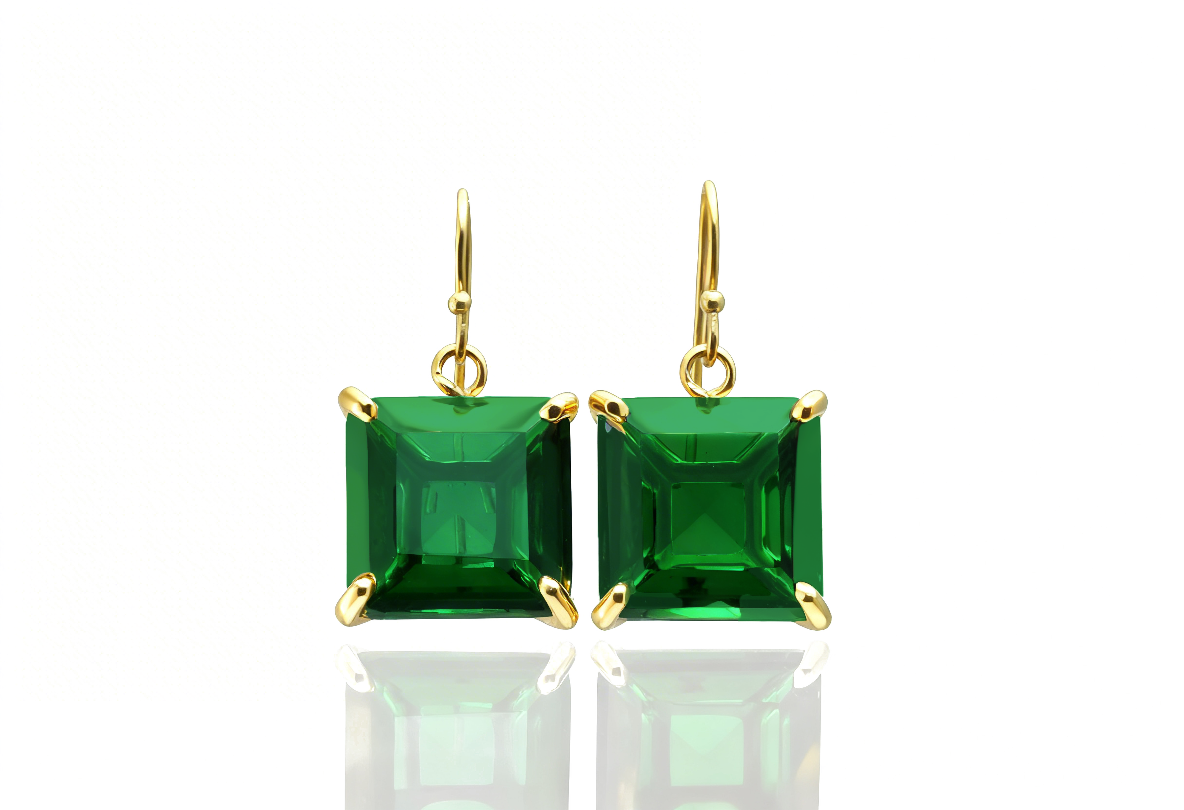 14k Gold Filled Dangle Emerald Square Earrings