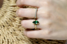Enjoy styling the everlasting elegance of this marquise ring featuring an Emerald stone set in prongs. A vibrant piece of Emerald jewelry for women you can wear as a gorgeous highlight to your stack or a unique engagement ring, promise ring or gift ring for her.