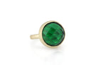 This Gold Bezel Emerald Ring features a stunning round 16mm emerald gemstone in a sleek bezel setting. Crafted in gold, it serves as a bold statement piece or a stackable addition to your jewelry collection. Representing May’s birthstone, this semiprecious ring offers vibrant green hues that make it a timeless and meaningful accessory.