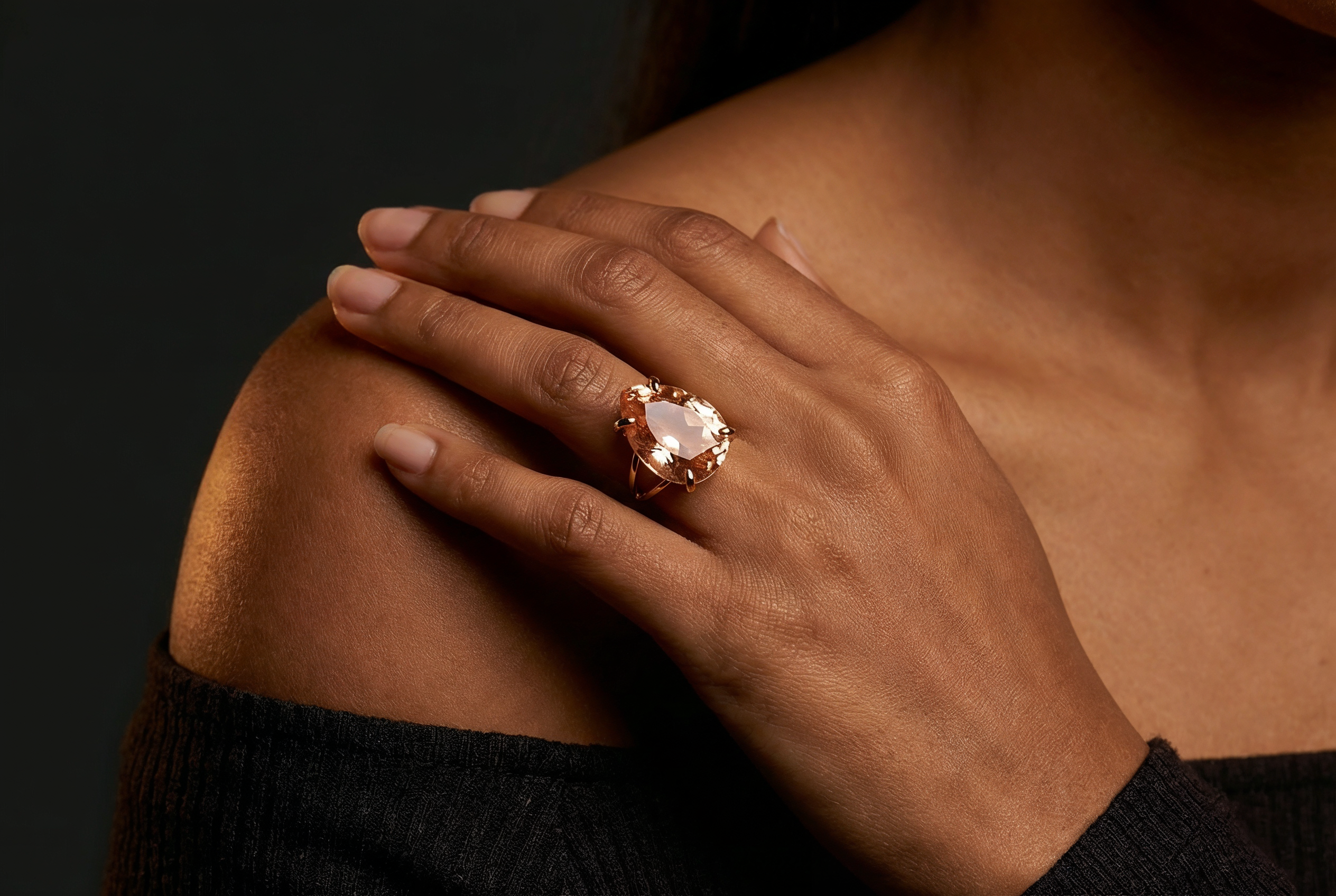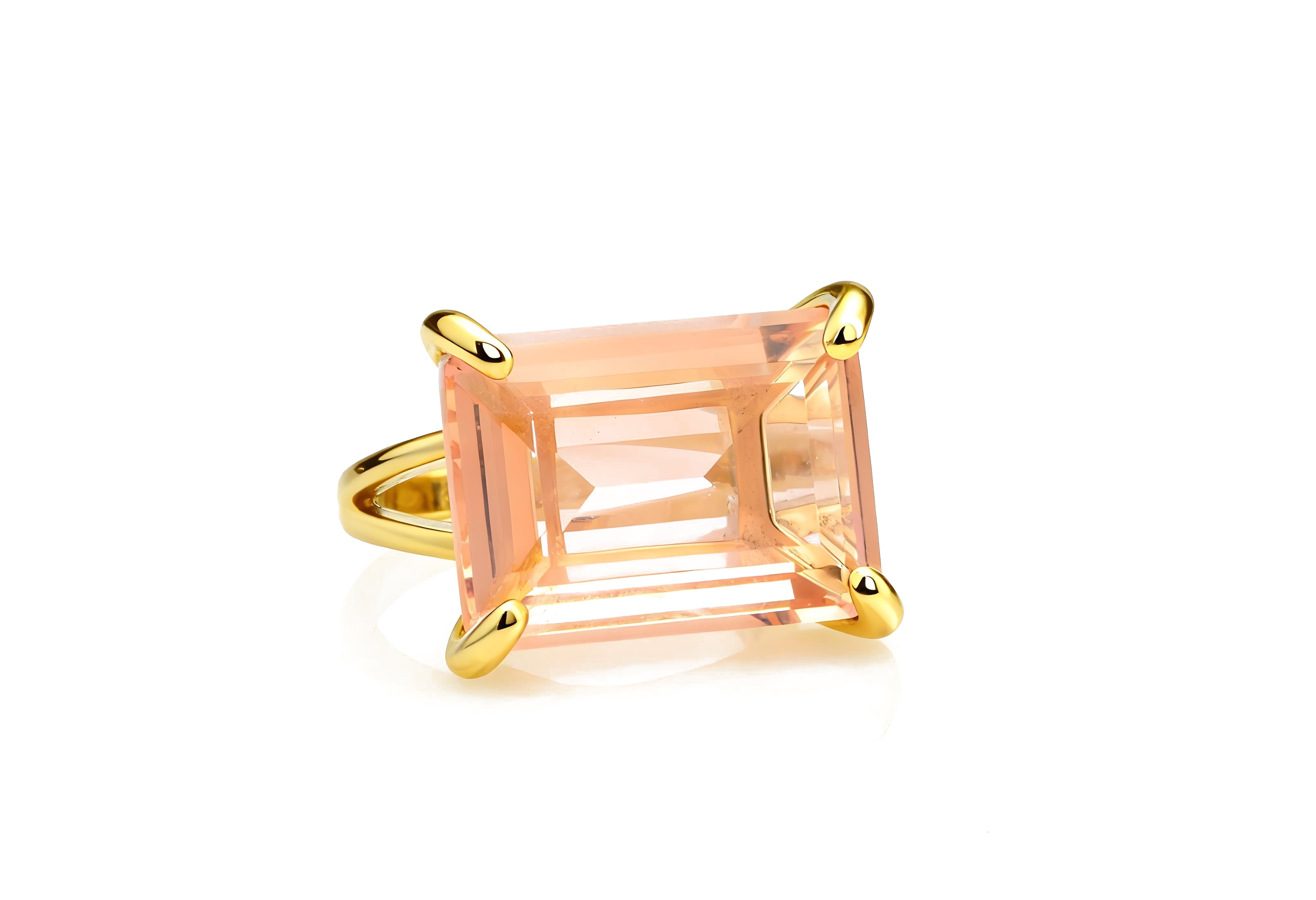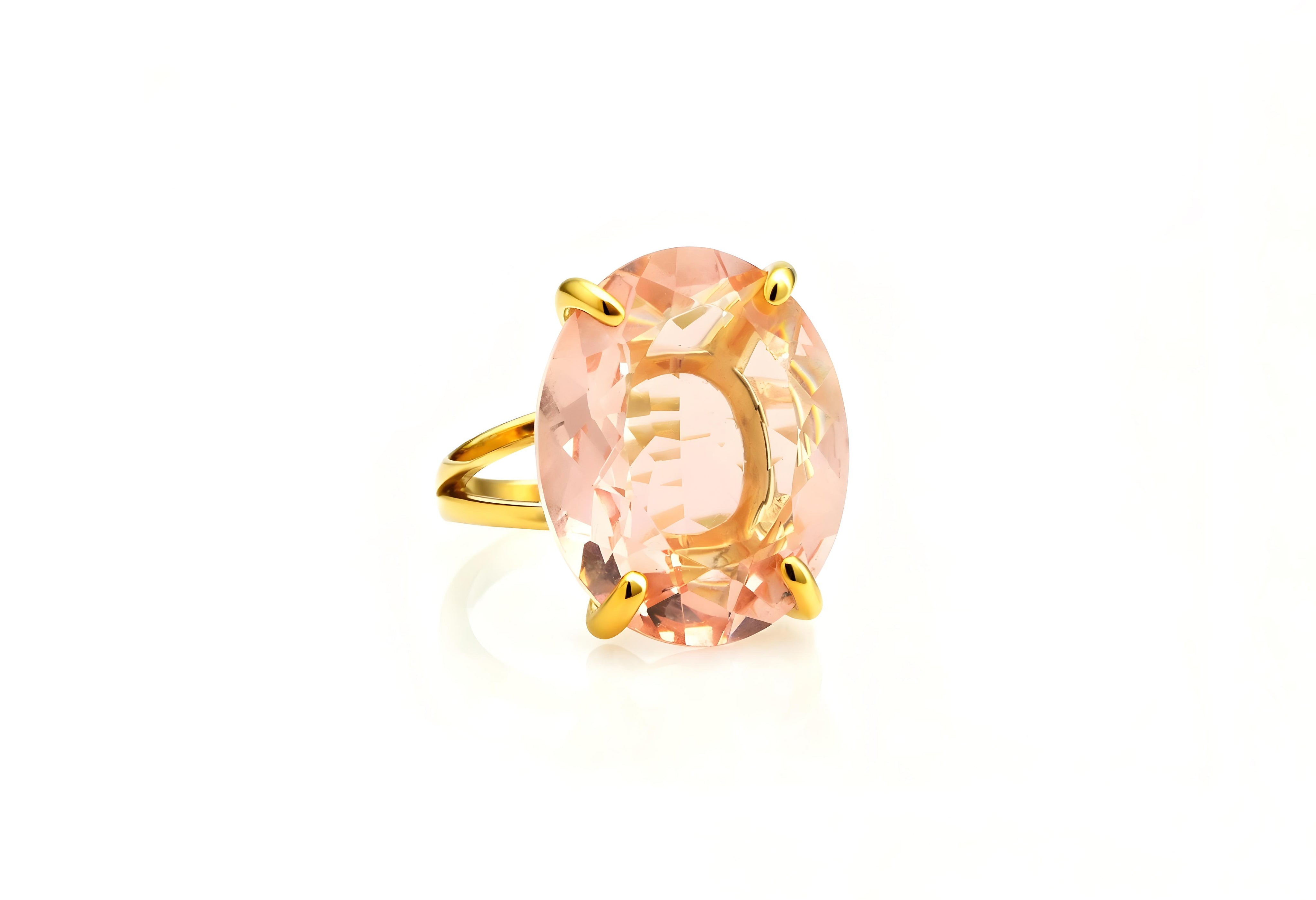 Amazing Peach Morganite Stone Gold Ring
