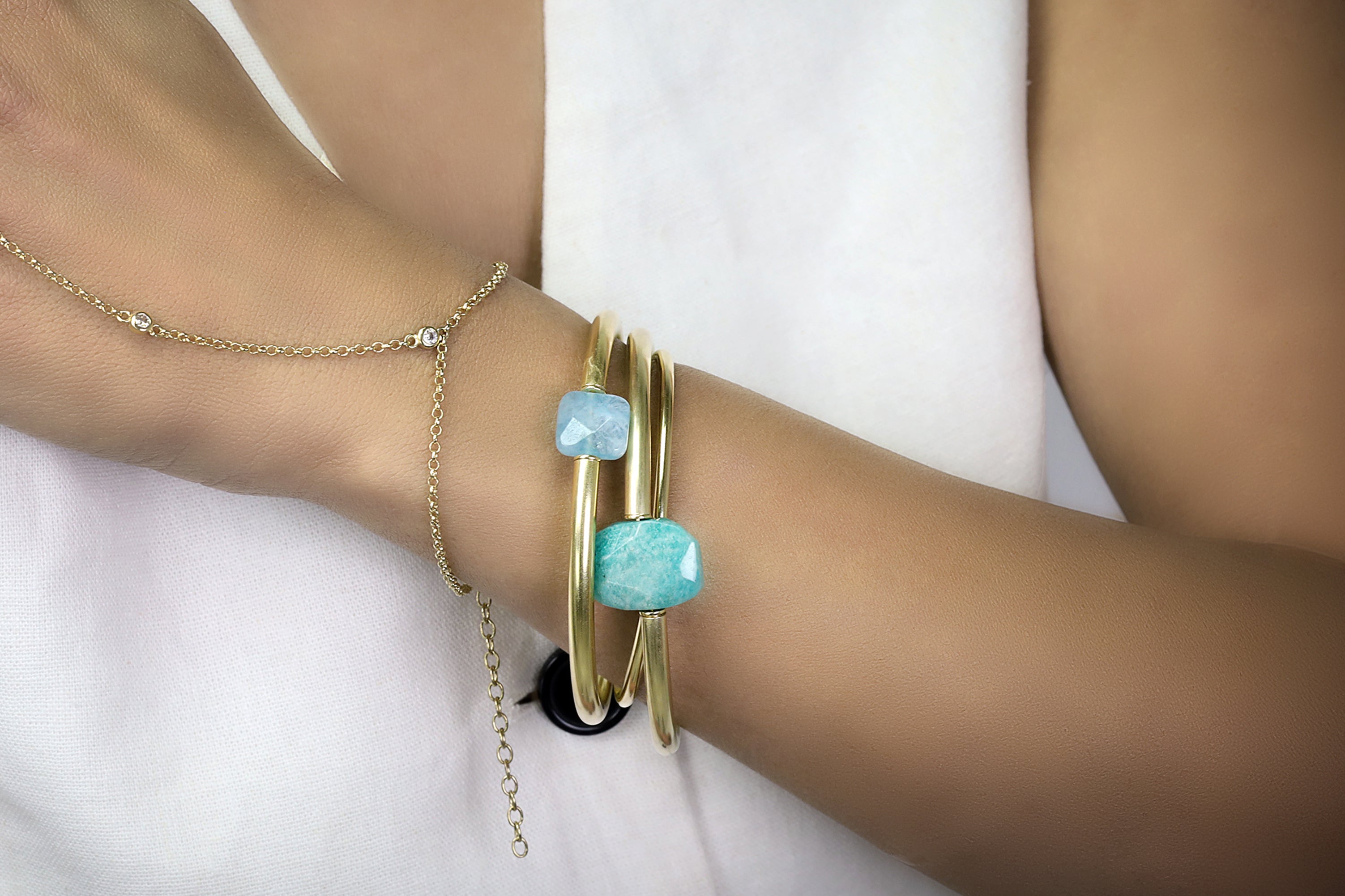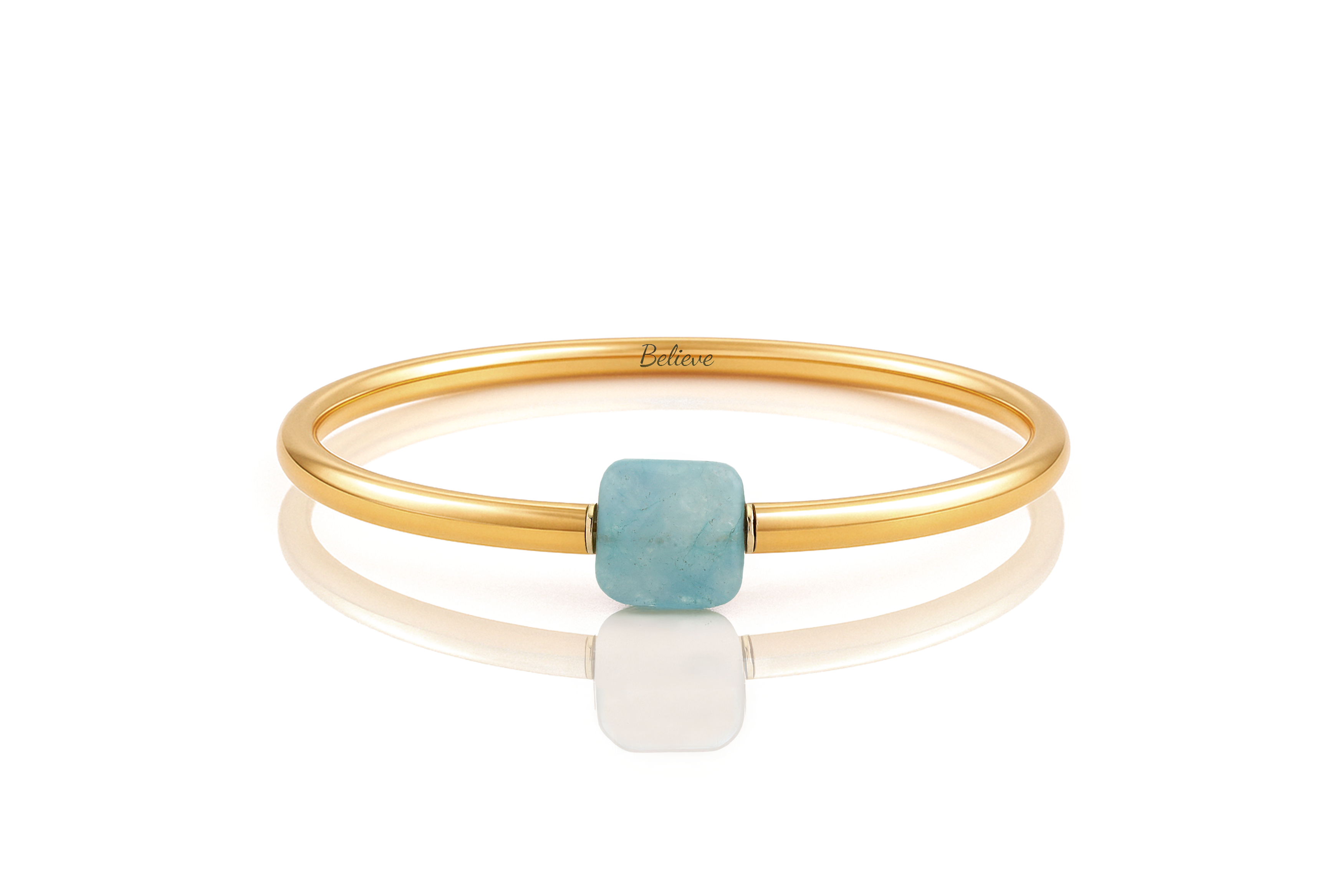 Easy to slip on and crafted for stacking, this closed bracelet pairs minimalist elegance with gentle energy. Aqua quartz is associated with clarity and tranquility, making this a meaningful gift or a personal piece to elevate your daily wear.