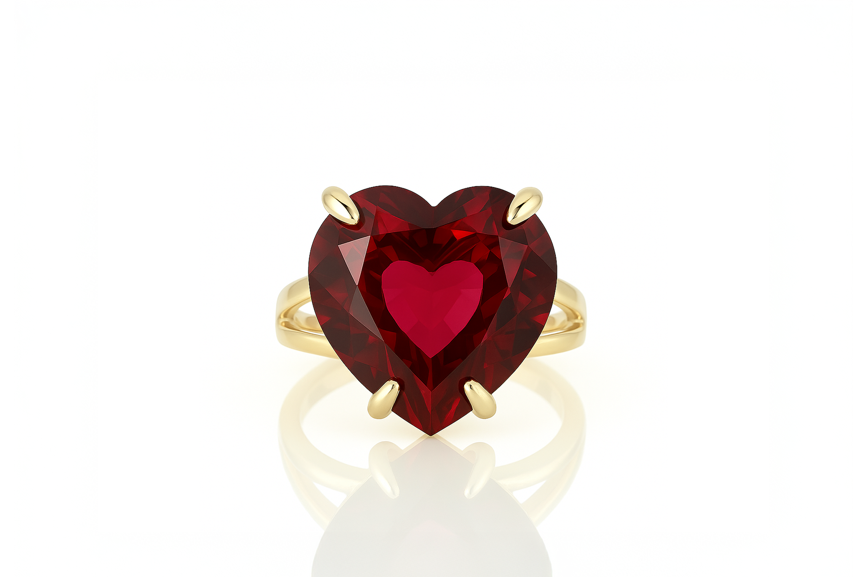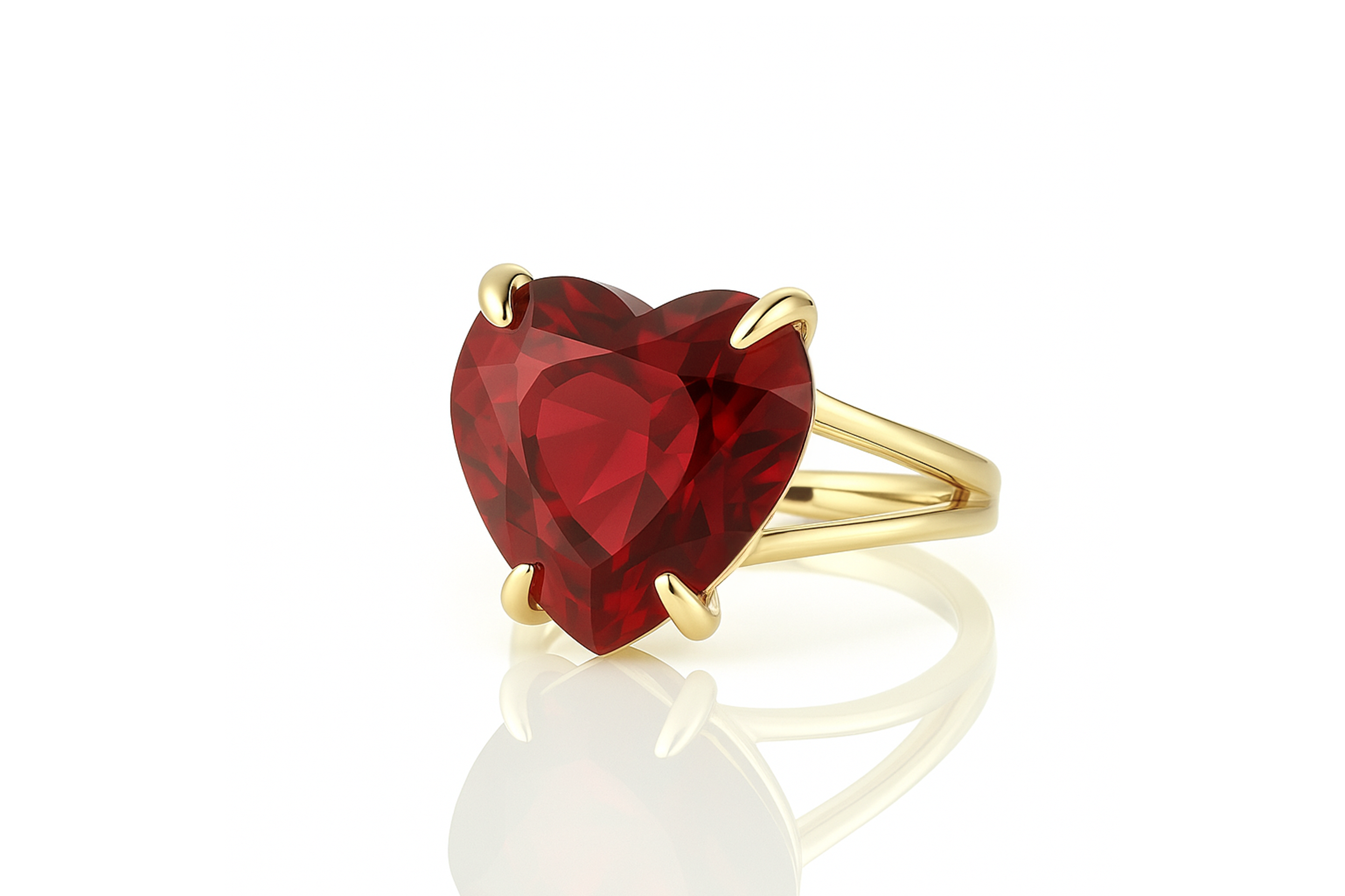This radiant gold filled ring features a vivid heart-cut pink tourmaline set in a secure four-prong setting. Its glowing reddish-pink hue sparkles with brilliance, making it a bold, passionate piece for those who love standout jewelry.