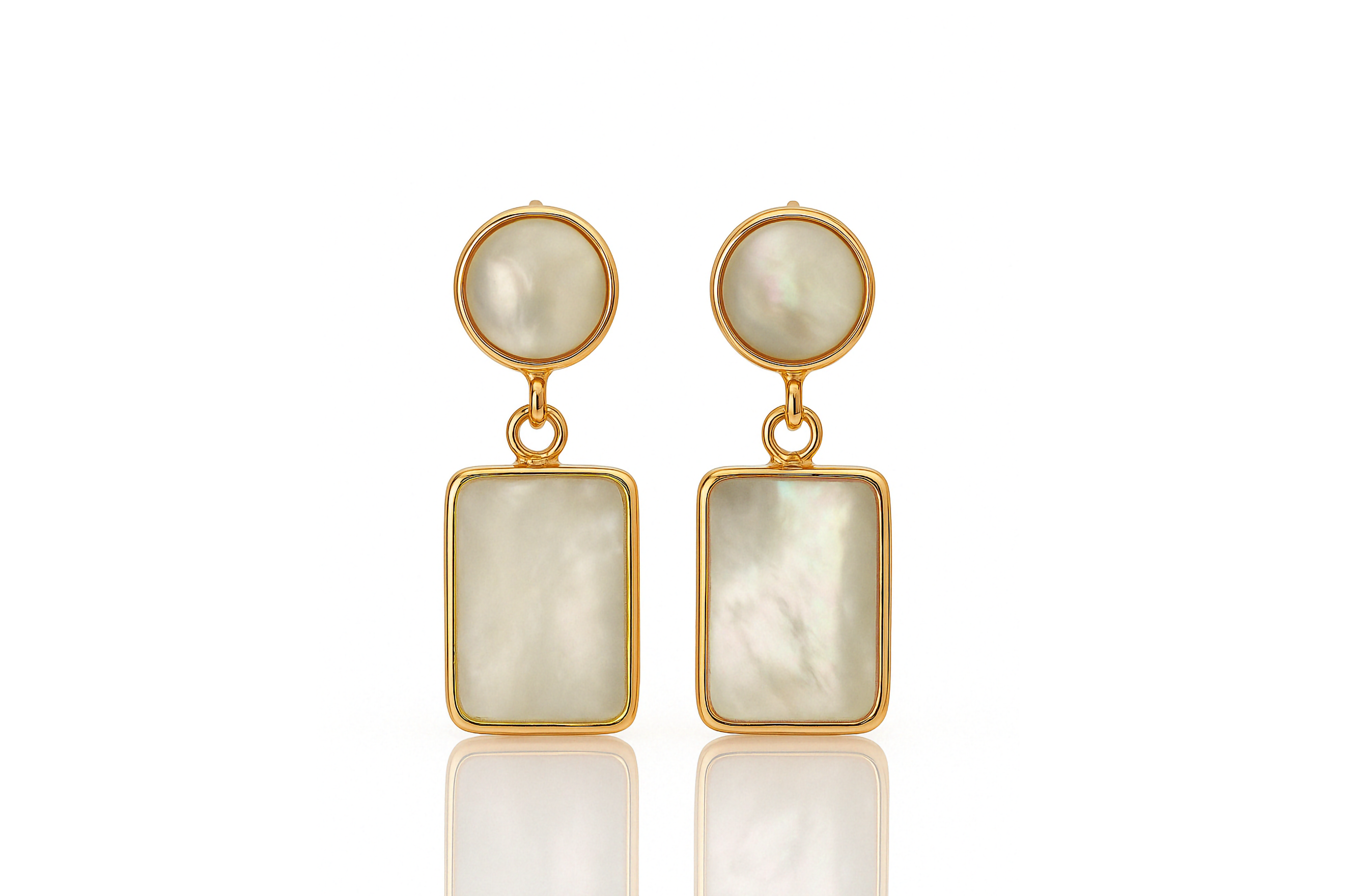 Mother of Pearl Round & Rectangle Dangle Earrings