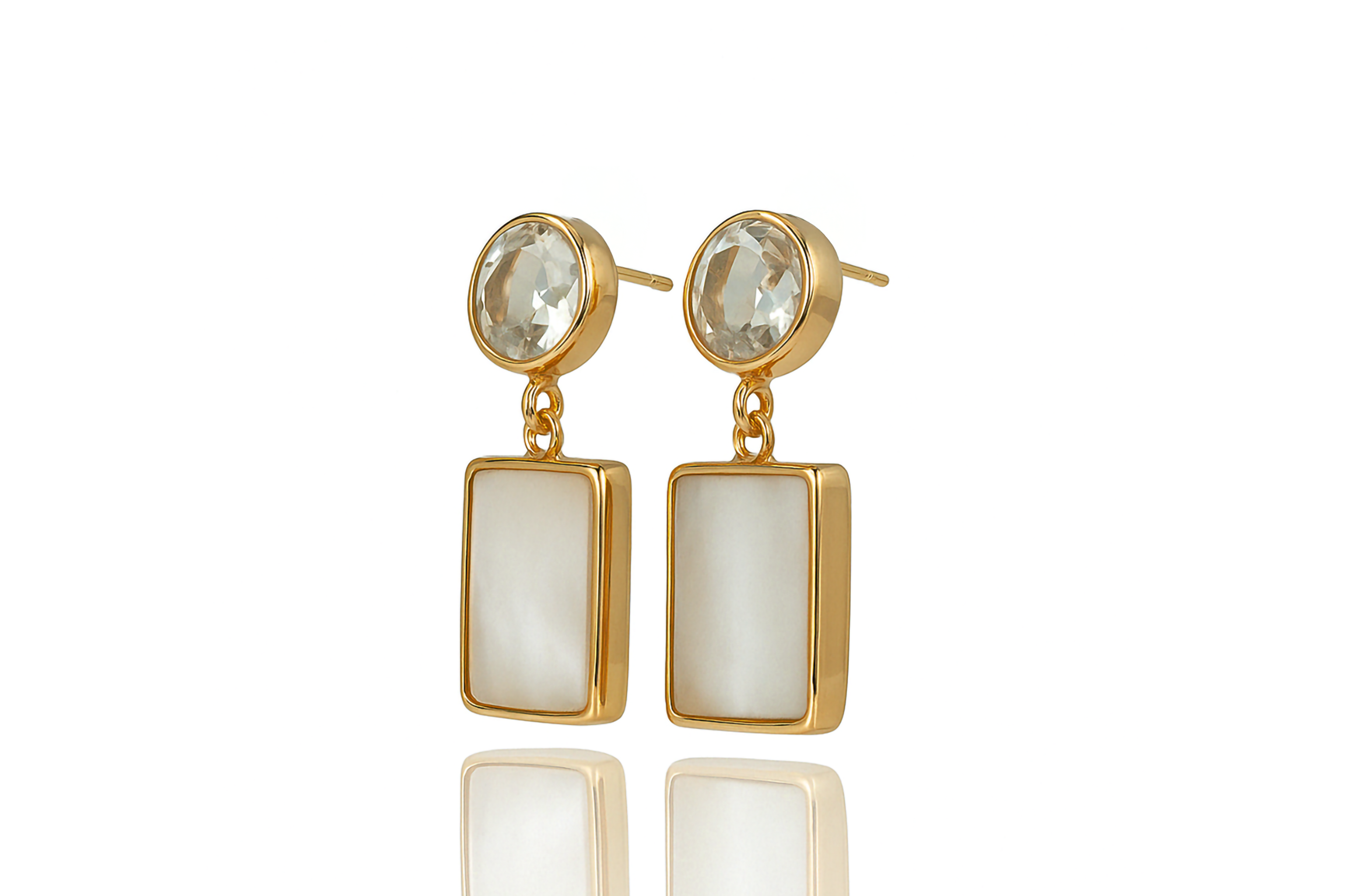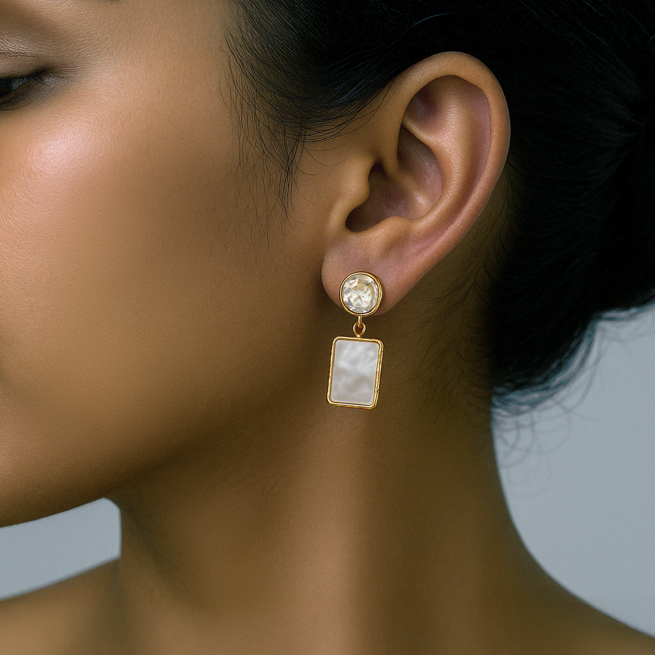 Mother of Pearl Round & Rectangle Dangle Earrings