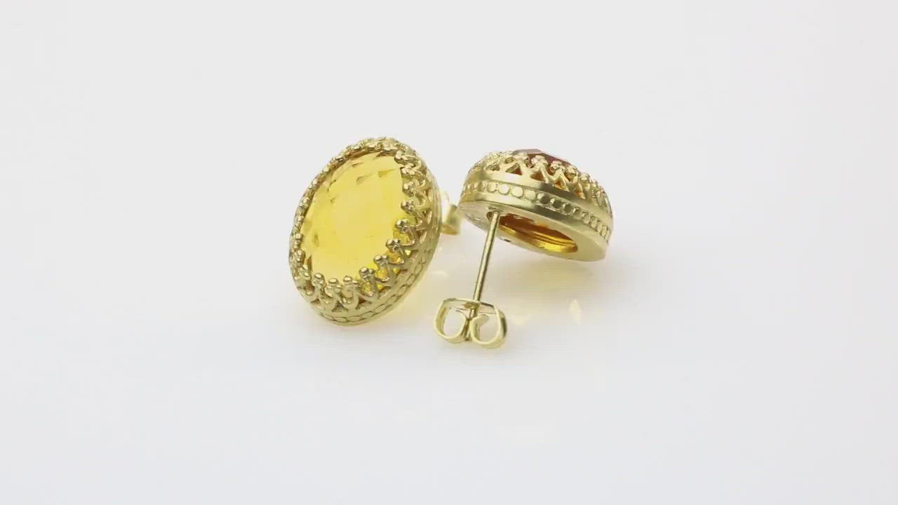 Vibrant Citrine stone earrings for women, crafted by Anemone with 14k gold filled setting. These oval earrings flaunt gorgeous Citrine. Oval earrings that will bring that warm glow to your ensemble or bring happiness once given to a loved one.