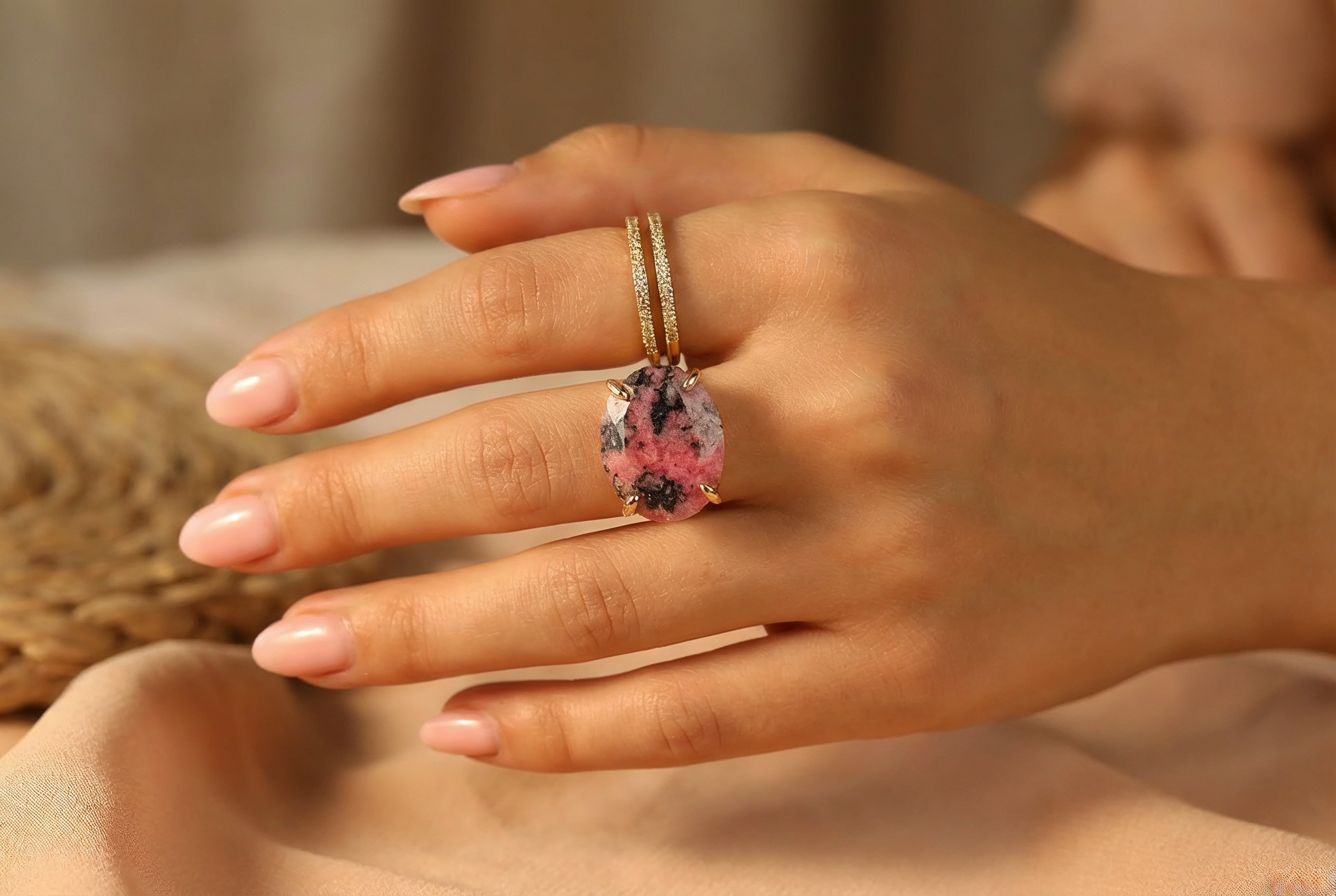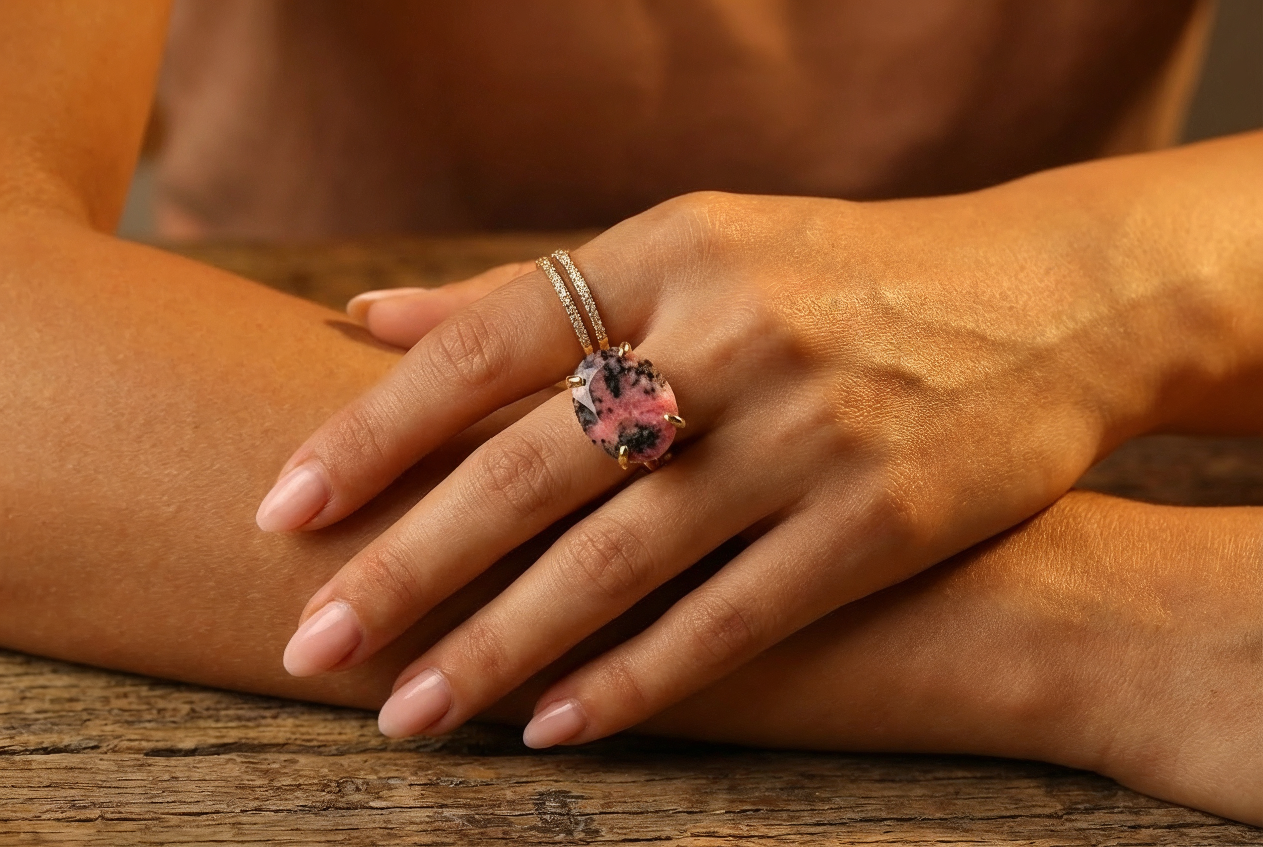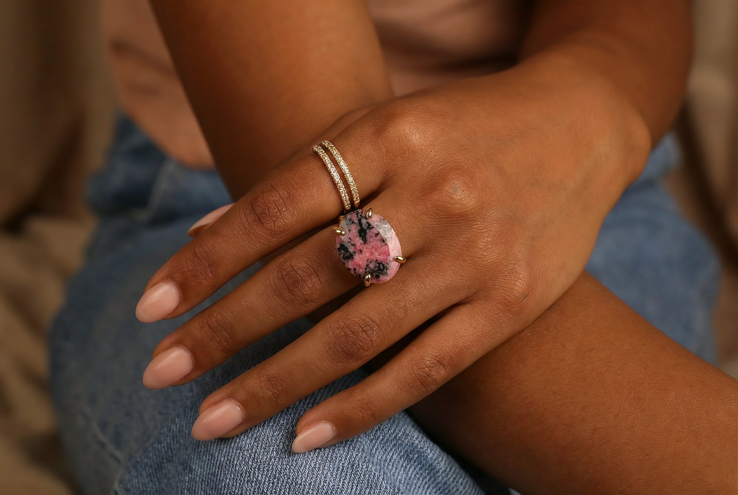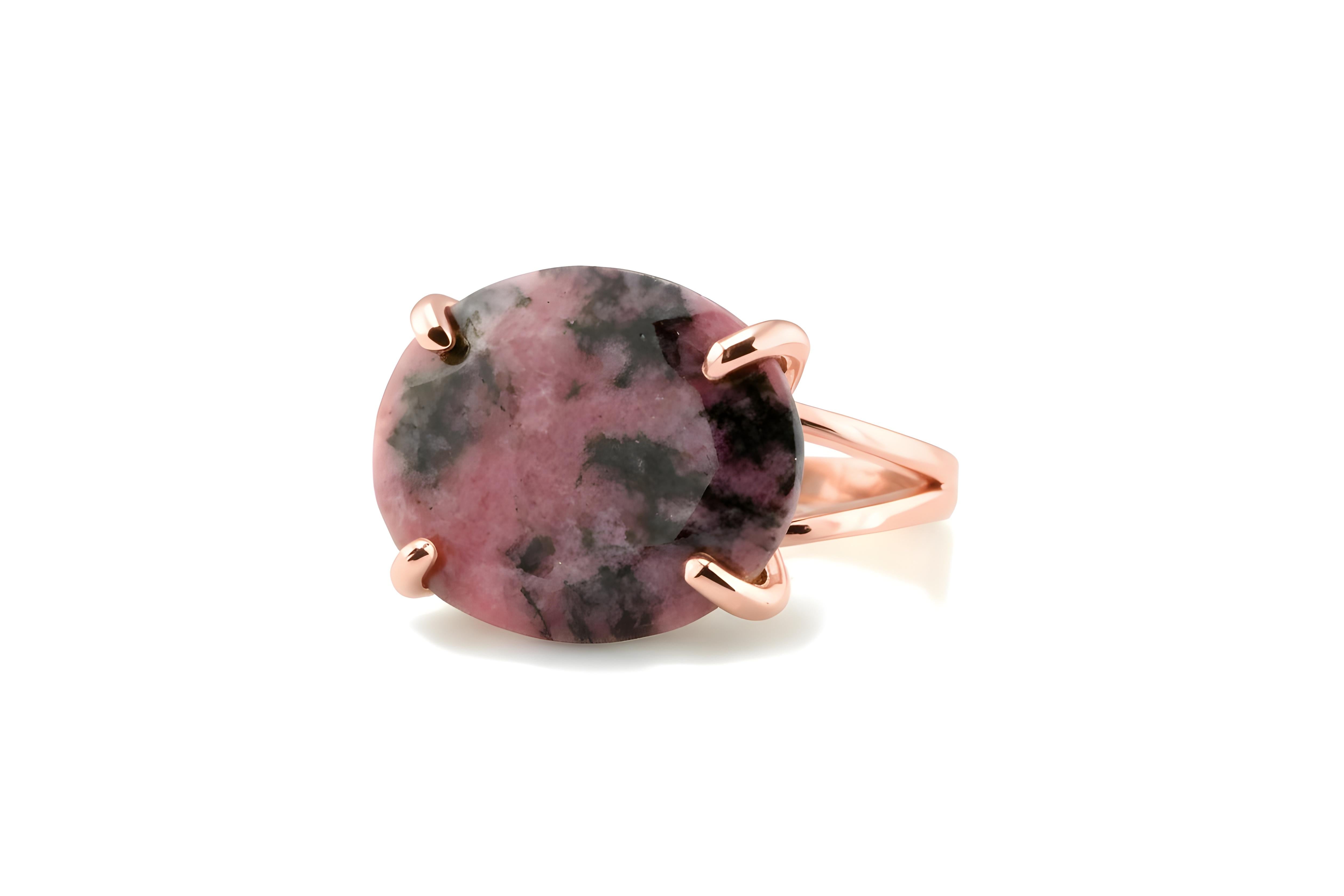 Pink Rhodonite Oval Ring in 18k Gold Rings Anemone Unique