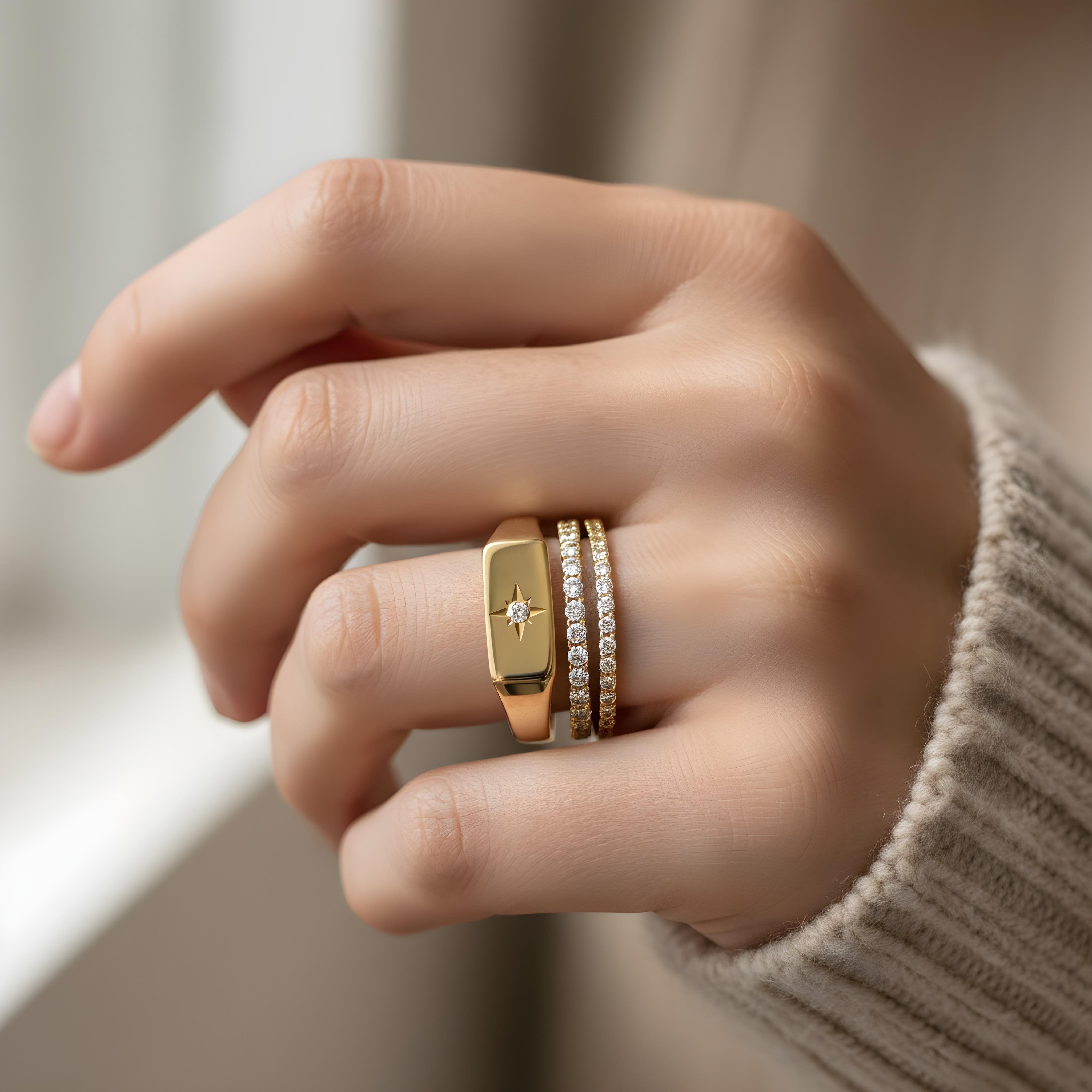 Its polished finish and slim profile make it ideal as a statement ring, stacking piece, or refined everyday jewelry for women. Handmade with care, this rectangular signet ring blends durability with brilliance, making it a thoughtful gift or a stylish addition to your collection.