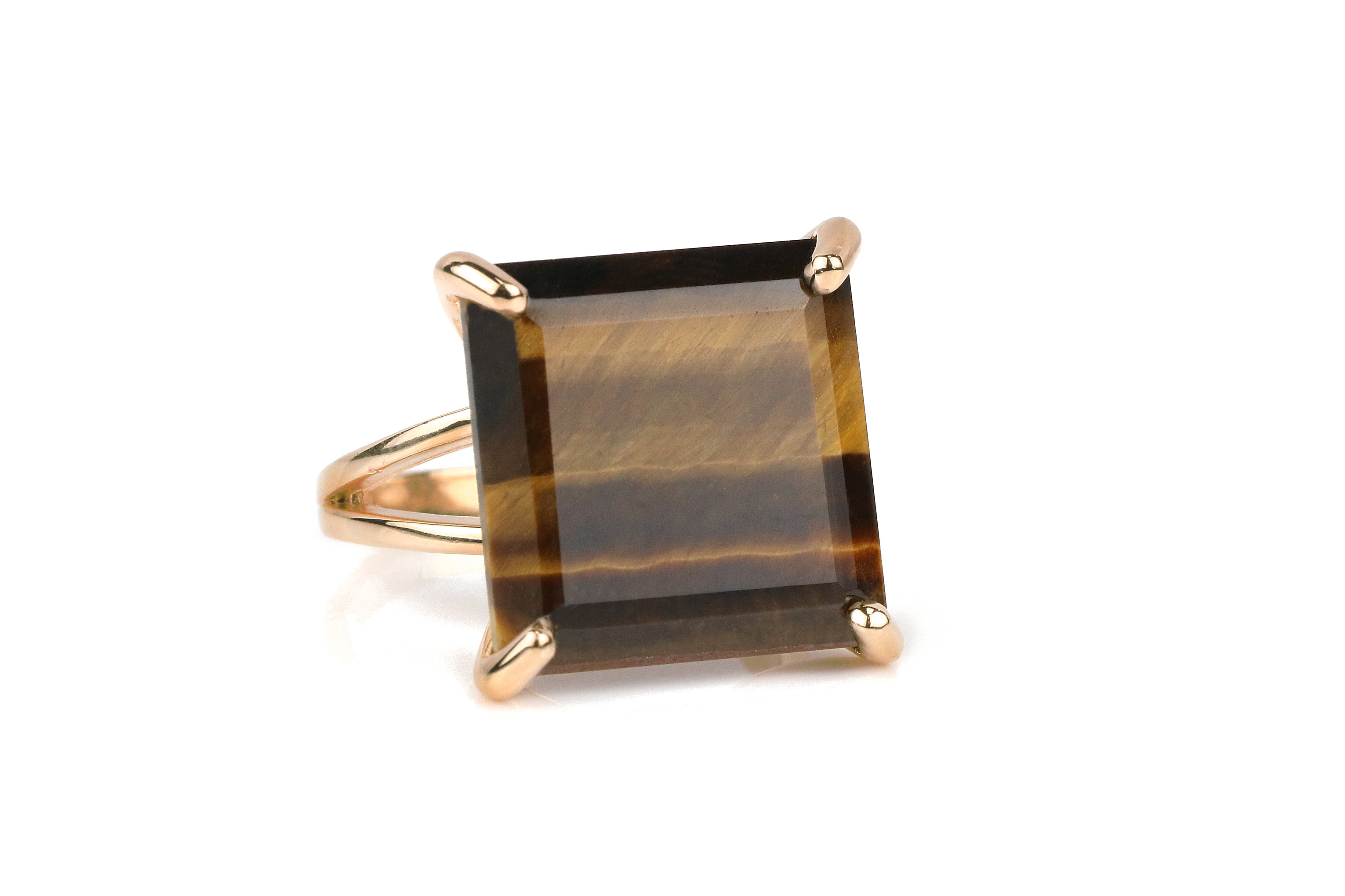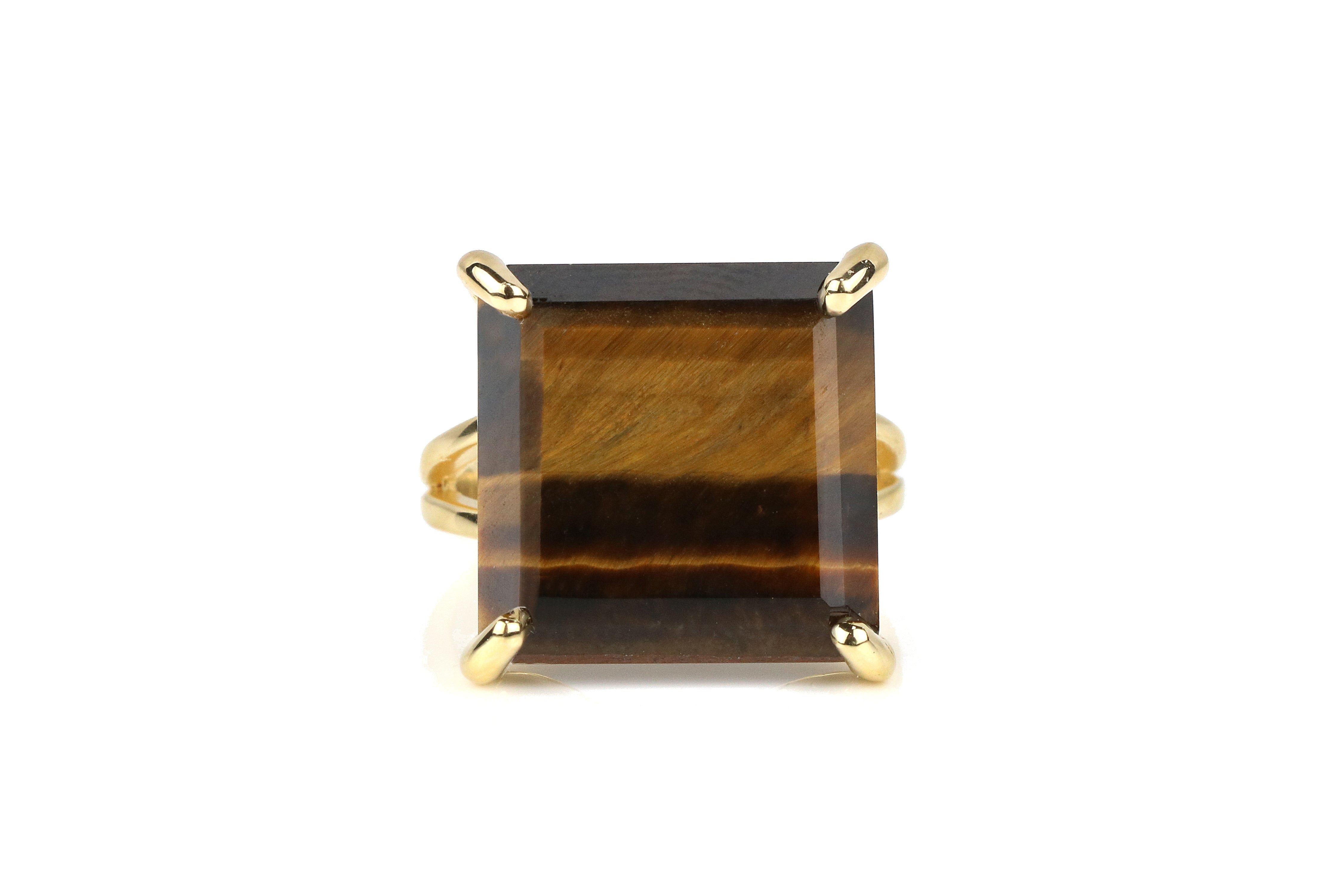 This 14k gold tiger eye ring showcases a bold square-cut gemstone that shimmers with warm golden-brown reflections. The mirror-polished band enhances the stone’s natural luster, while the four-prong setting ensures both security and timeless appeal. Perfect as a statement ring or meaningful gift for mom, this piece combines elegance, craftsmanship, and the distinctive beauty of tiger eye.