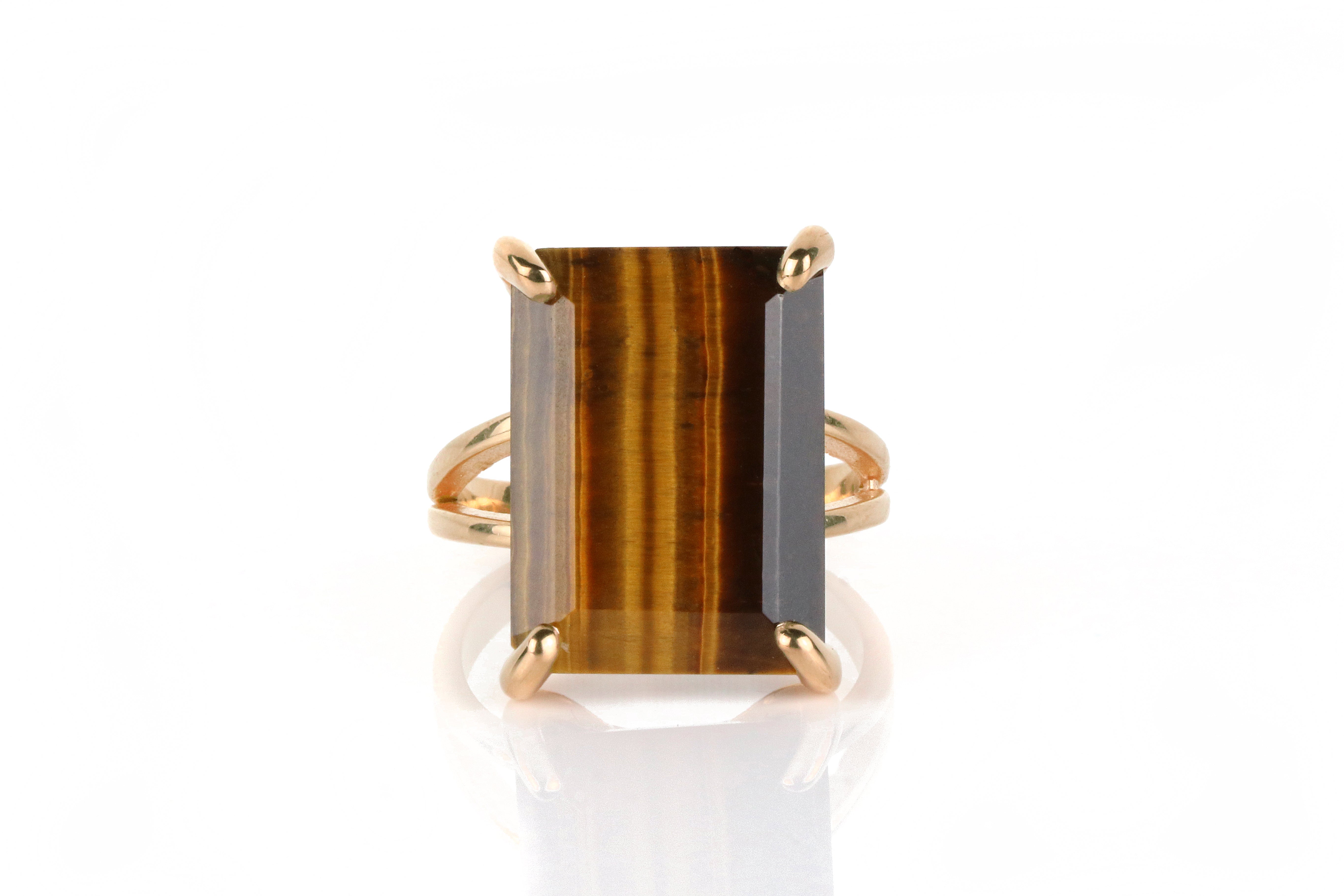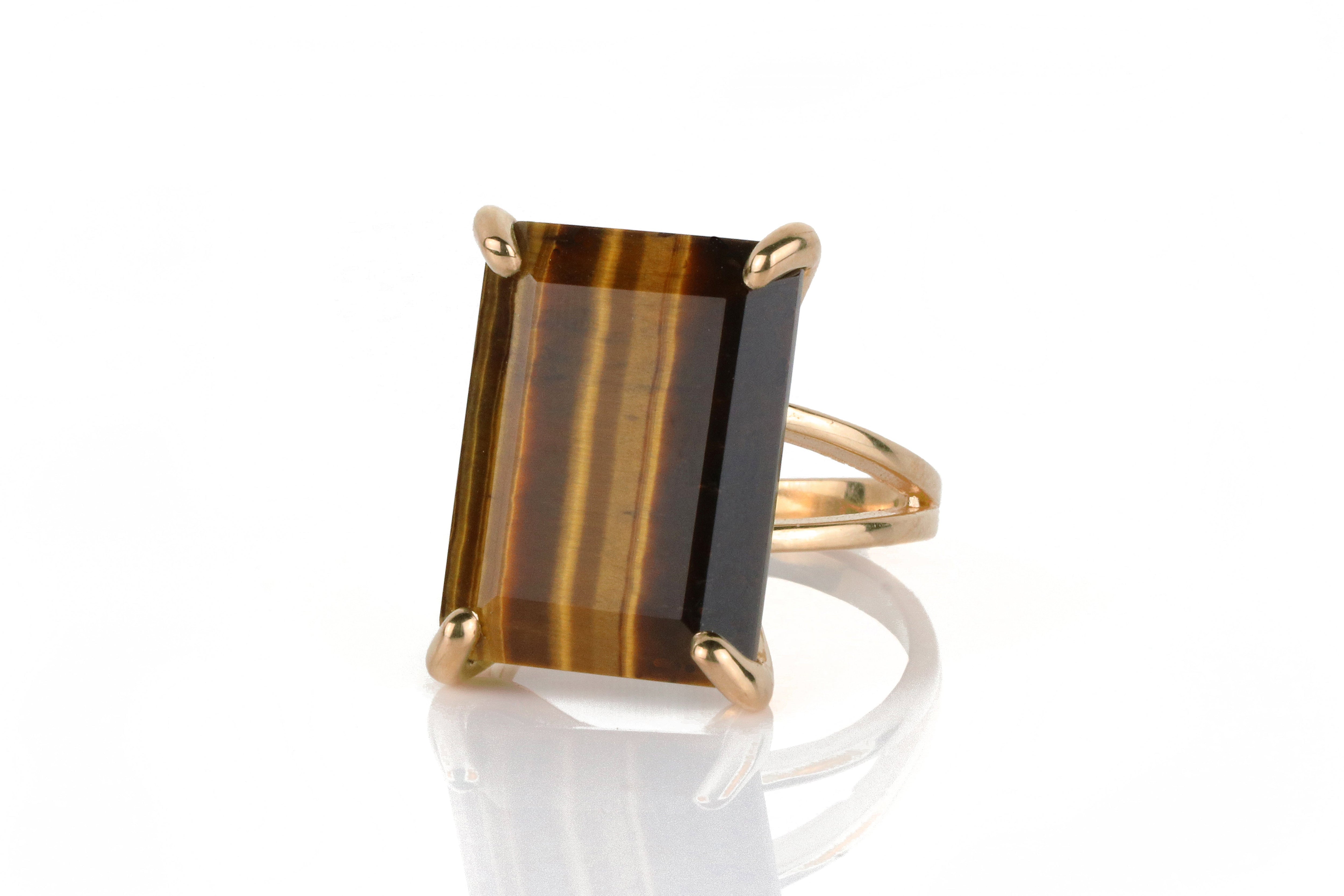 14k Rose Gold Large Handmade Tiger Eye Ring